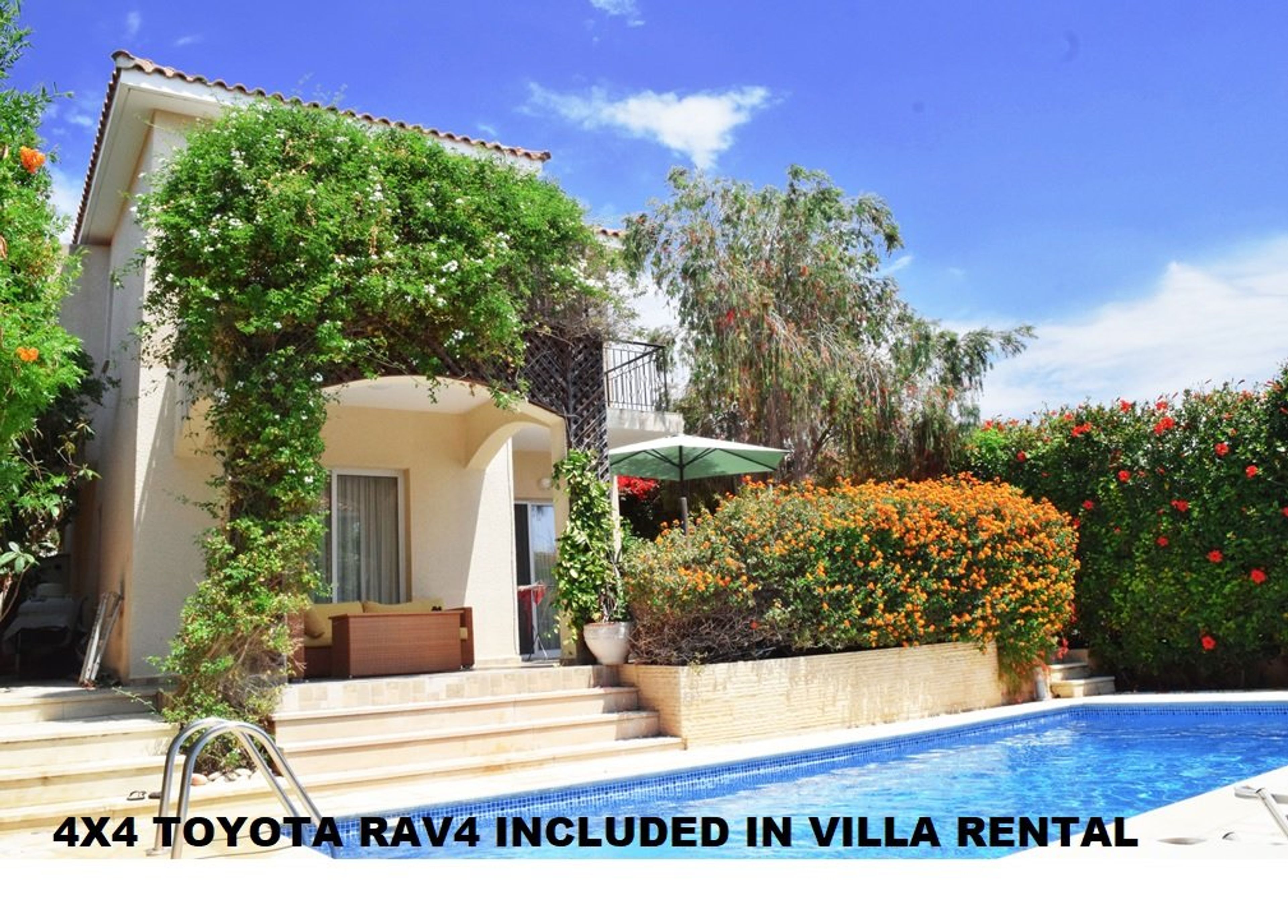 Spacious three bedroom villa with secluded garden, 5 minutes drive to Coral Bay. Offered with optional extras: Toyota RAV 4, pool heating and Jacuzzi. Garden and pool are not overlooked.