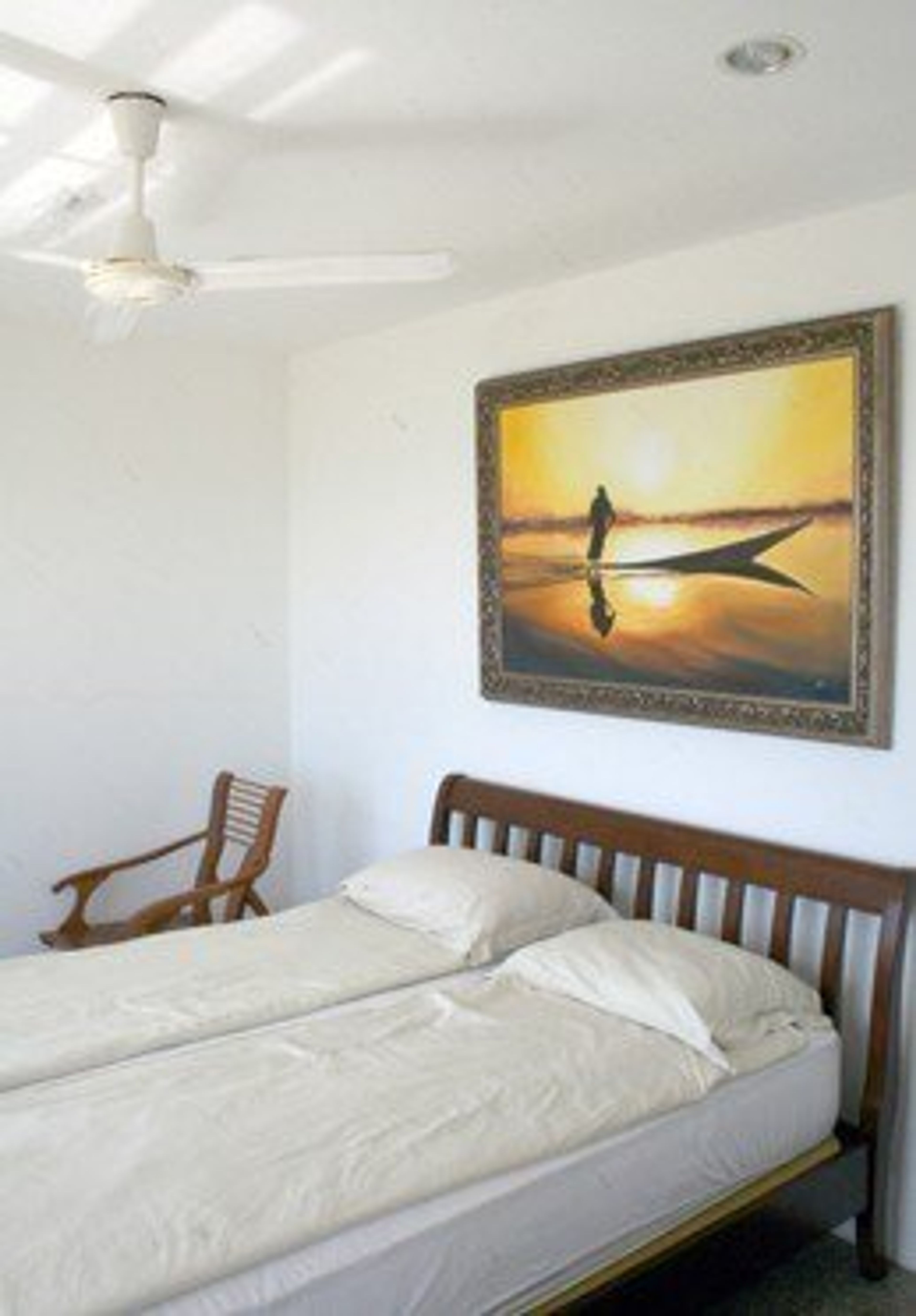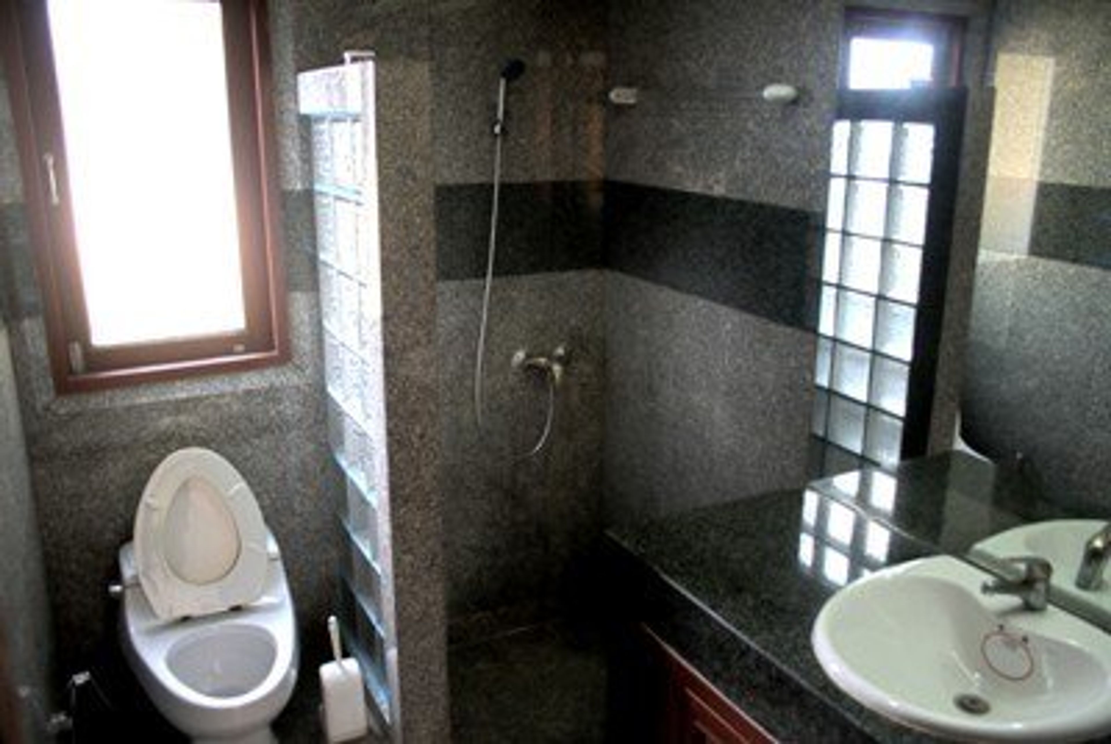 Every bedroom has a large queen-size bed with plenty of pillows, bedding and towels as well as air conditioning and ceiling fan. Each marble bathroom features a hot water shower, western toilet and large over the sink mirrors.