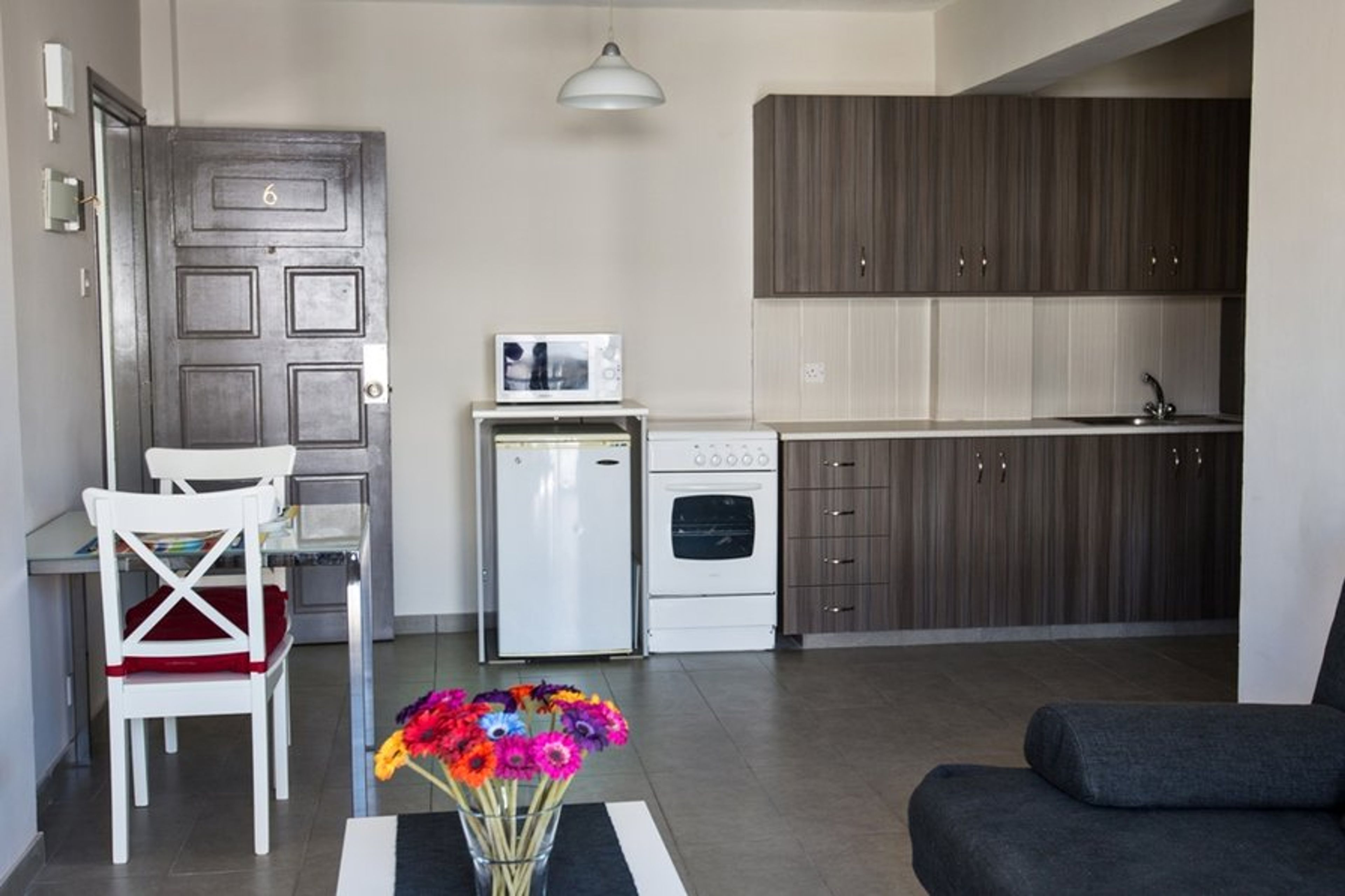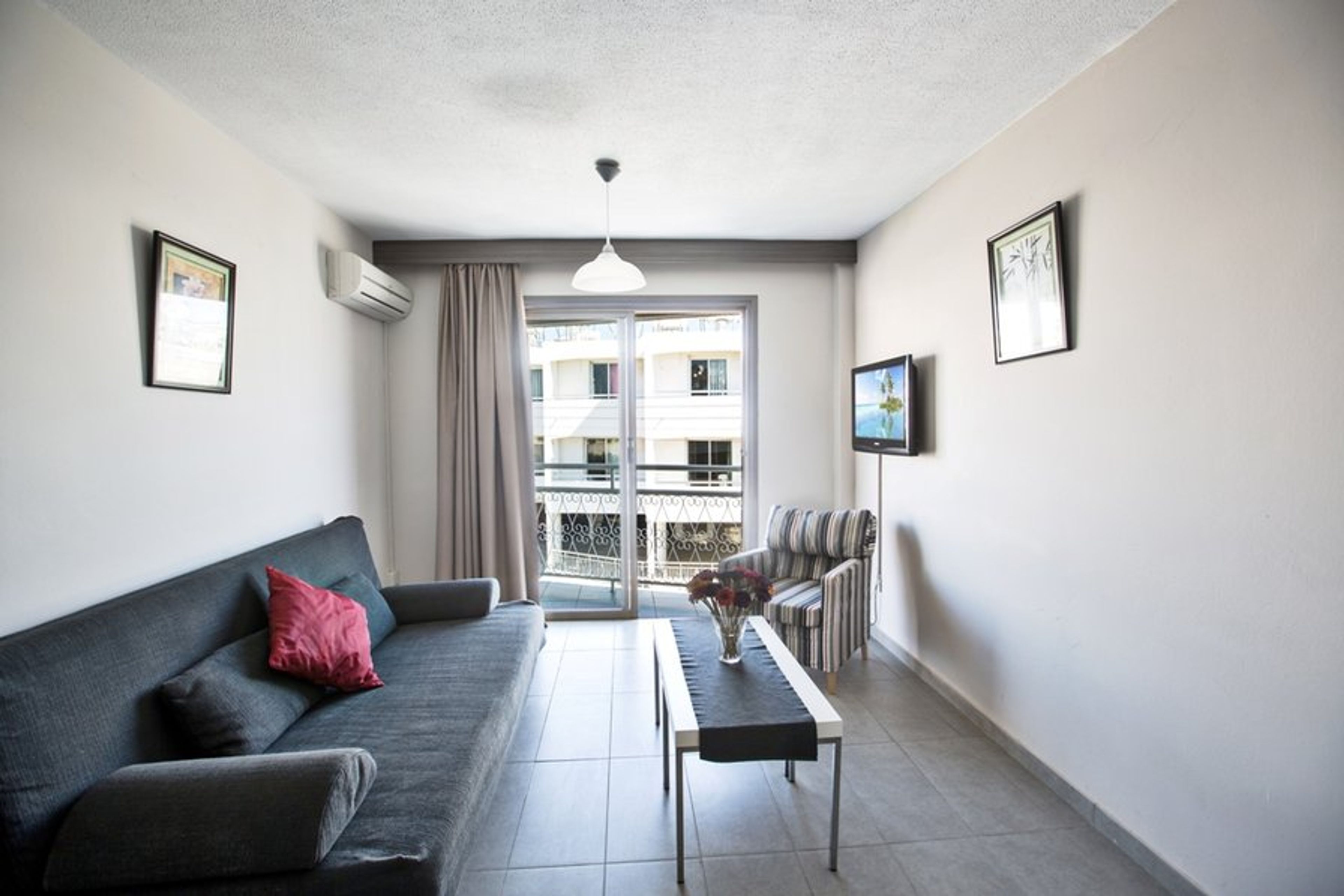 These fantastic one bedroom apartments are situated in the heart of Ayia Napa just metres from the main nightlife square. You cannot get a better location in Ayia Napa if you are looking to party and enjoy all that the resort has to offer. There is a lounge area with widescreen TV, DVD player and a sofa bed to sleep an extra 1 person. The kitchen is fully fitted with cooker, fridge/freezer and microwave.