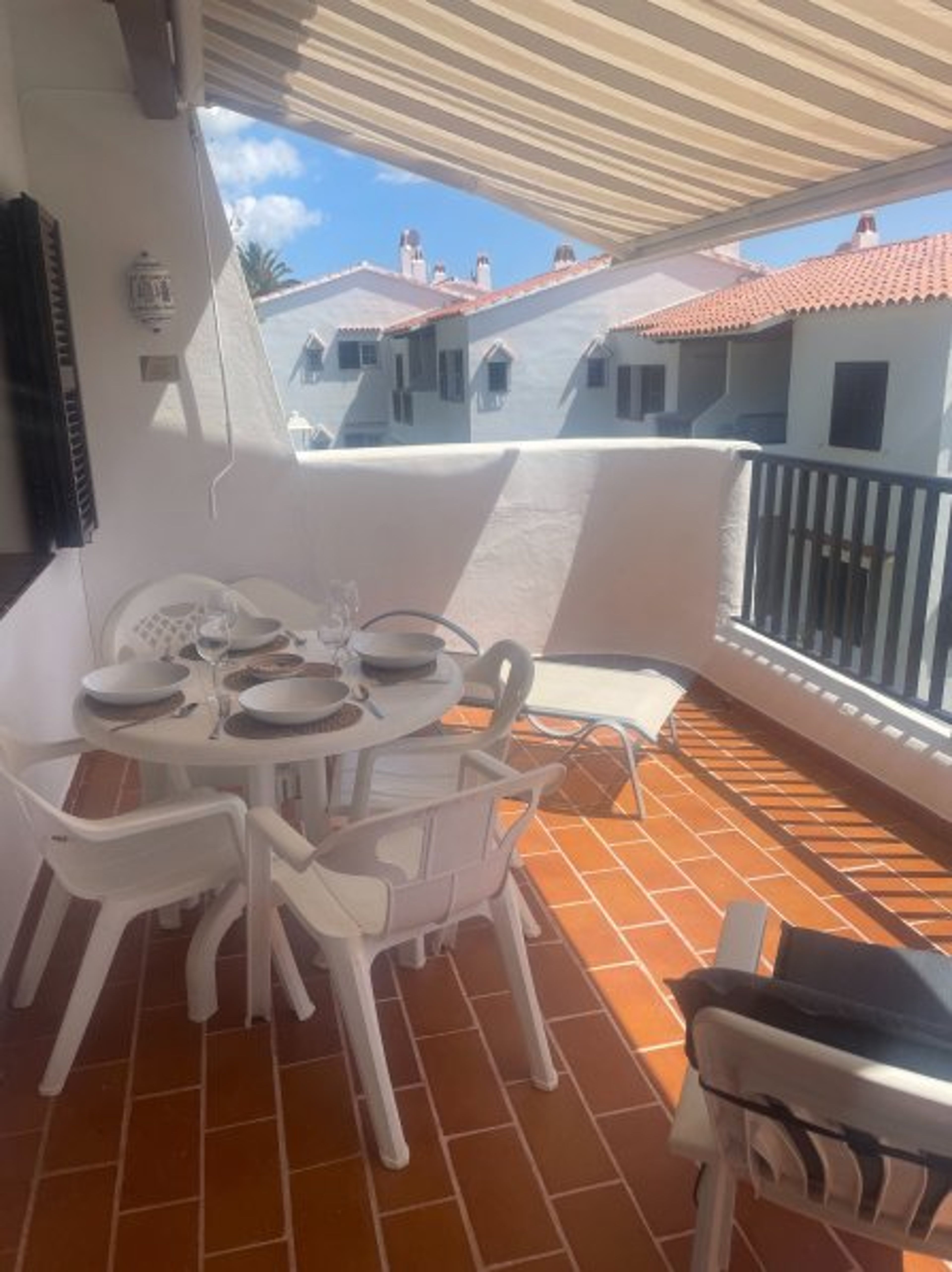 The apartment has 2 bedrooms both of which have twin beds and there is a sofabed in the lounge. There is a spacious bathroom with shower and full bath tub. The living room has a flat screen TV, DVD player and CD player. The living room opens out onto a large terrace with table and chairs for al fresco dining. The patio is south facing and enjoys the sun all day,with sunloungers and views out to the beach and sea. There is a BBQ for your use. There is also a well equipped kitchen.