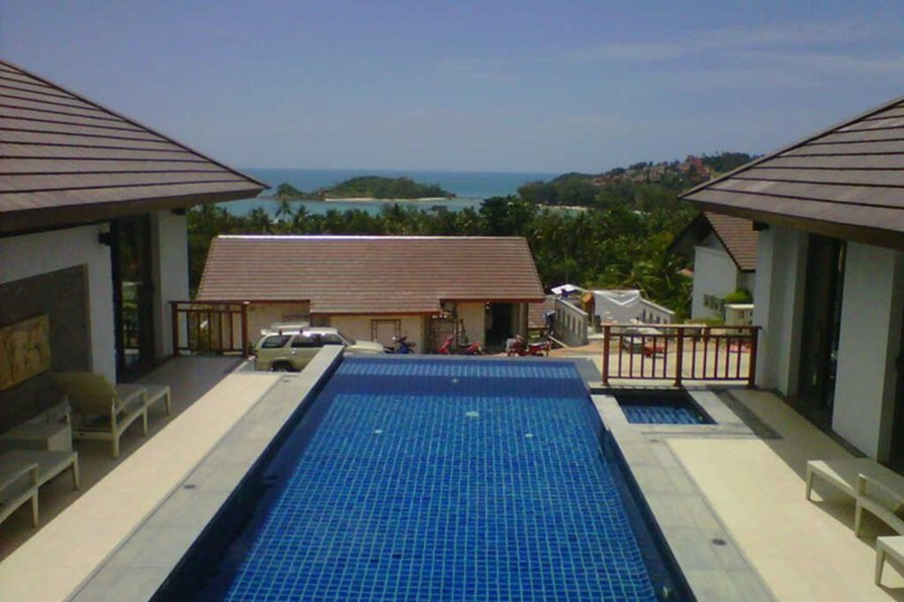 The open plan living area provides a fully equipped kitchen with everything you expect for self catering. Dining inside the villa allows you to enjoy the beautiful view in a air conditioned luxury ambiance. Luxury lounge with flat screened TV satellite/DVD. Walk down to the beach or visit the local bars and shops.ATM machines and internet cafes plenty. .Broadband/ Wifi now installed. .Koh Samui has a all year temperture of approx 30 degrees c. The rainny season is November but as a tropical island it does rain in other months but not for long. It is approx 1 hours flight from bangkok and has one of the most beautiful airports in the world, it is always a pleasure to fly to the island.