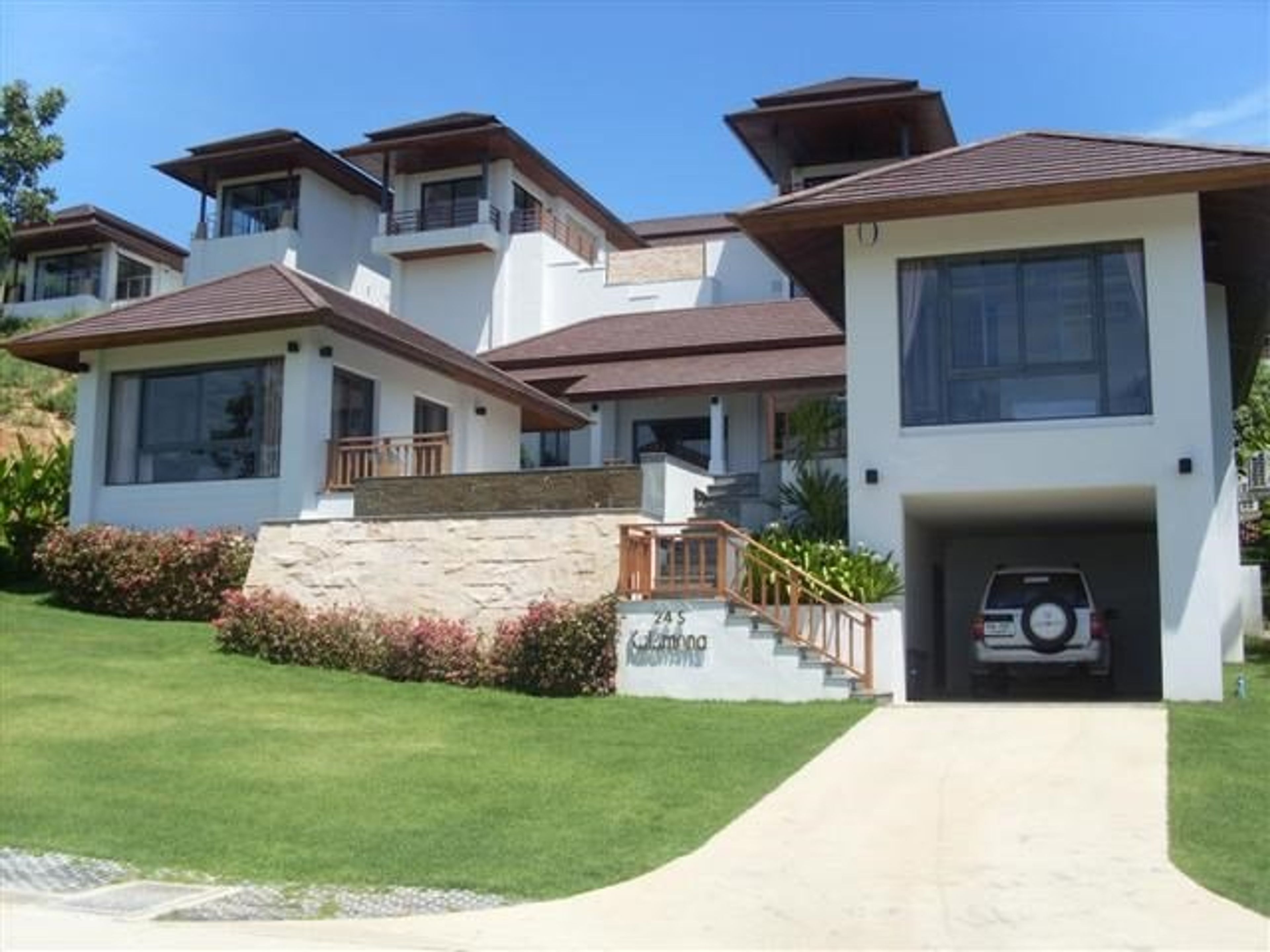 Large, stylish, contemporary villa with spectacular views over the bay. Infinity pool and jacuzzi. Minutes walk to the beach and resort amenities. Ideal for families.