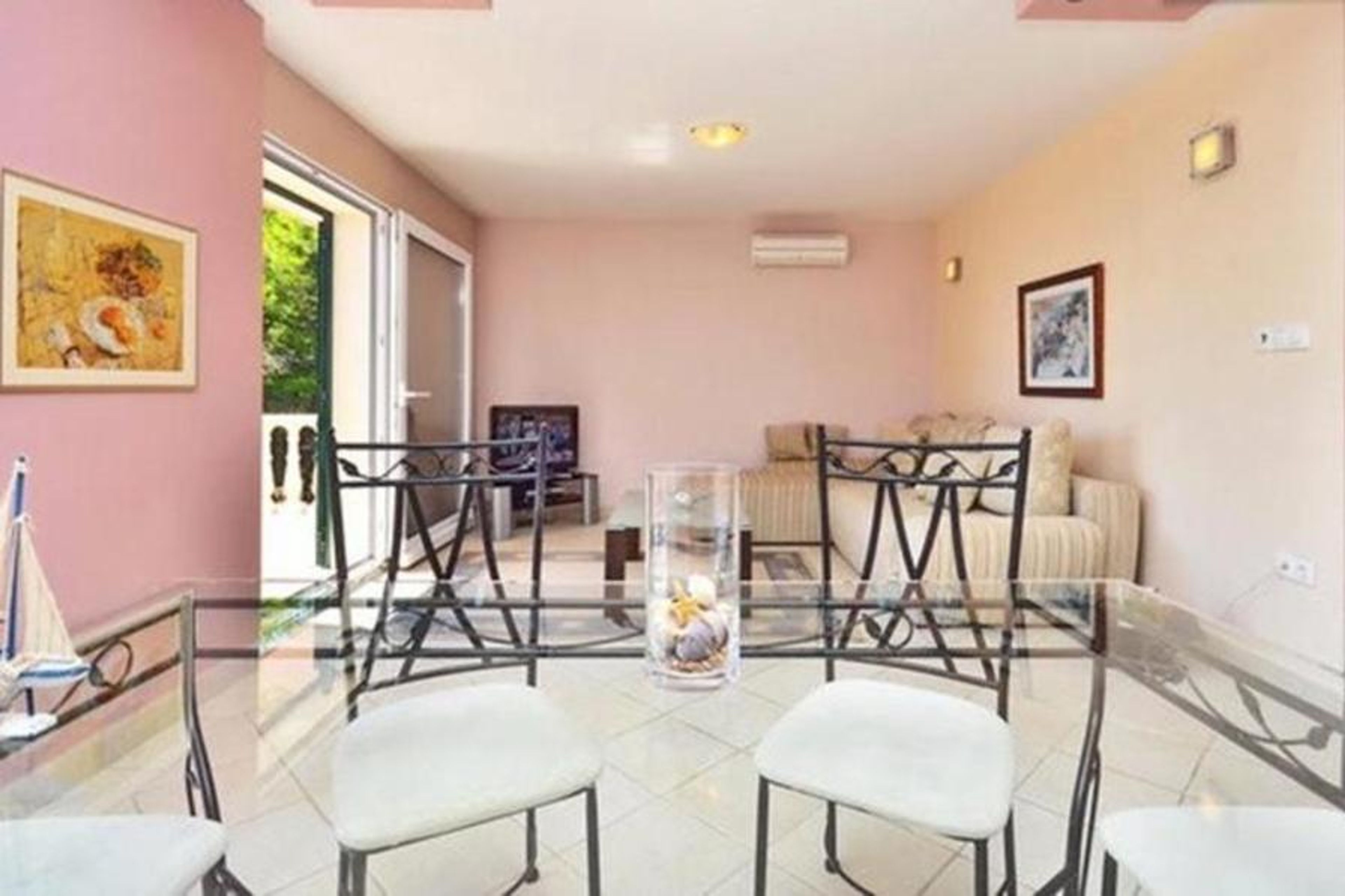 Living room with Sat TV, DVD, radio, exit to the terrace.