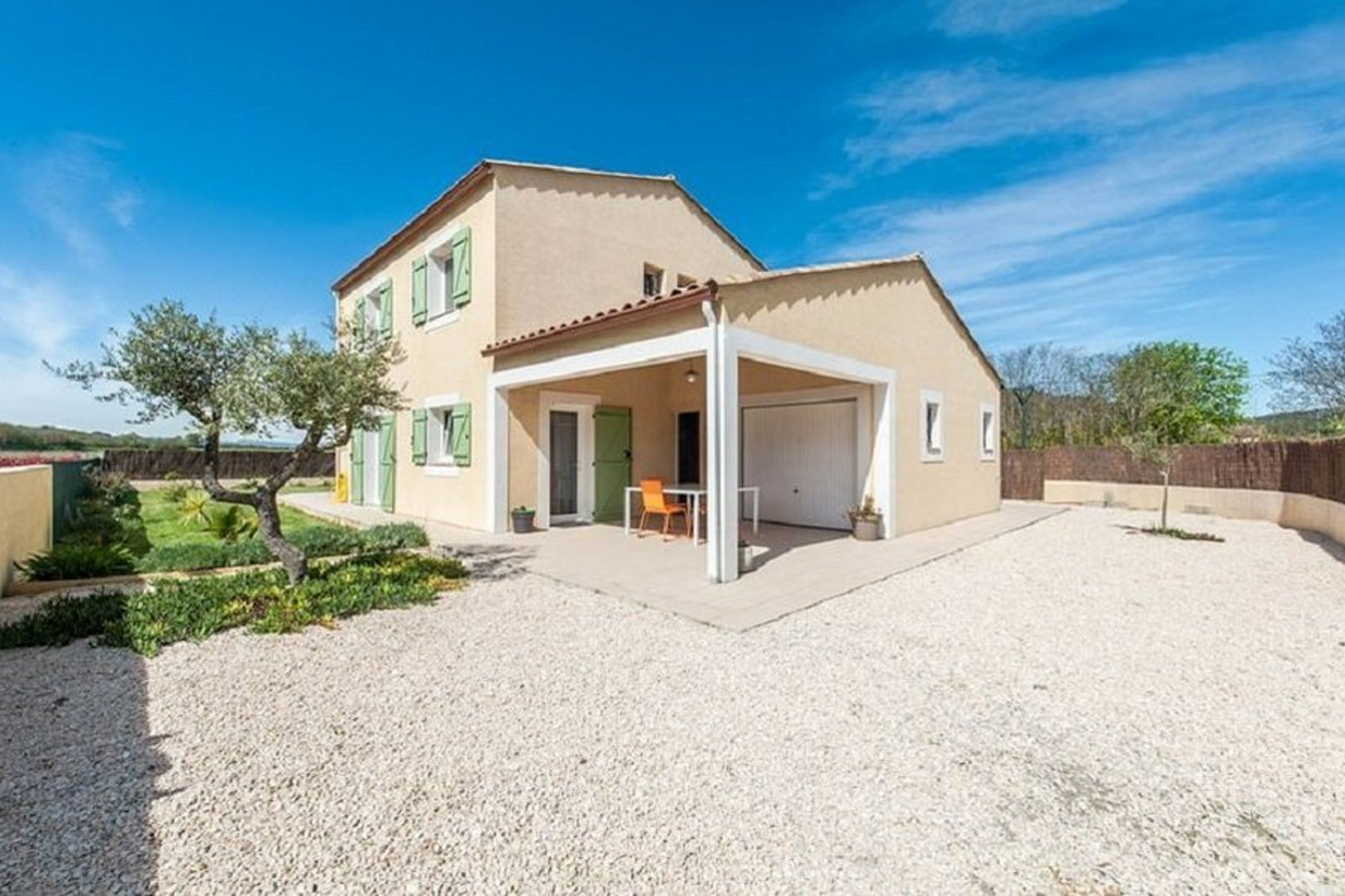 Contemporary modern house in the Languedoc style, 124m2. Two large sunny terraces, large fenced garden.