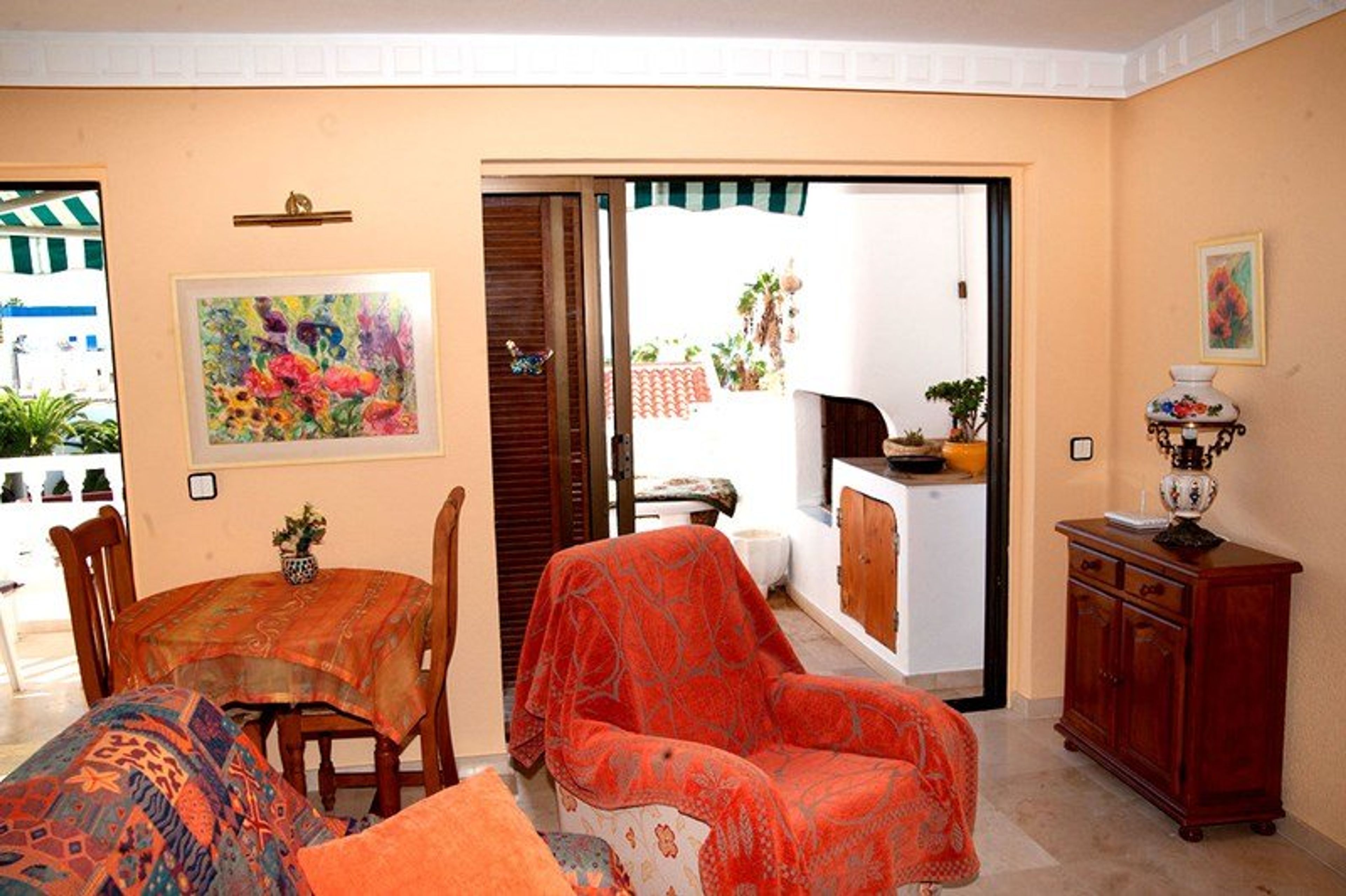 From the lounge and balcony you can sit back and enjoy stunning panoramic ocean views towards the neighbouring island of La Gomera. The borders onto the famous Geranium Walkway where one can enjoy a beautiful ocean front walk which (right) leads to the marina and beach and on to Playa Del Duque or (left) to the centre of Las Americas and onto the resort of Los Cristianos. Club Atlantis is an exclusive development offering 3 swimming pools (1 heated), pool bar, restaurant, hairdresser, and laundrette. The beach is a few minutes walk from the villa/bungalow as are the many clubs, bars and excellent restaurants. Sit on the balcony watching the yachts and fishing boats go by or spend time relaxing in the sun at the pools, private garden or beach. 5 golf courses are a short 15-20 min taxi ride away. Airport (20 min by taxi). Local activities golf, swimming, tennis, surfing, sailing, fishing, wind-surfing, cycling, horse riding, water skiing, paragliding, diving