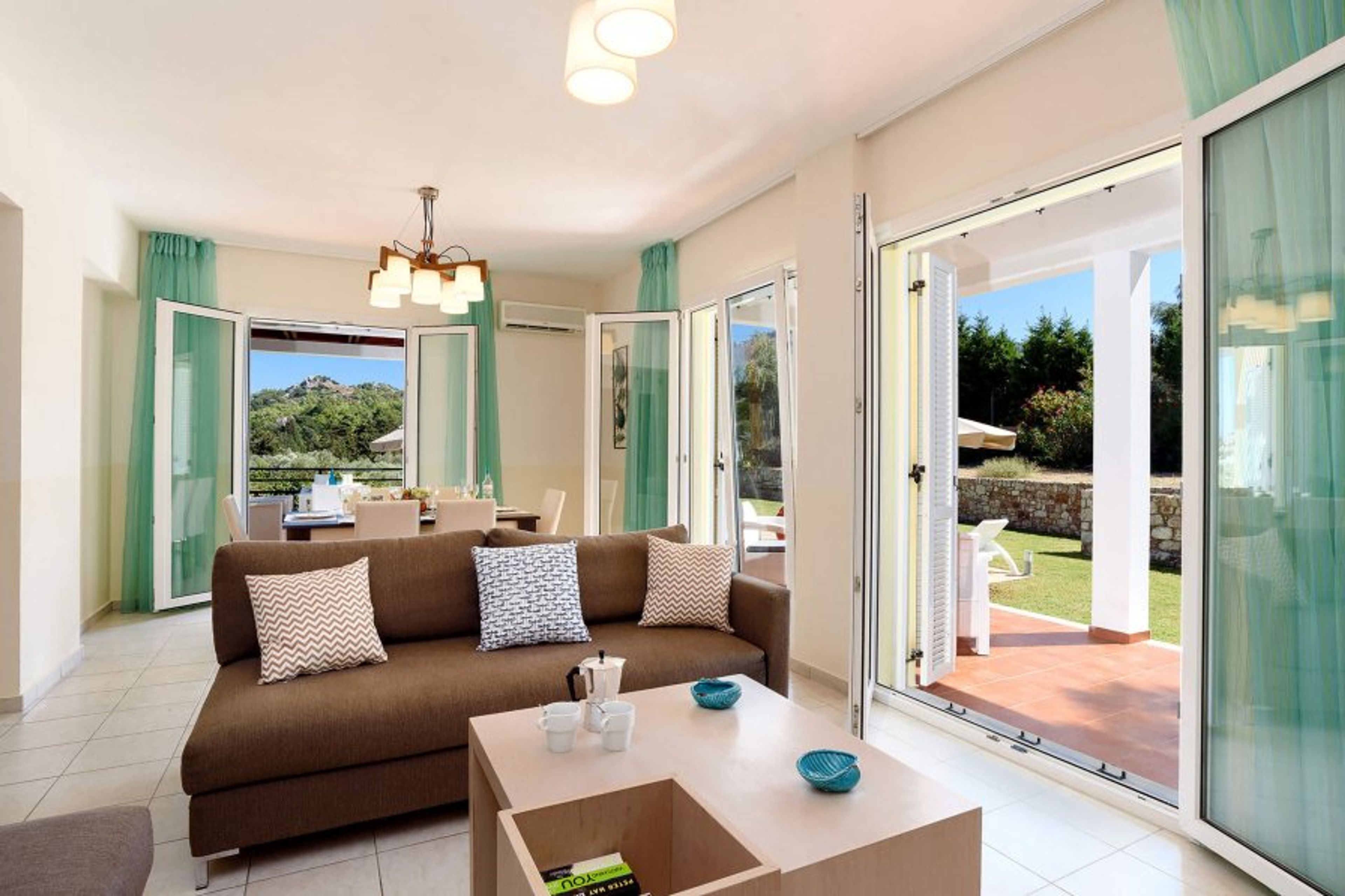Ermis Villa is a spacious two floor building, decorated with unique style and high quality furniture that can accommodate up to 7 people. Surrounded by a Mediterranean garden with a large Swimming pool, parasols, sunbeds and BBQ is ideal for couples, families, groups and those who seek memorable and relaxing holidays. The villa consists of 2 bedrooms with large double beds and 1 bedroom with single beds. The property features a large open plan living room with 2 comfortable sofas and a flat-screen TV with satellite channels. There is a fully equipped kitchen designed for the needs of modern travelers, with dining table, large fridge, oven, microwave, water boiler and filter coffee maker. The property has 1 bathroom on the first floor with bathtub and 1 bathroom on the ground floor with shower. The bathrooms are equipped with toiletries and hairdryers. The property also has a utility room with a washing machine. Free Wi-Fi access is available everywhere on the property.