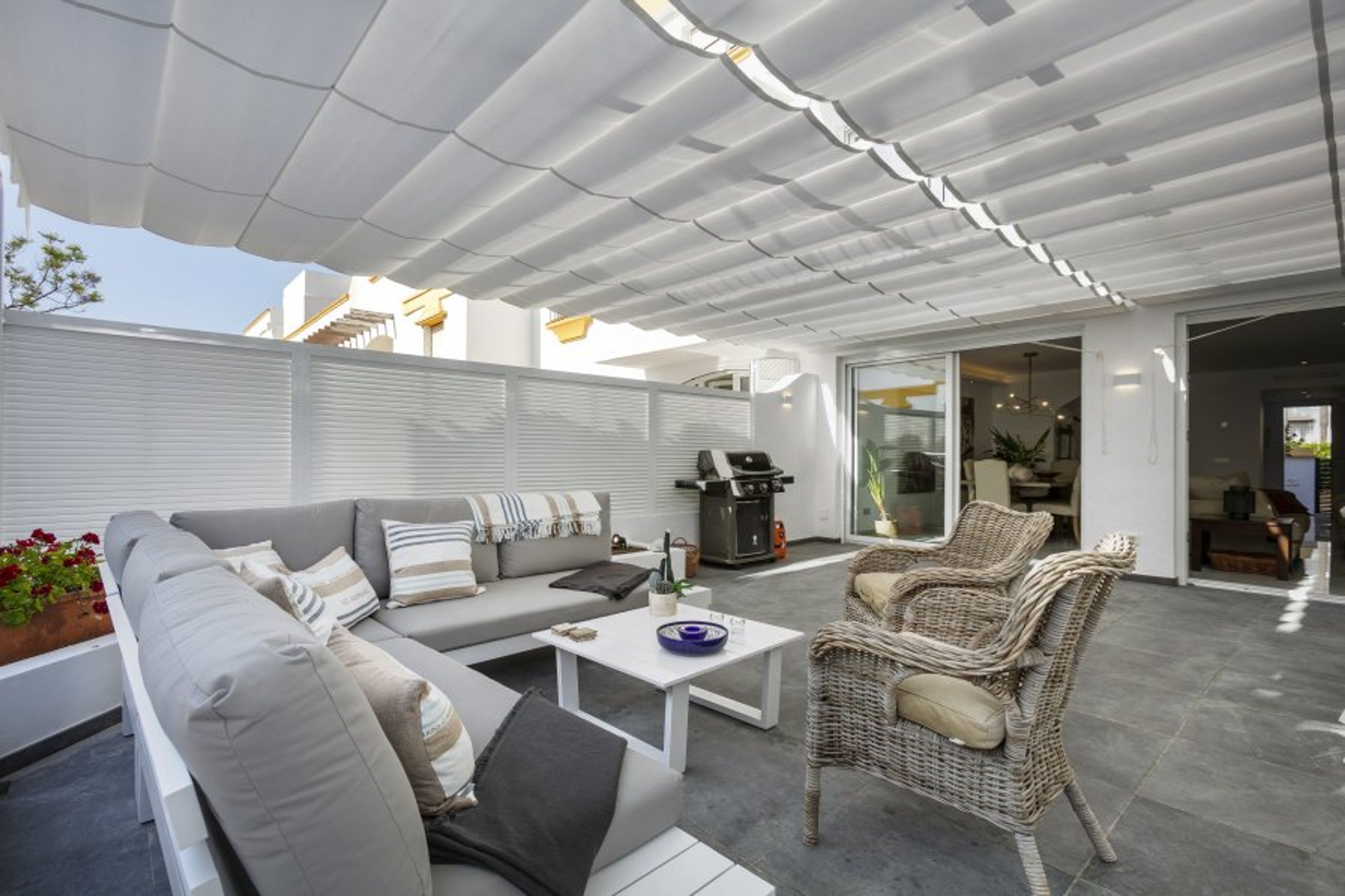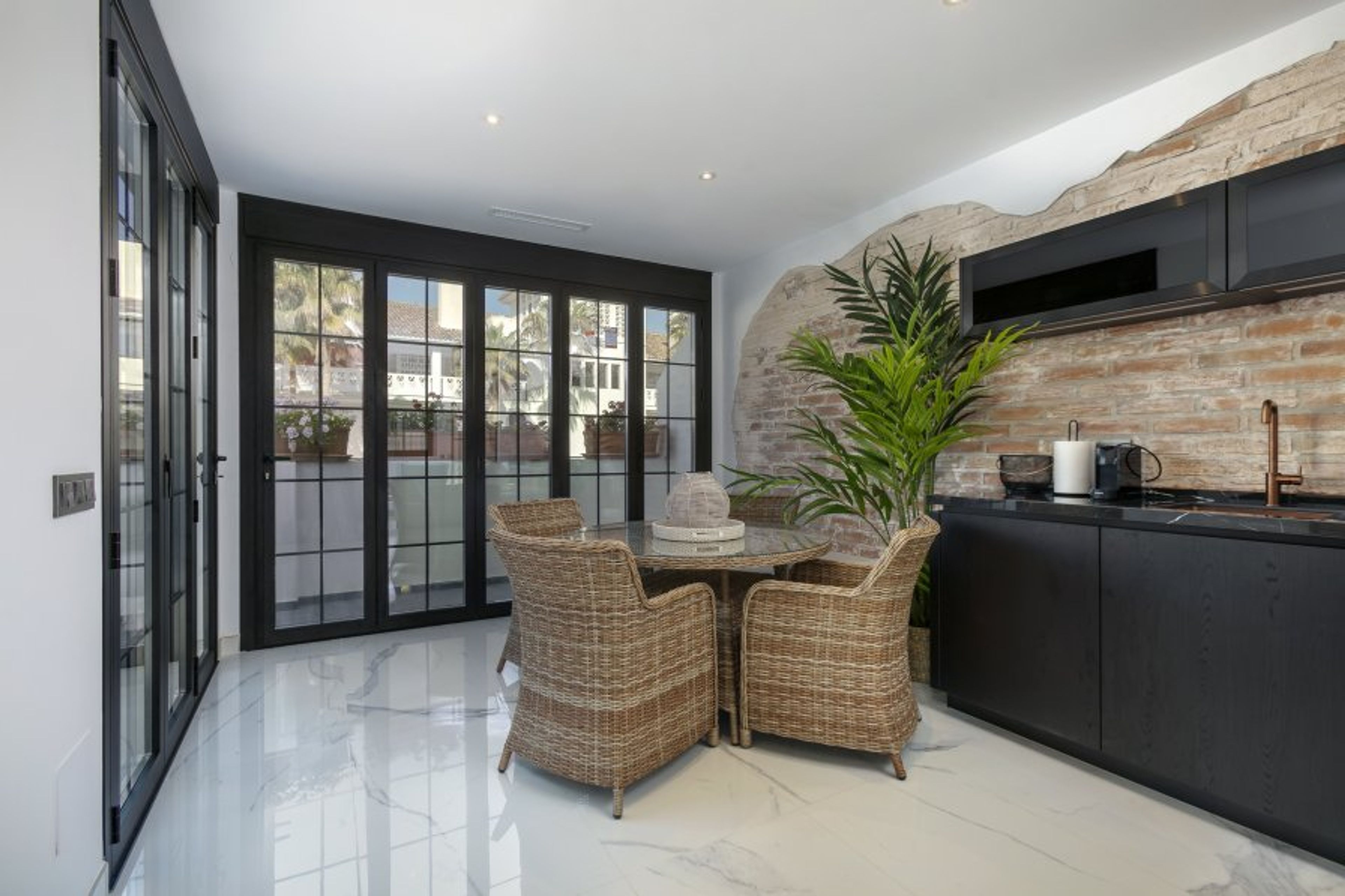 Guests can enjoy the entirety of the three beautifully decorated floors in Casa del Sol, including the standalone upper-level apartment. This new addition to the property (as of May 2022) provides a sleek modern lounge area, kitchenette, dining area and terrace with large sliding doors which open up fully to allow the sea breeze to flow through.
