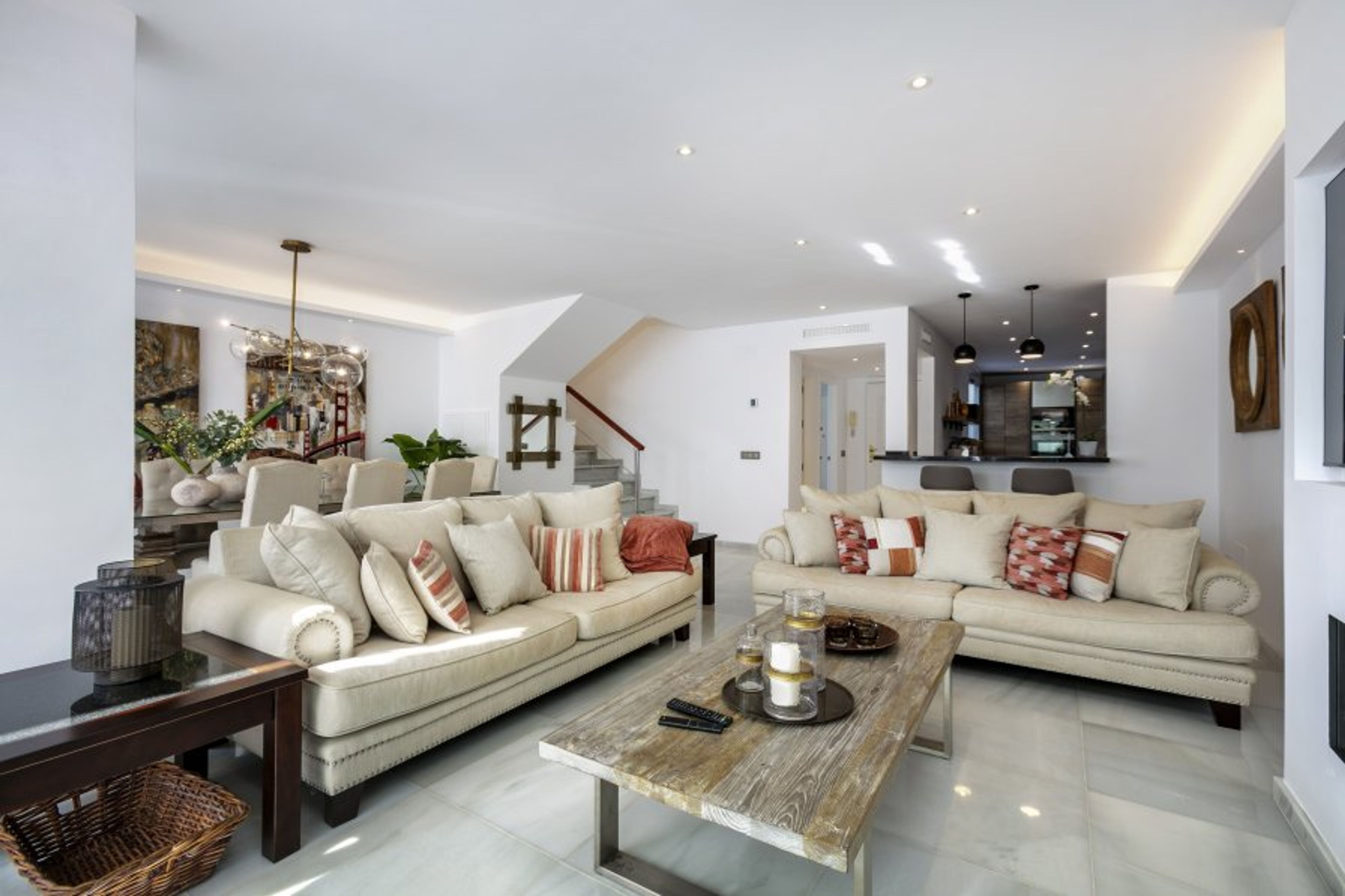 Casa Del Sol is a stunning, newly reformed three-storey townhouse in a small community called Marbellamar, which is on the best beach in Marbella in one of the most exclusive areas in the whole of Europe, Marbella's famous Golden Mile. Here you can chill out and relax or rub shoulders with the rich and famous depending on your mood