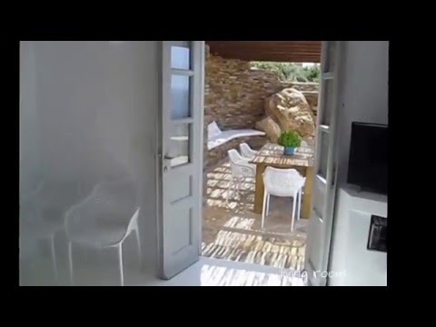 Our holiday villa's body structure was diligently built in a way so as to minimize the impact of Cycladian northern winds, offering protection where you need it most, at the two main verandas. More specifically, the main veranda offers seating and dining facilities while a long stone built-in bench reaches out to the barbecue. The barbeque itself was meticulously constructed to harmonically blend with the body of a large rock which the owners left untouched at its natural position. Verandas and terraces of 300sq.m. extend around the villa.