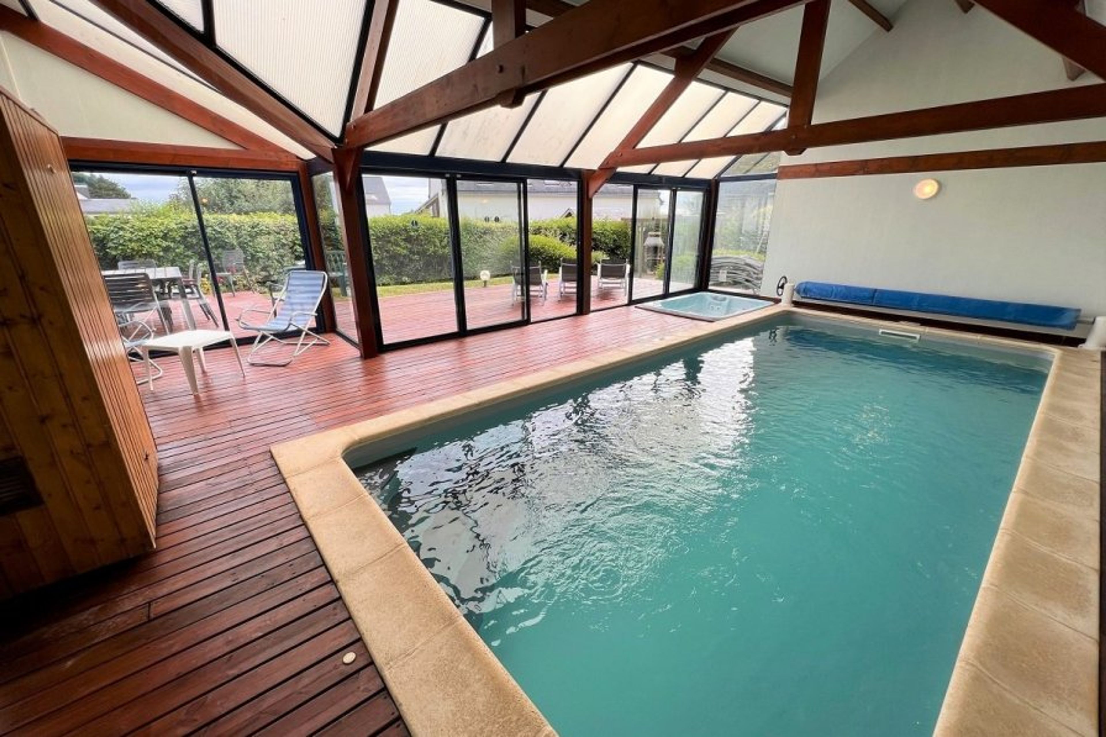 Indoor heated swimming pool with cover. Pool size: 7m x 3m. Depth: 1.65m x 1.8m. covered, heated (28°c year round). Counter current swimming.