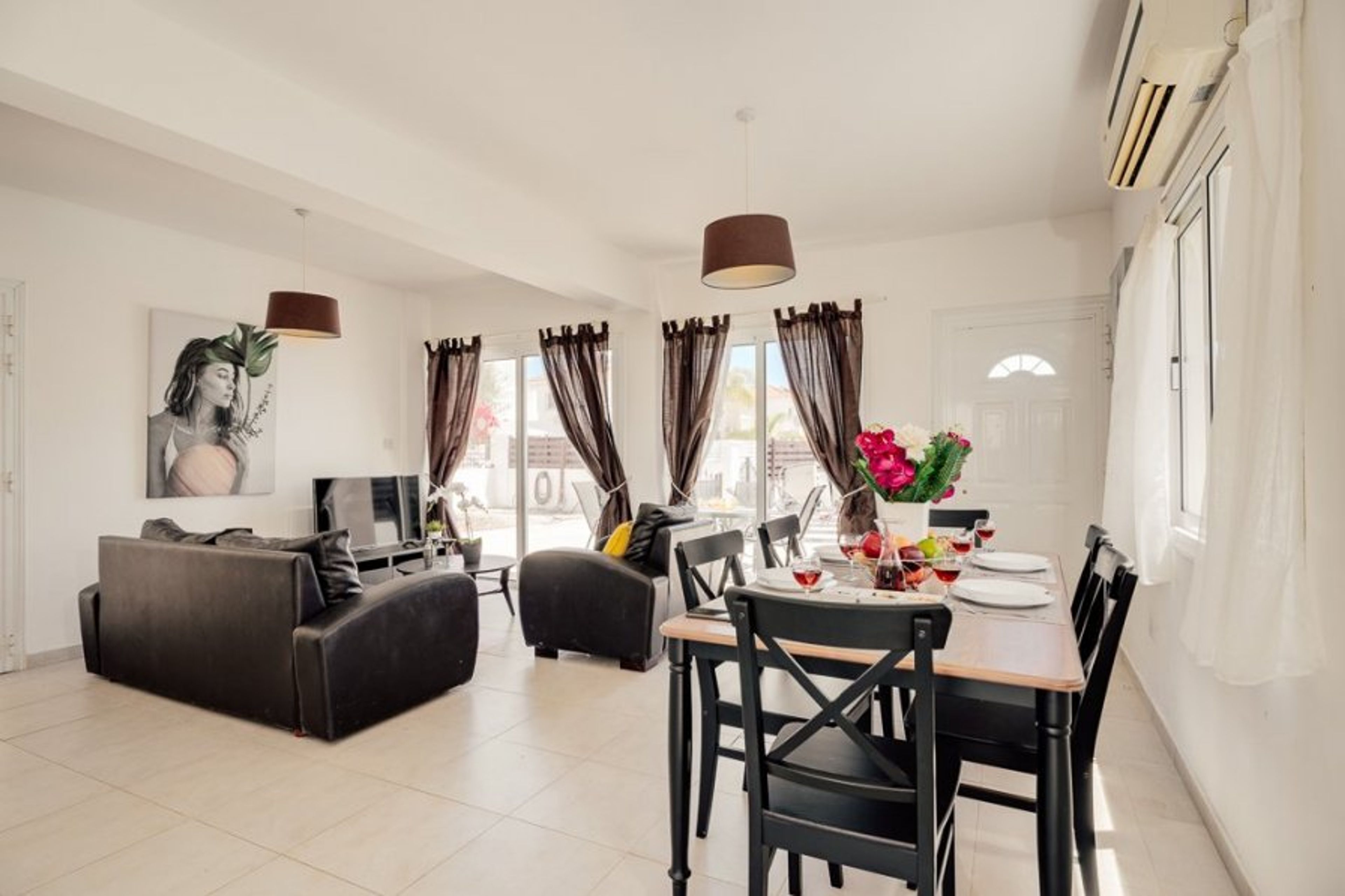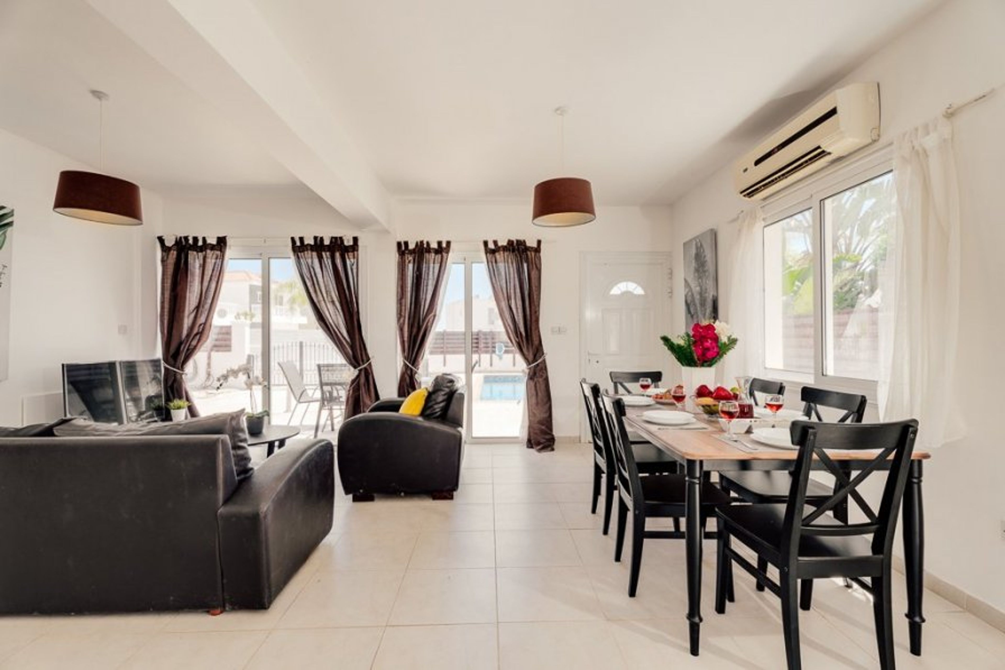 Villa Croeso is a charming and spacious retreat located in the picturesque area of Ayia Thekla. This villa boasts three well-appointed bedrooms to accommodate guests comfortably. The first bedroom is a double with elegant patio doors that open onto a private balcony, offering a serene spot to enjoy morning coffee or evening sunsets. The second bedroom is a twin, also featuring patio doors leading to another private balcony, ideal for relaxation. The third bedroom is a twin, ensuring ample space for family or friends. All bedrooms are equipped with generous wardrobe space to store your belongings.