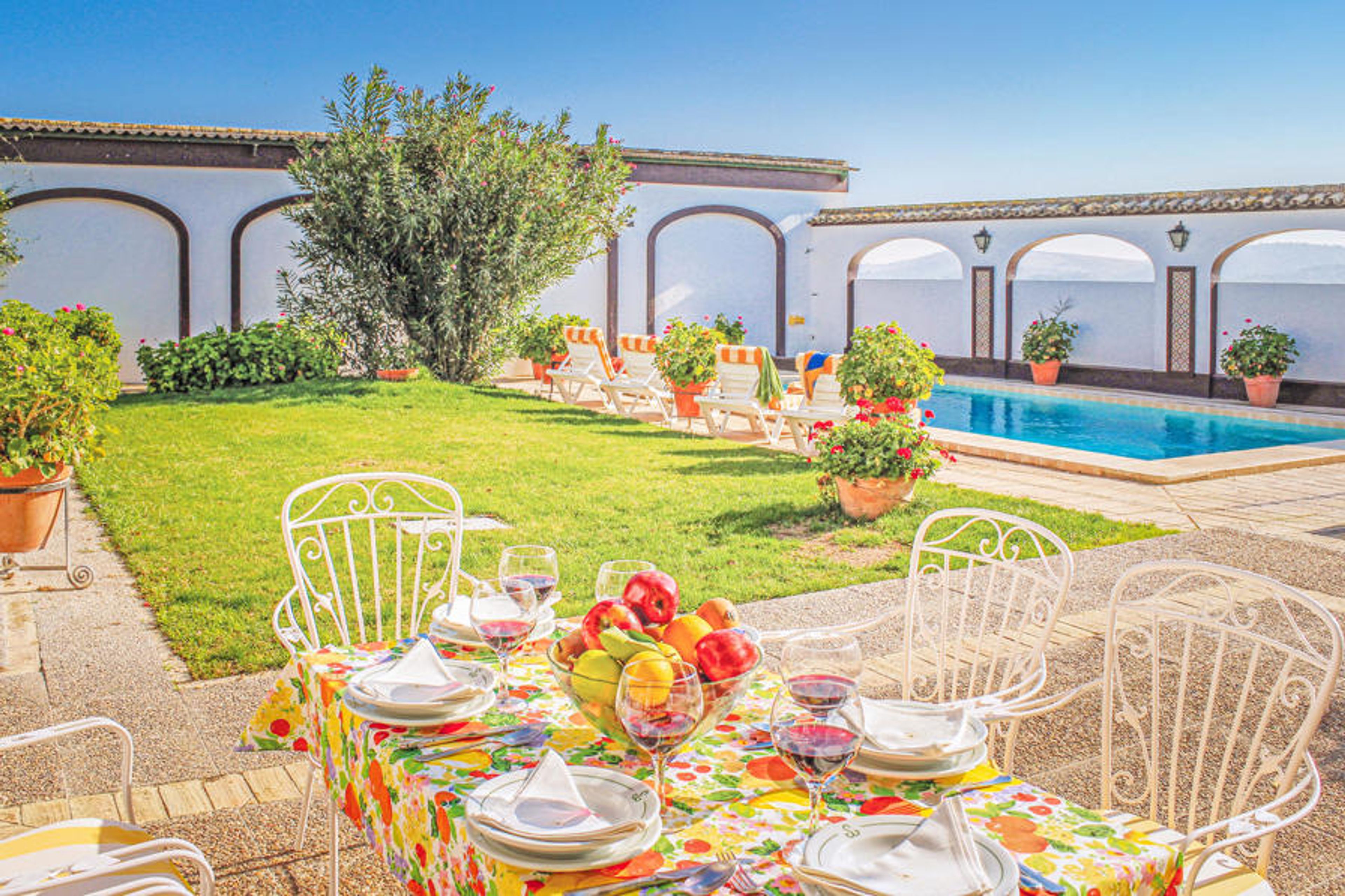 This traditional farmhouse is situated amidst beautiful palm trees and greenery within the pretty Andalusian countryside. It features a traditional decor with lovingly selected and restored furniture.