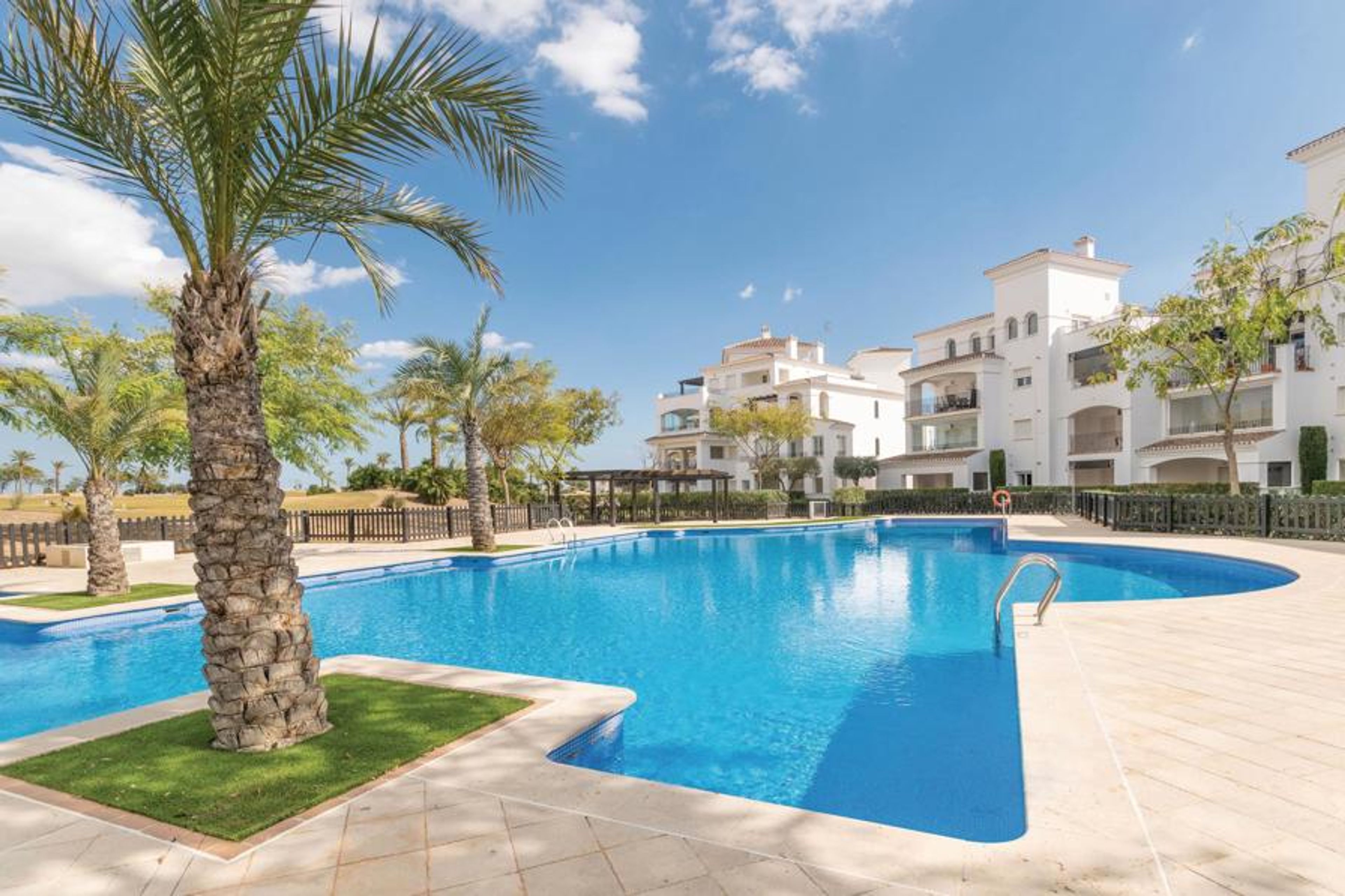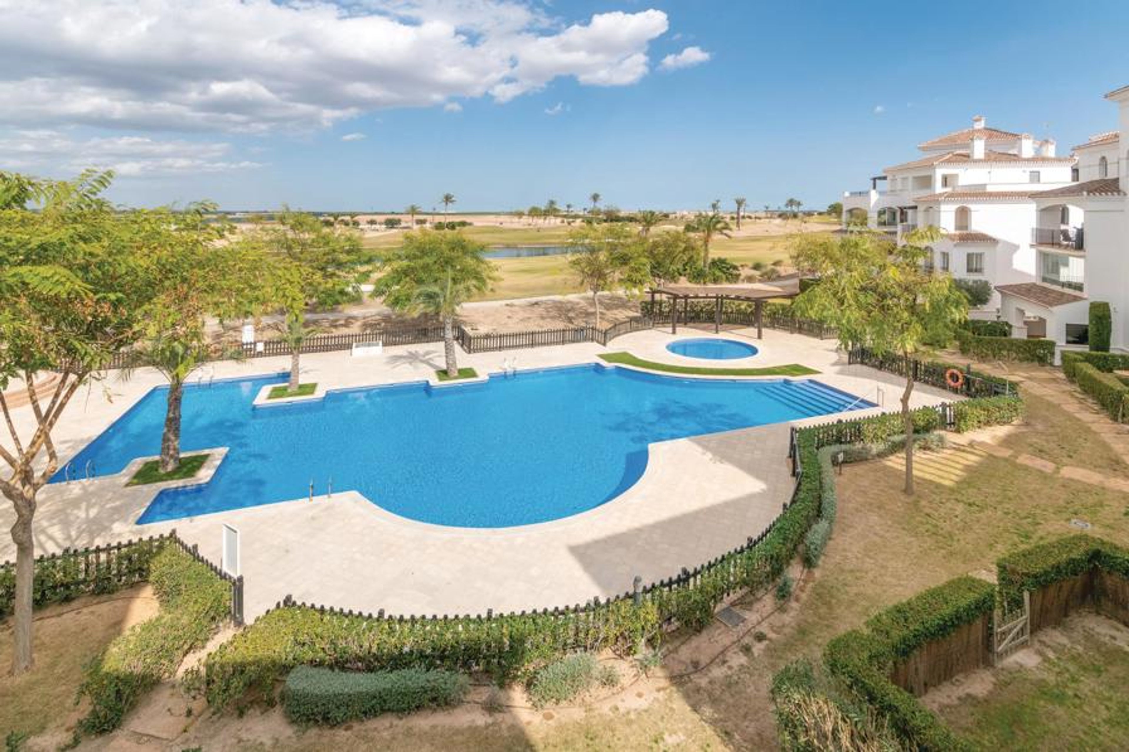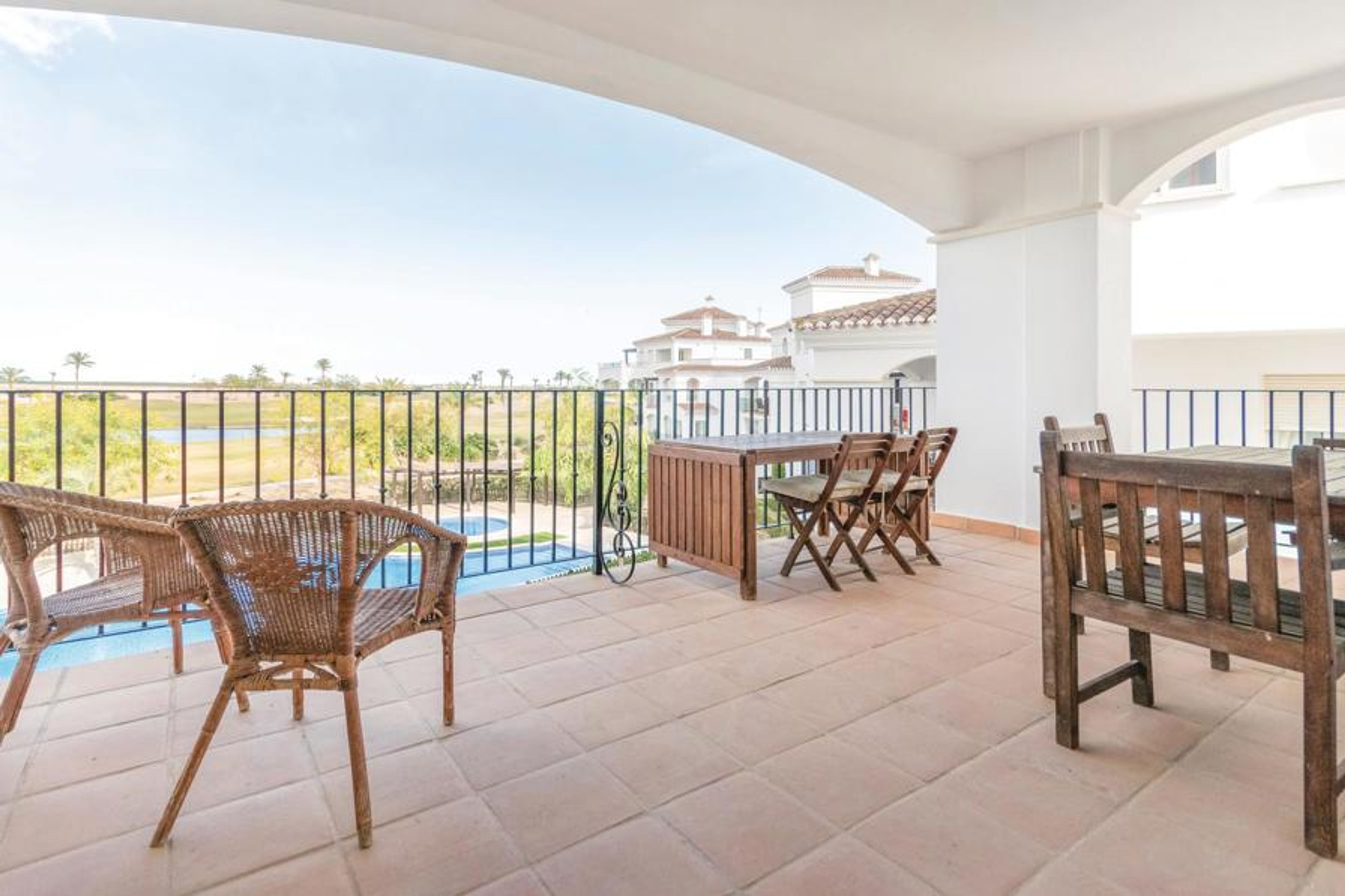 This is a nicely furnished apartment on the 2nd floor overlooking the golf course and the shared pool, which features a beautiful, shaded terrace, air conditioning and wireless internet access. .
