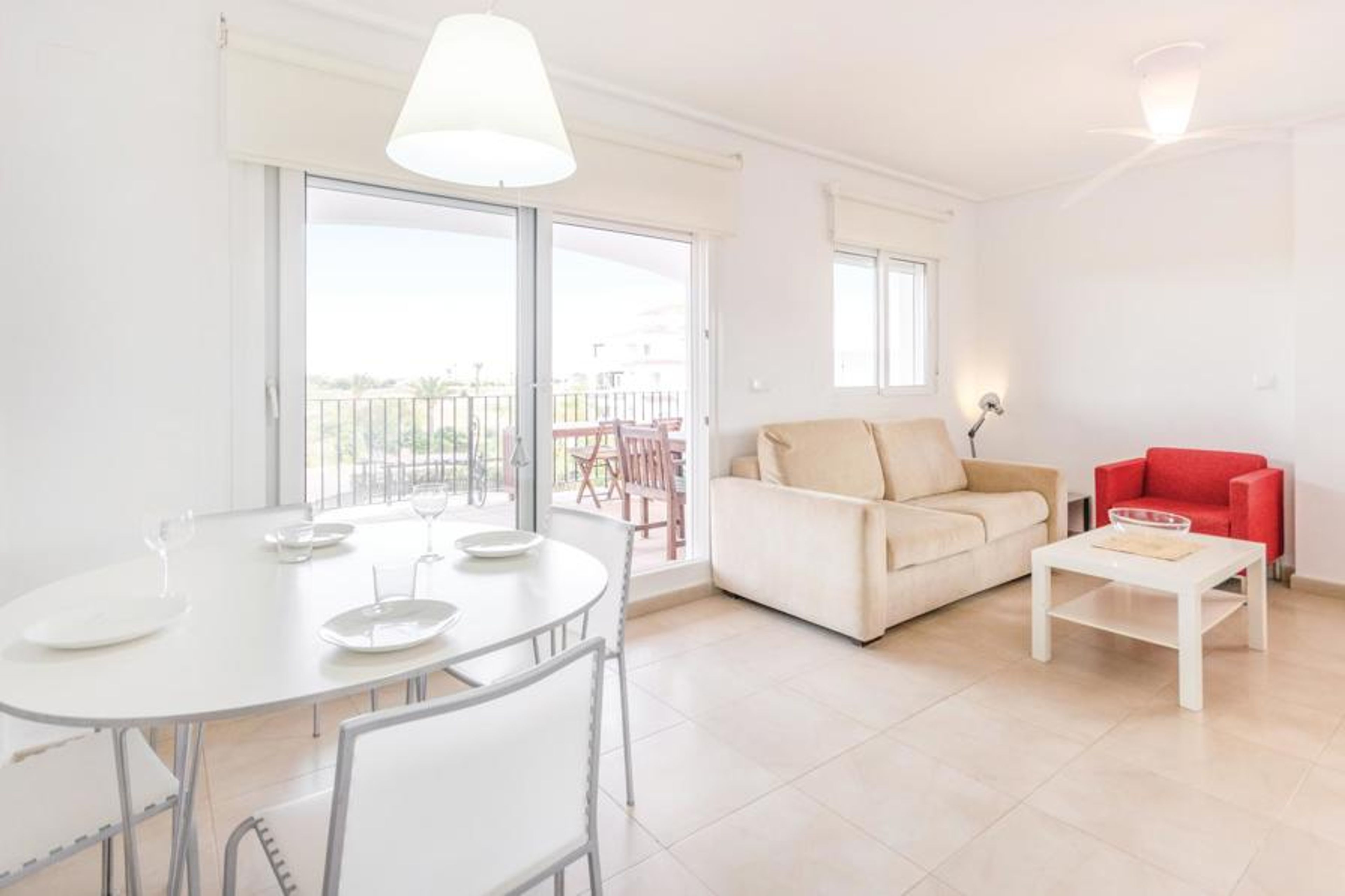 Friendly furnished apartment on the 2nd floor with a view of the golf course and the communal pool. With a beautiful, shady terrace, as well as air conditioning and WLAN internet access.