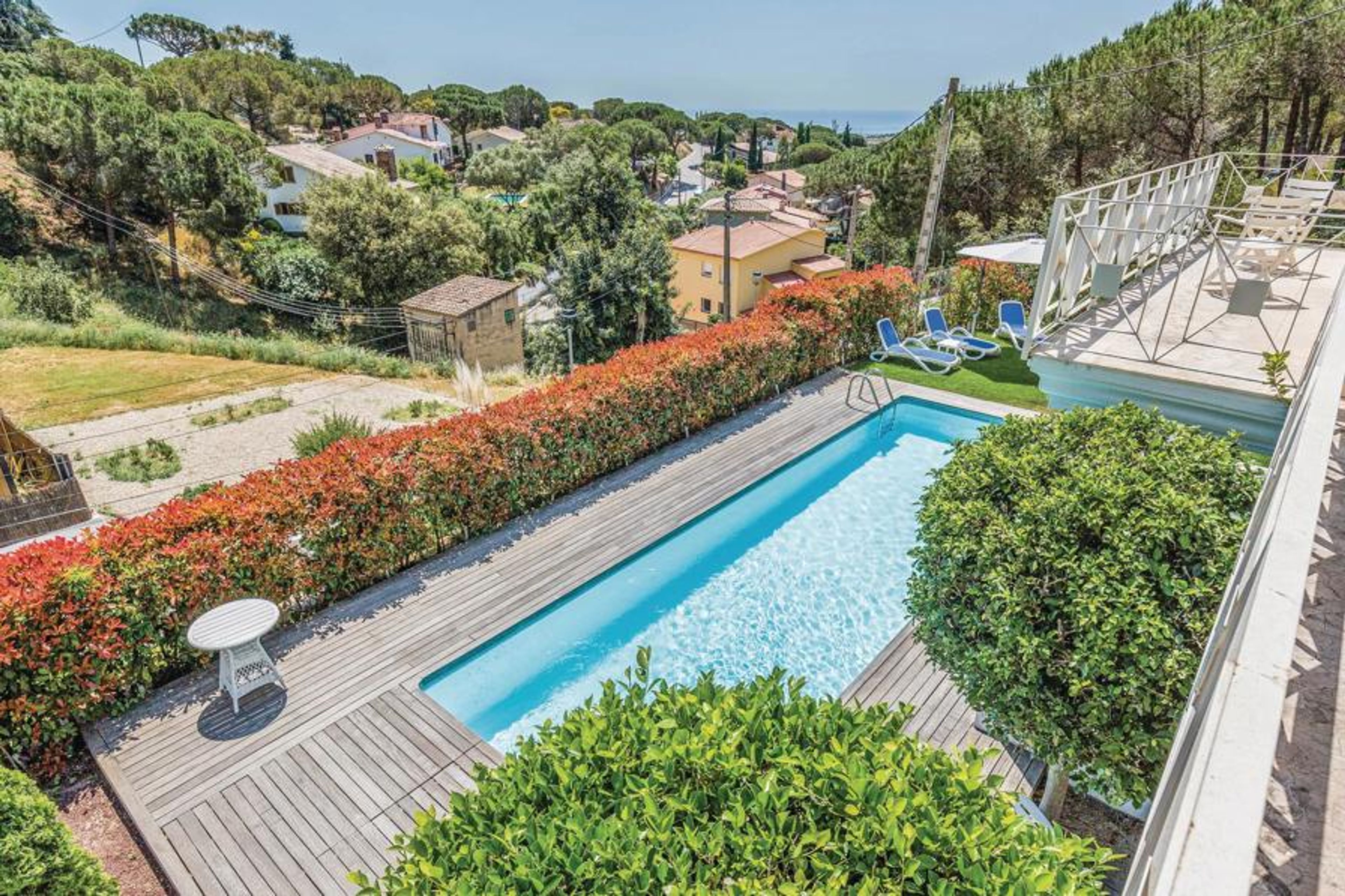 This spectacular, very bright vacation home is a perfect alternative to a luxury hotel, as you can enjoy a quiet stay with family or friends in a beautiful, high quality environment. The beautiful, modern designed 800 m² garden with 10 sun loungers and fantastic views of the sea and the mountains and the 33 m² private pool invite you to relax and sunbathe on the property. The sandy beach is also just 3 km away, trekking and mountain bike trails can also be reached in just 1.5 km.