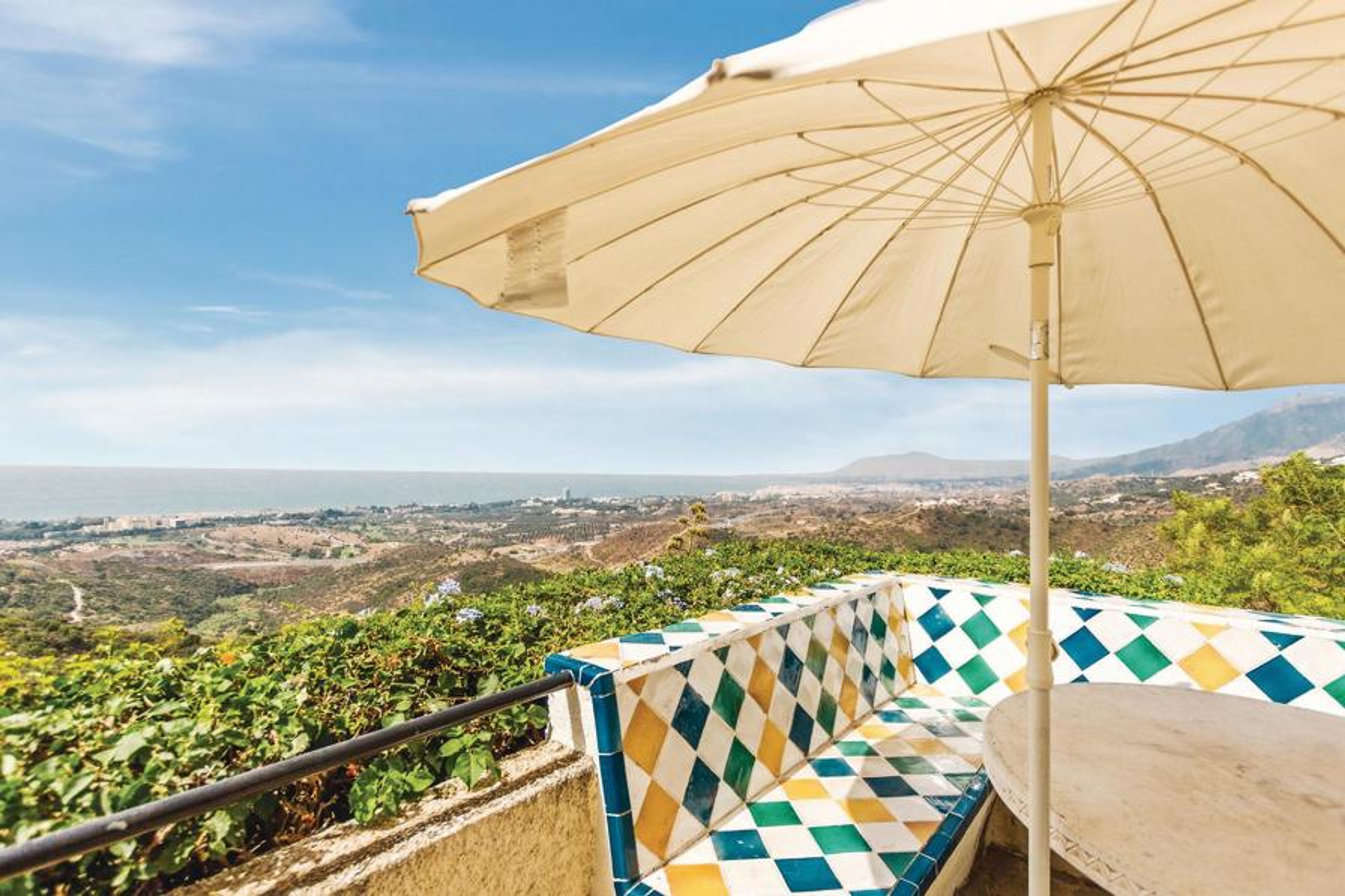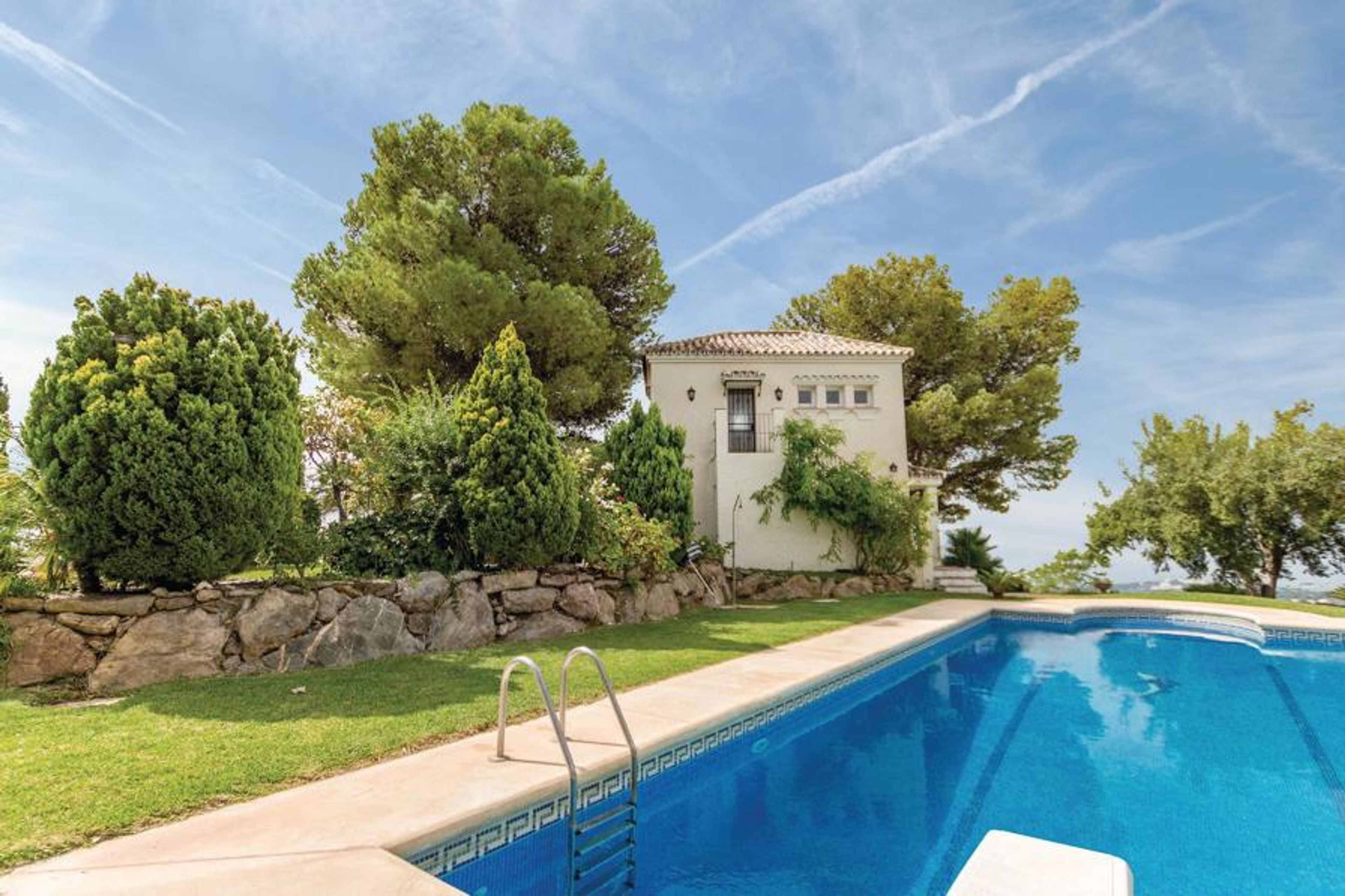 This magnificent domicile is located on a hill, only 10 km away from the dazzling Marbella, known for its luxurious villas, casinos and marina. The house is surrounded by a large, well-kept natural plot, it has spacious terraces from which you have a beautiful view of the mountains and the sea to North Africa and Gibraltar. Unwind and relax on the beautiful shaded terraces. A plantation of trees provides a fresh ambiance, framed by the large turquoise pool. Inside the house, enjoy the spacious layout and beautiful views. Your vacation home is equipped with all comforts while featuring select furnishings with attention to detail. The nearest golf courses are only 5 kilometers away.
