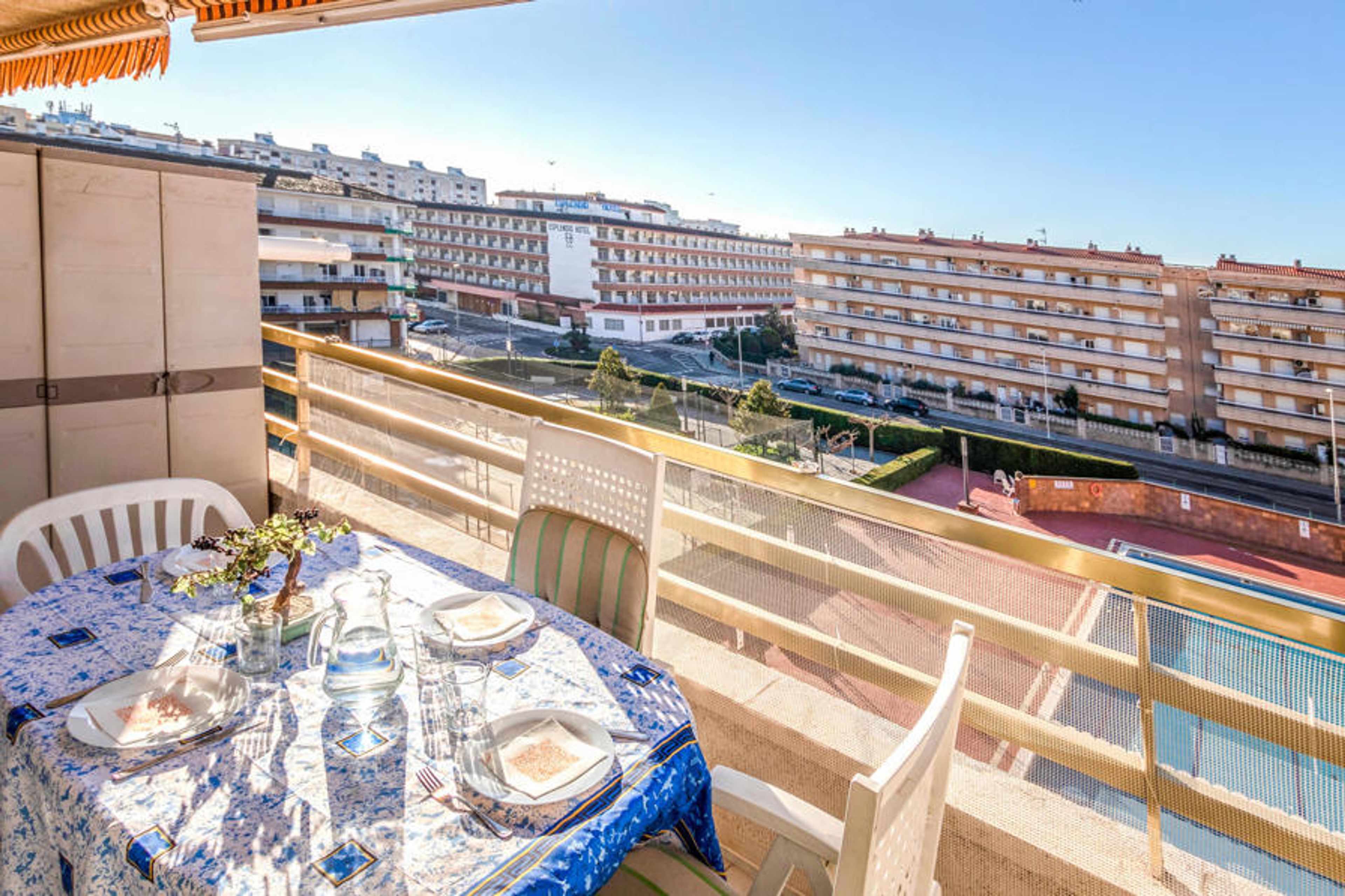 Spacious, open-plan and very bright apartment in Blanes. This well-equipped apartment offers a terrace for dining and a large communal area with pool and tennis courts. .