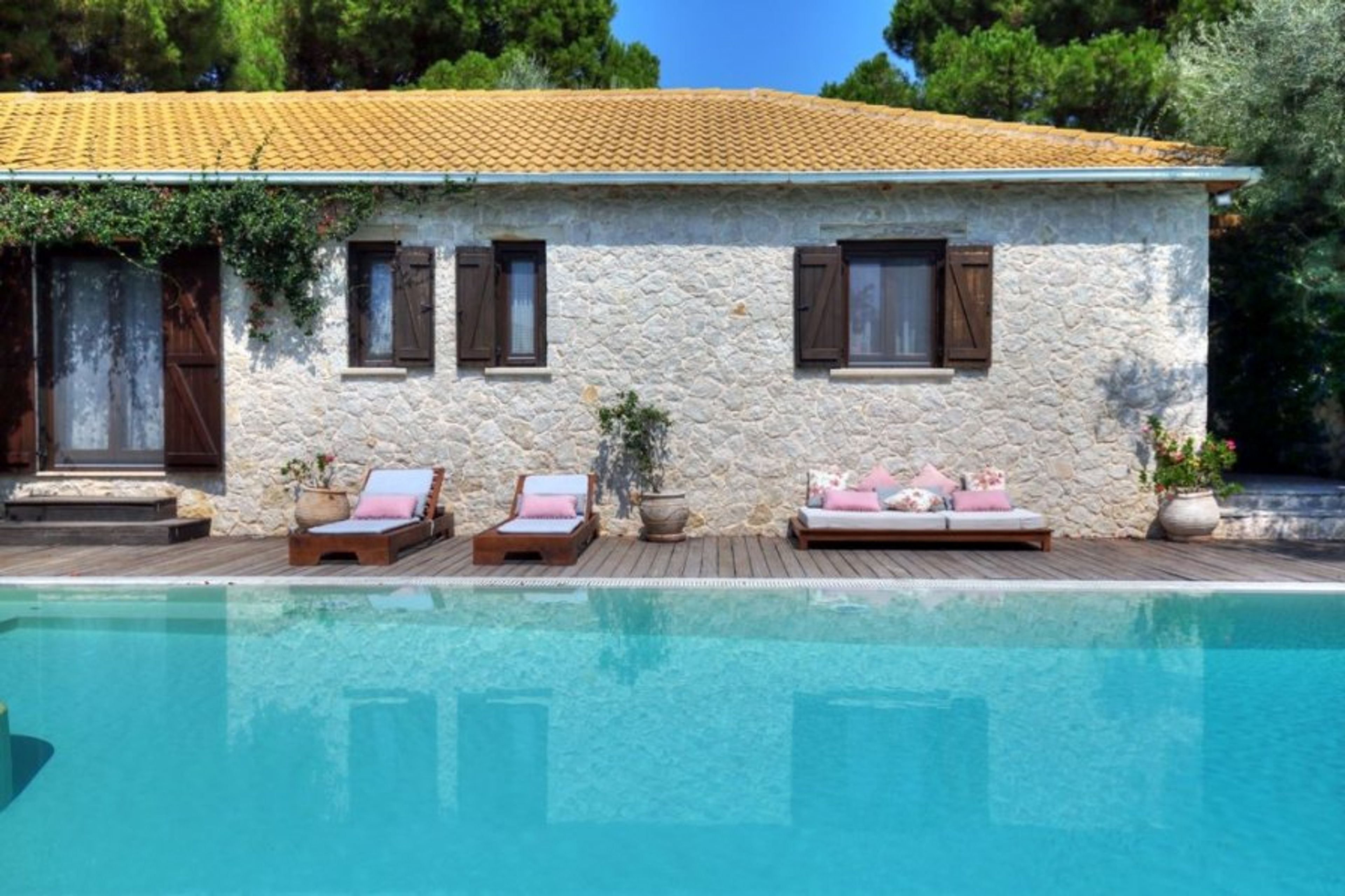 Arenaria villa (120sq.m.) is a luxurius stone-made villa with a 55sq.m. pool, private, elegantly decorated, spacious, combining serenity and comfort with all modern amenities. It is set at a very convenient location, c. 800m from a unique, for its sunset & watersports, sandy beach, c. 100m from the closest minimarket and c. 1km from all the amenities of Lefkada town and its modern marina. This is a family friendly villa offering quite a few conveniences for kids (children's pool, playground, baby cot, high chair etc.).