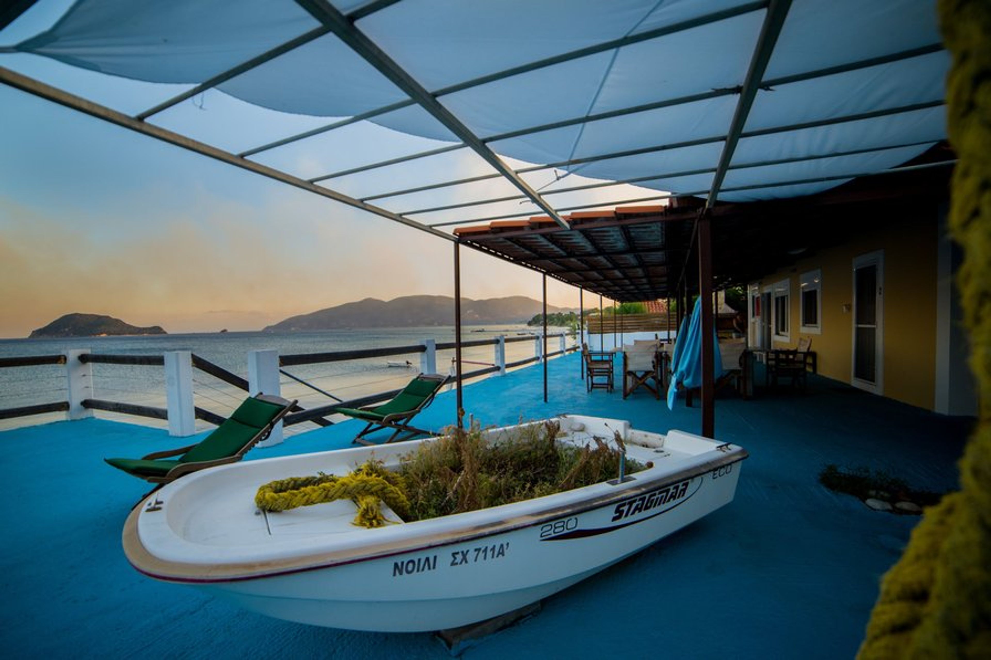 In the Yard you can enjoy your meal with view in the Ionian Sea, you have private entrance for the beach and private umbrellas and sunbeds.
