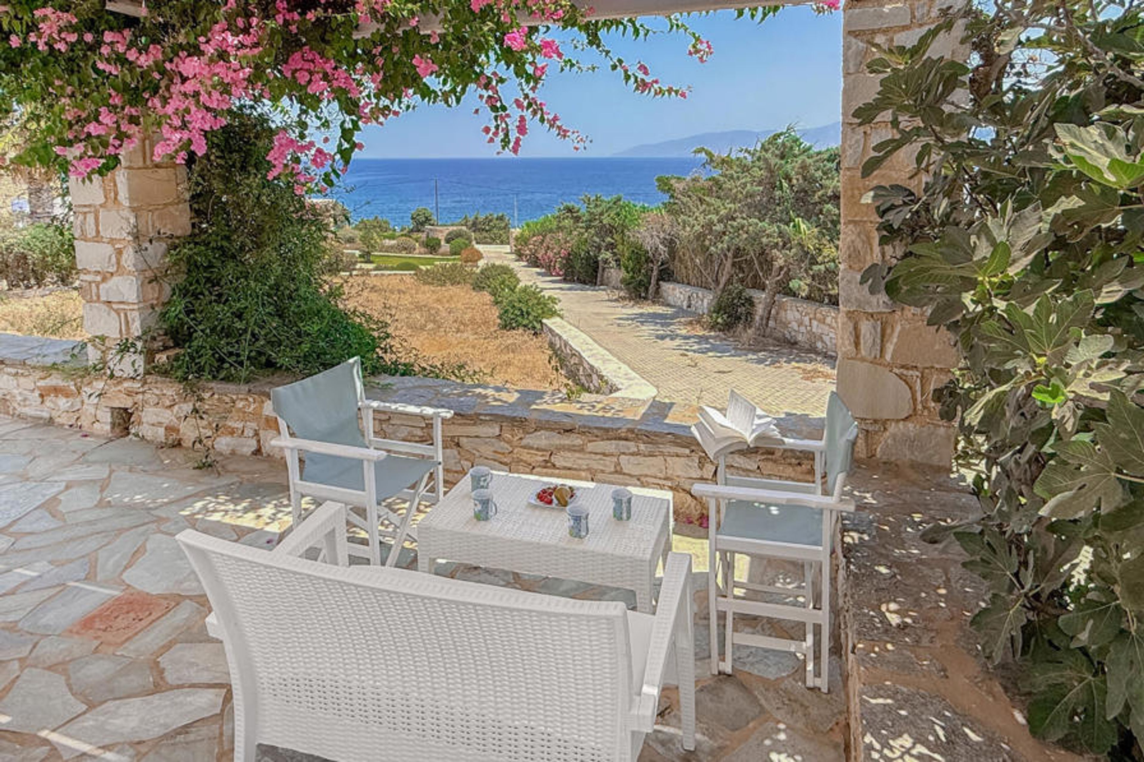 In the outdoor area adorned with bougainvillea, charming natural stone terraces await you. Serve your breakfast in the shade and let your gaze wander over the vast sea. Make yourself comfortable on the sun loungers and lounge furniture and chat into the warm summer night with a glass of wine.