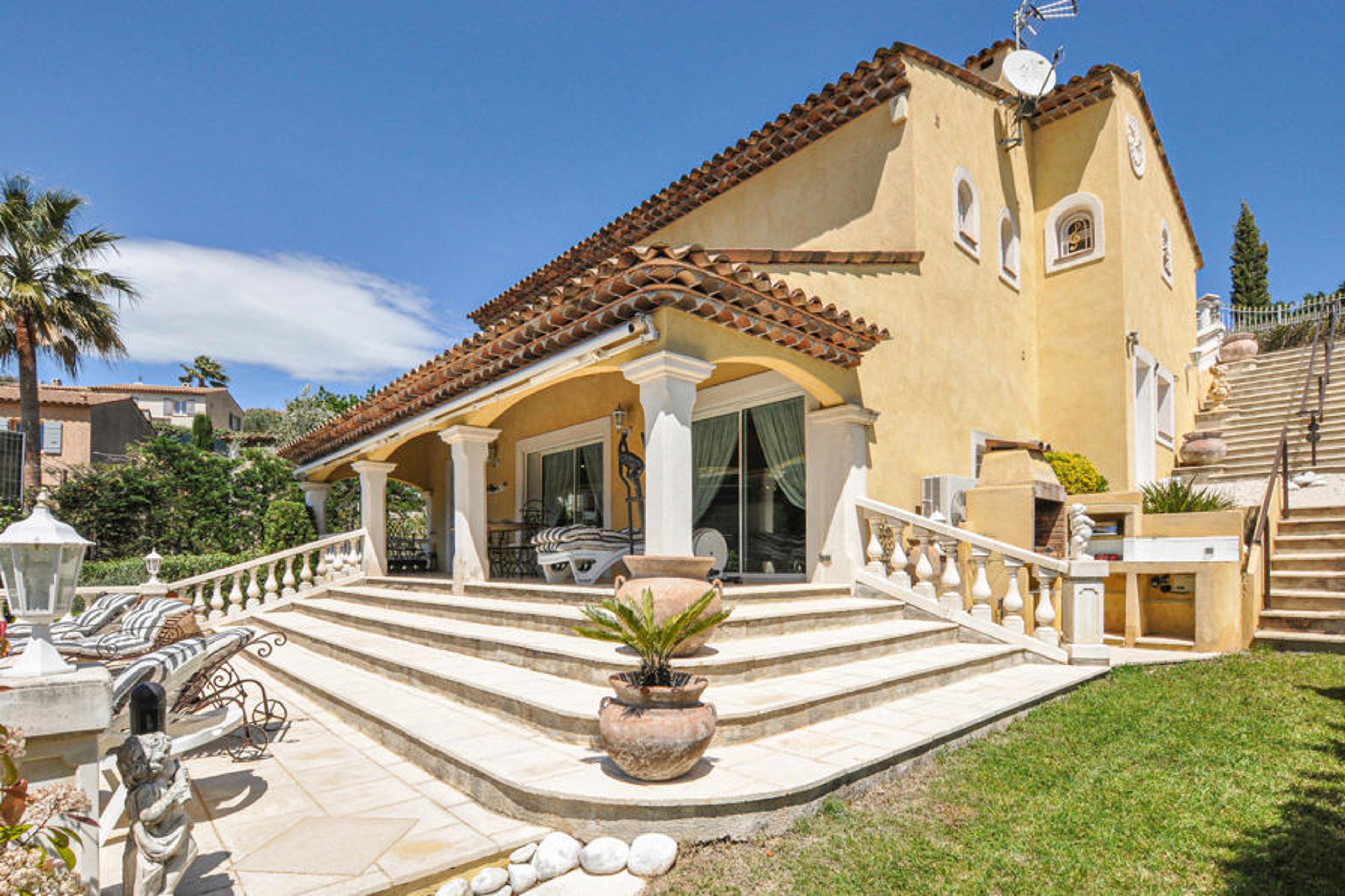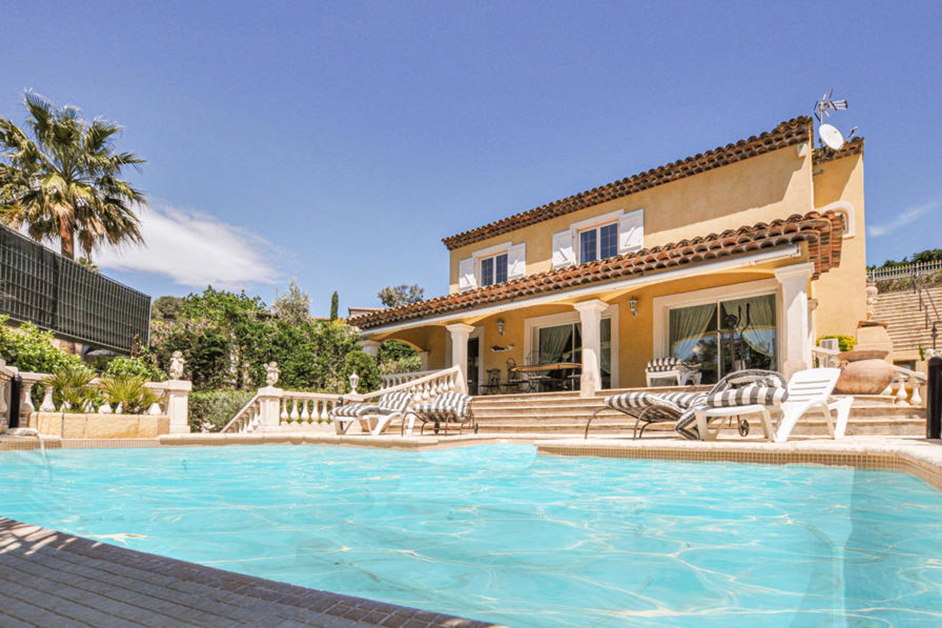 This charming villa is situated on the edge of a beautiful village, close to the Lac de Saint-Cassien. It has been elegantly furnished with marble flooring and leather sofas.