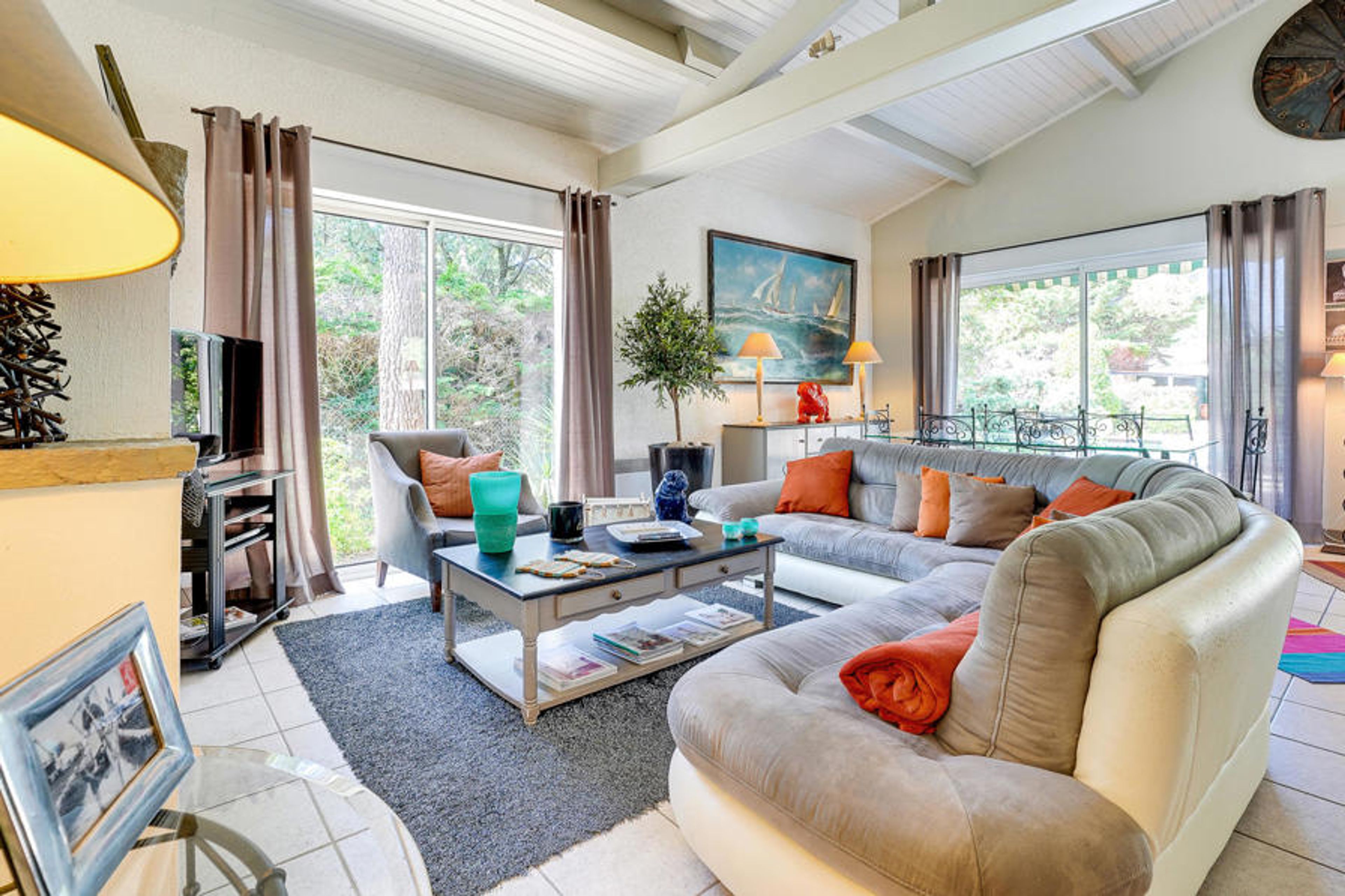 A modern vacation home with plenty of space on a large enclosed plot in a residential area with pine forests. Nearby there are opportunities for water sports, horse riding, tennis, hiking and cycling trails as well as many picturesque villages, nature reserves, oyster farms, antique markets and wineries to visit. Experience markets with fresh local produce. Visit the harbor pier in St. Martin to enjoy the local drink Pineau in one of the many bars.