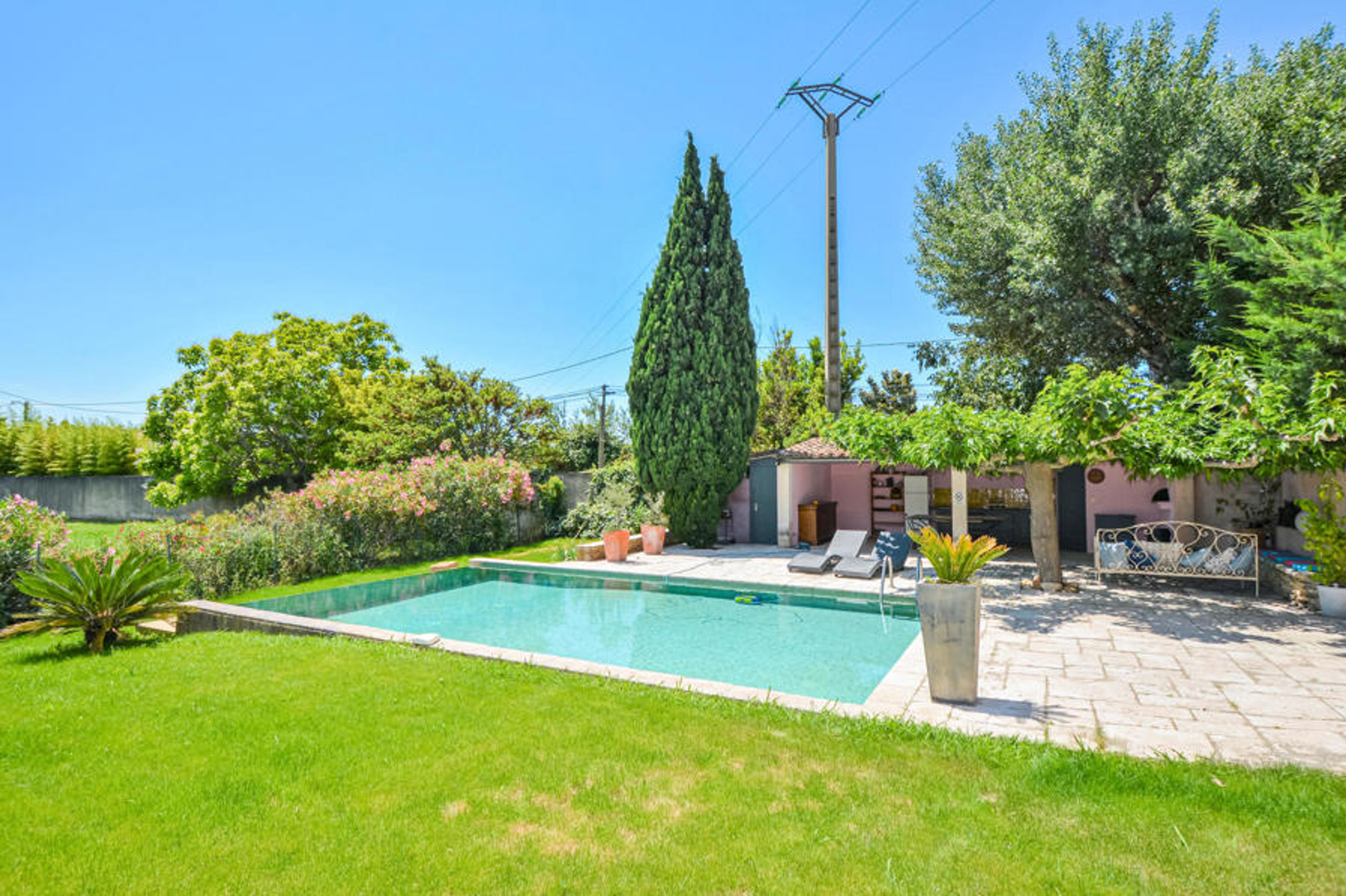 Peacefully situated on the edge of Eyguières, this vacation home is located between the Alpilles and the coast of Marseille. Shopping facilities are within easy walking distance. Prepare your meals in the outdoor kitchen and eat in the shade overlooking the pool. Visit Salon-de-Provence or explore Provence, the Alpilles, St Rémy-de-Provence and Les Baux-de-Provence with its medieval castle. You can reach the Camargue National Park in an hour or drive to the sandy beaches of Saintes-Maries-de-la-Mer.