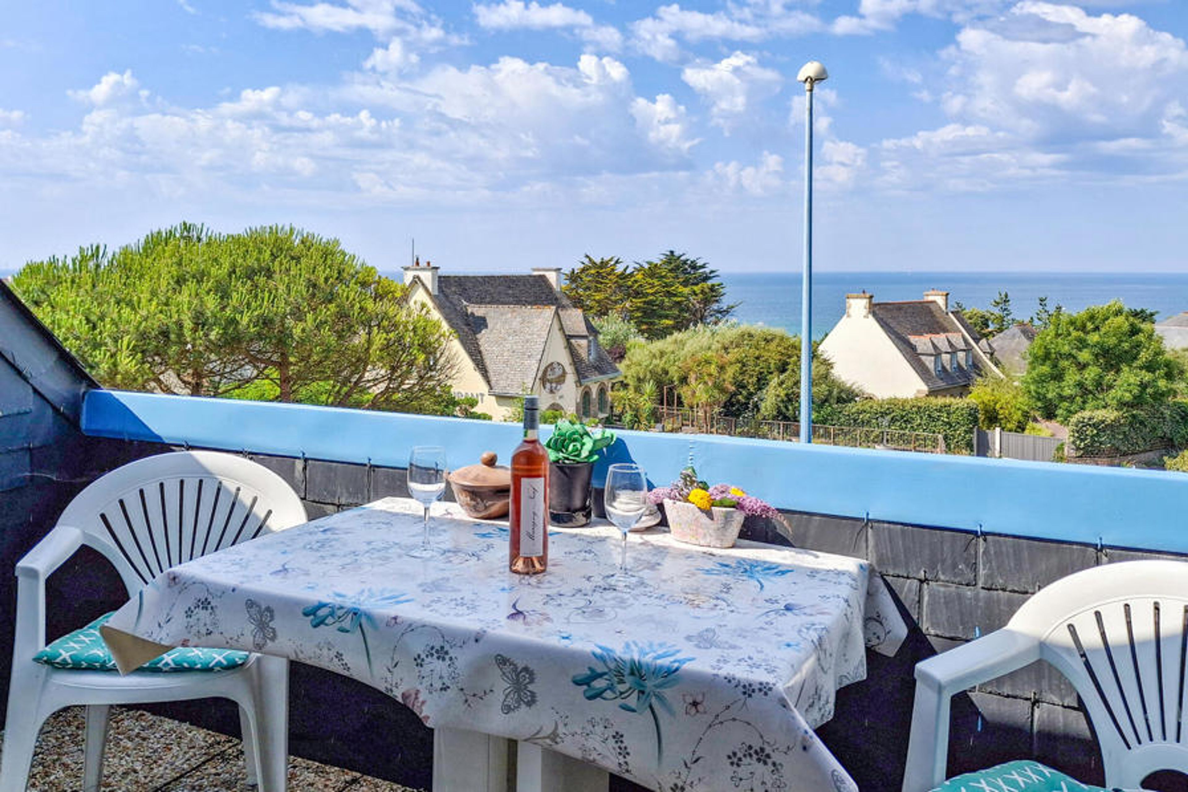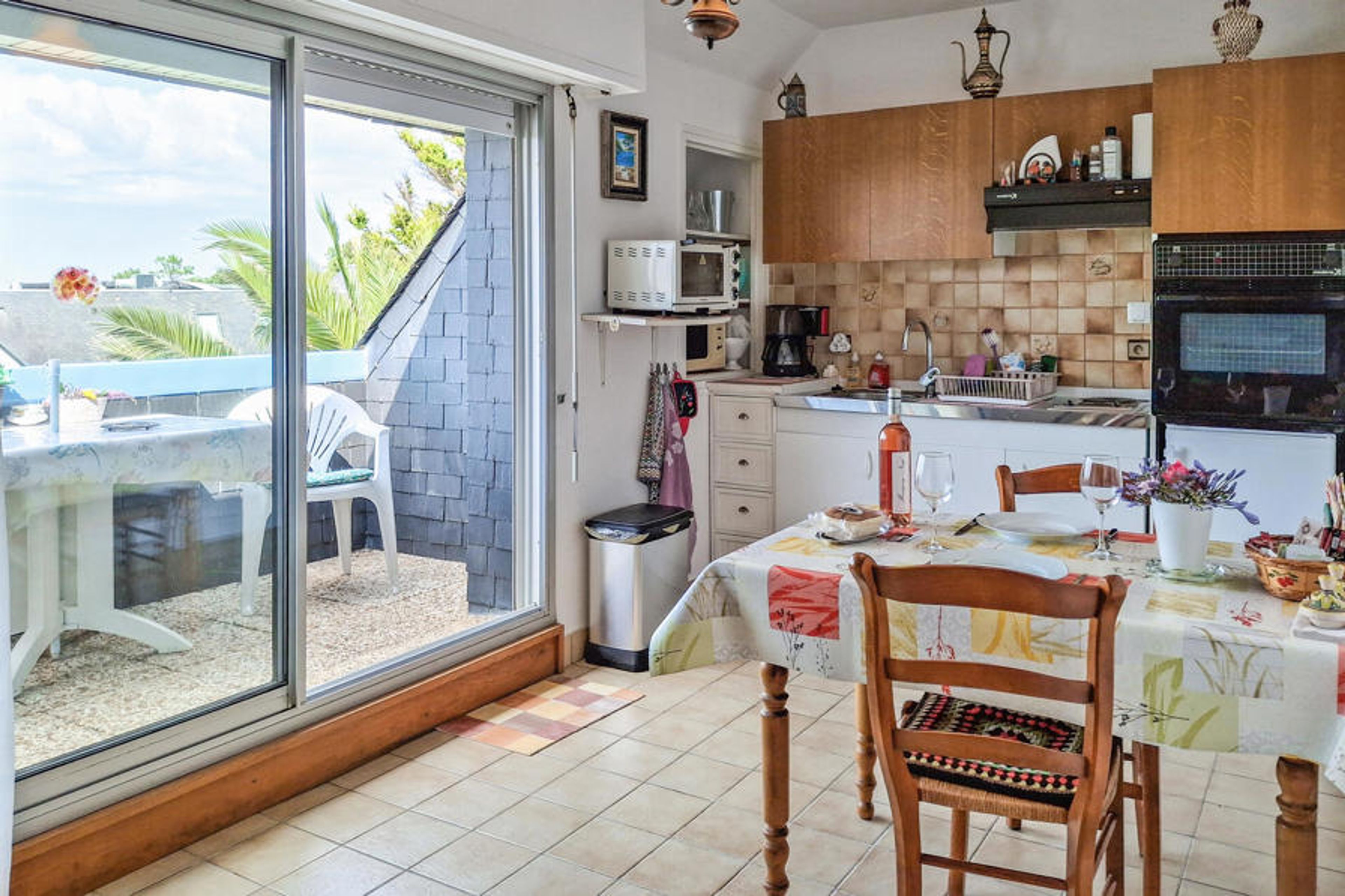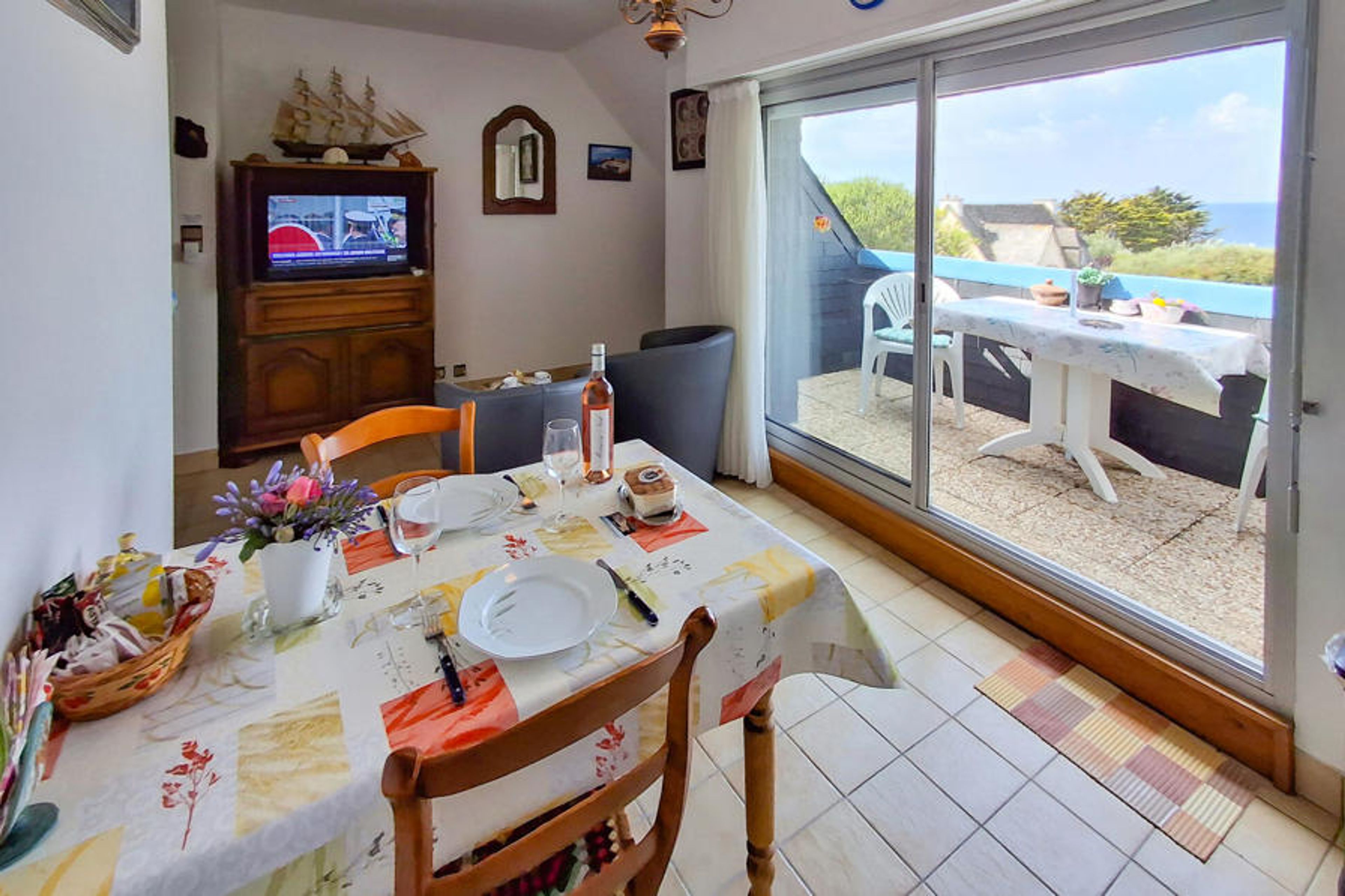 The flat is located on the 1st floor and on the edge of the village of Le Pouldu, 20 km west of the lively harbour town of Lorient on the south coast of Finistère.