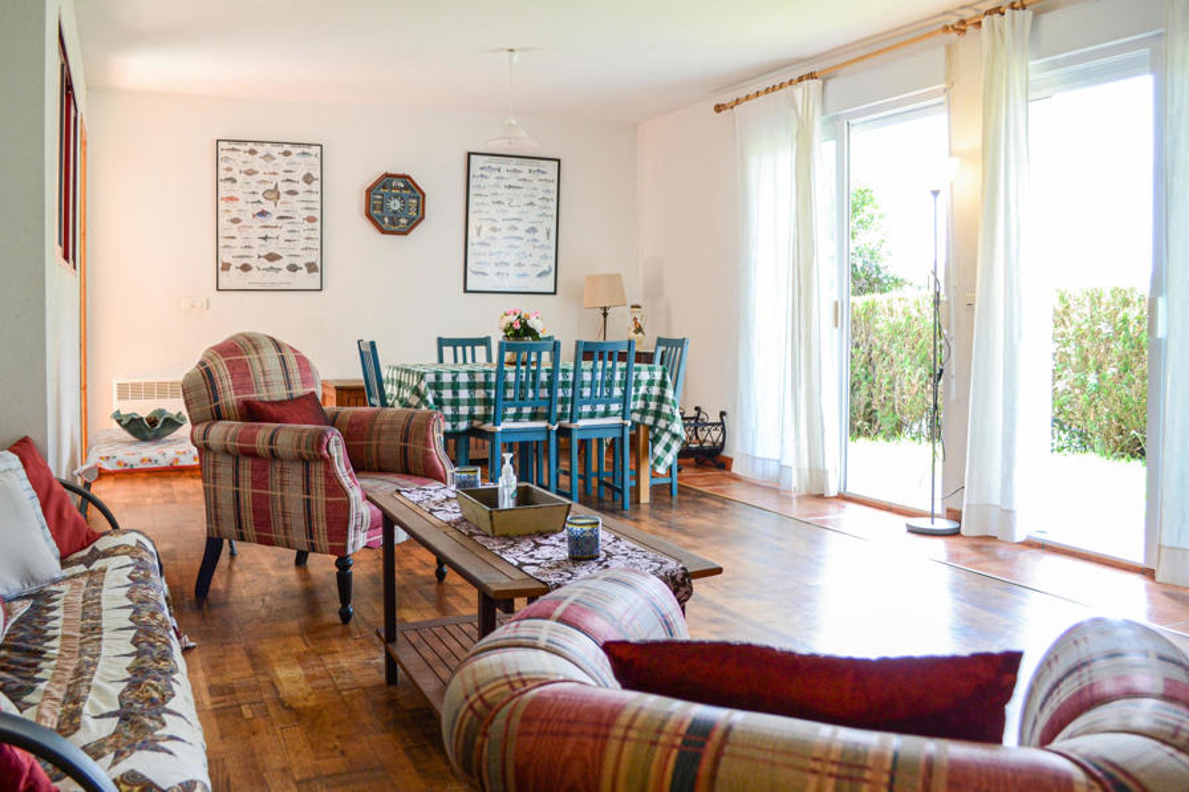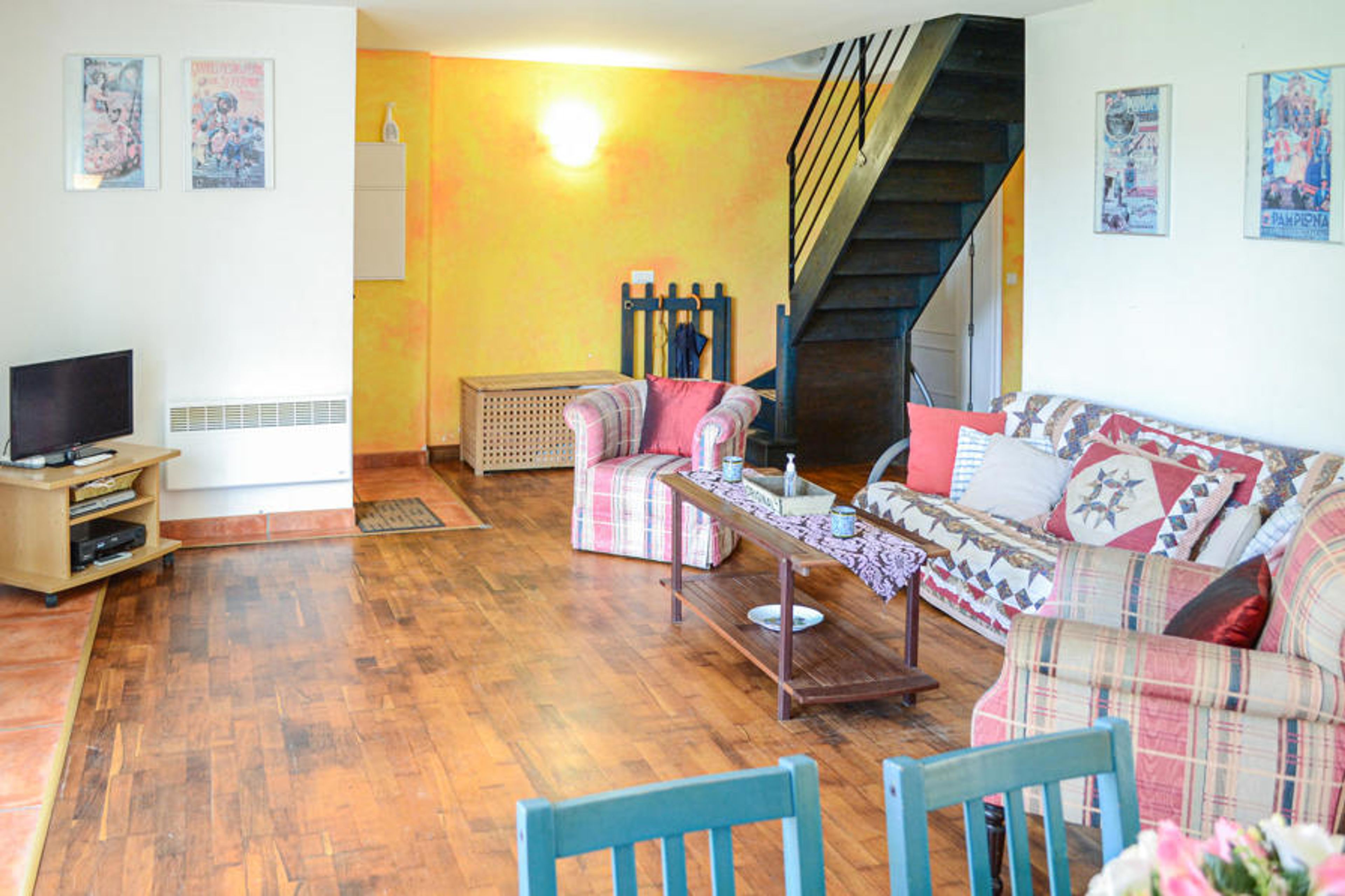 In the hills of Hendaye welcomes you this delightful vacation home in local style. Here you will stay in a quiet location, close to the beach and overlooking the sea and the Spanish coast on the other side of the bay. The two-story house is charming and tastefully decorated with pretty colors, creating a homey atmosphere. Spend many social and relaxing hours in the cozy rooms and corners of the house.