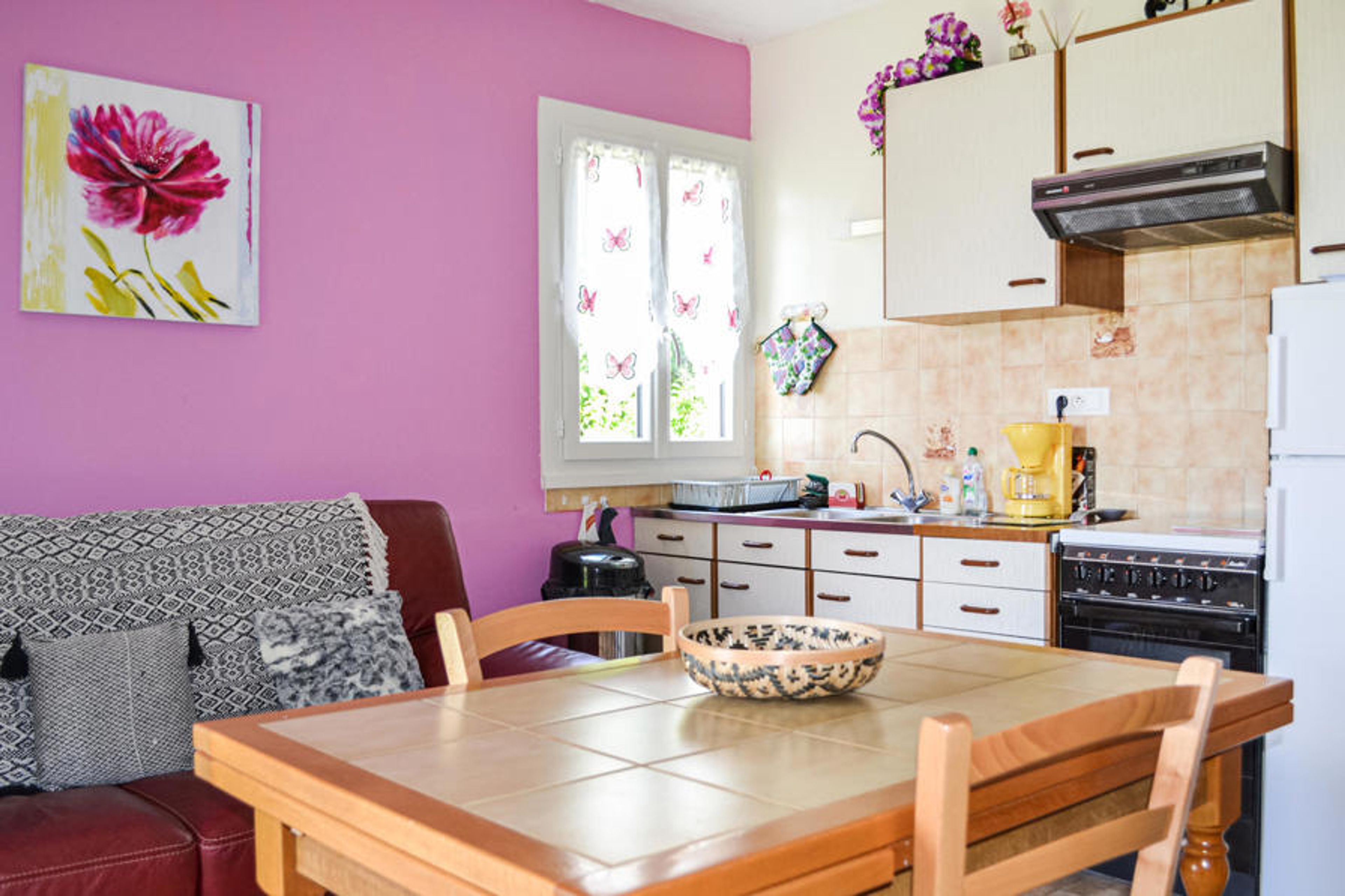 Enjoy a break in your holiday home surrounded by oak and chestnut woods. Look forward to peace, nature and the proximity to places worth seeing in the Lot department. Make yourself comfortable in the simple but practical rooms and organise your days according to your own rhythm. Use the small kitchen with the most important utensils to prepare your meals. Dine together at the dining table or relax on the sofa while enjoying the view outside.