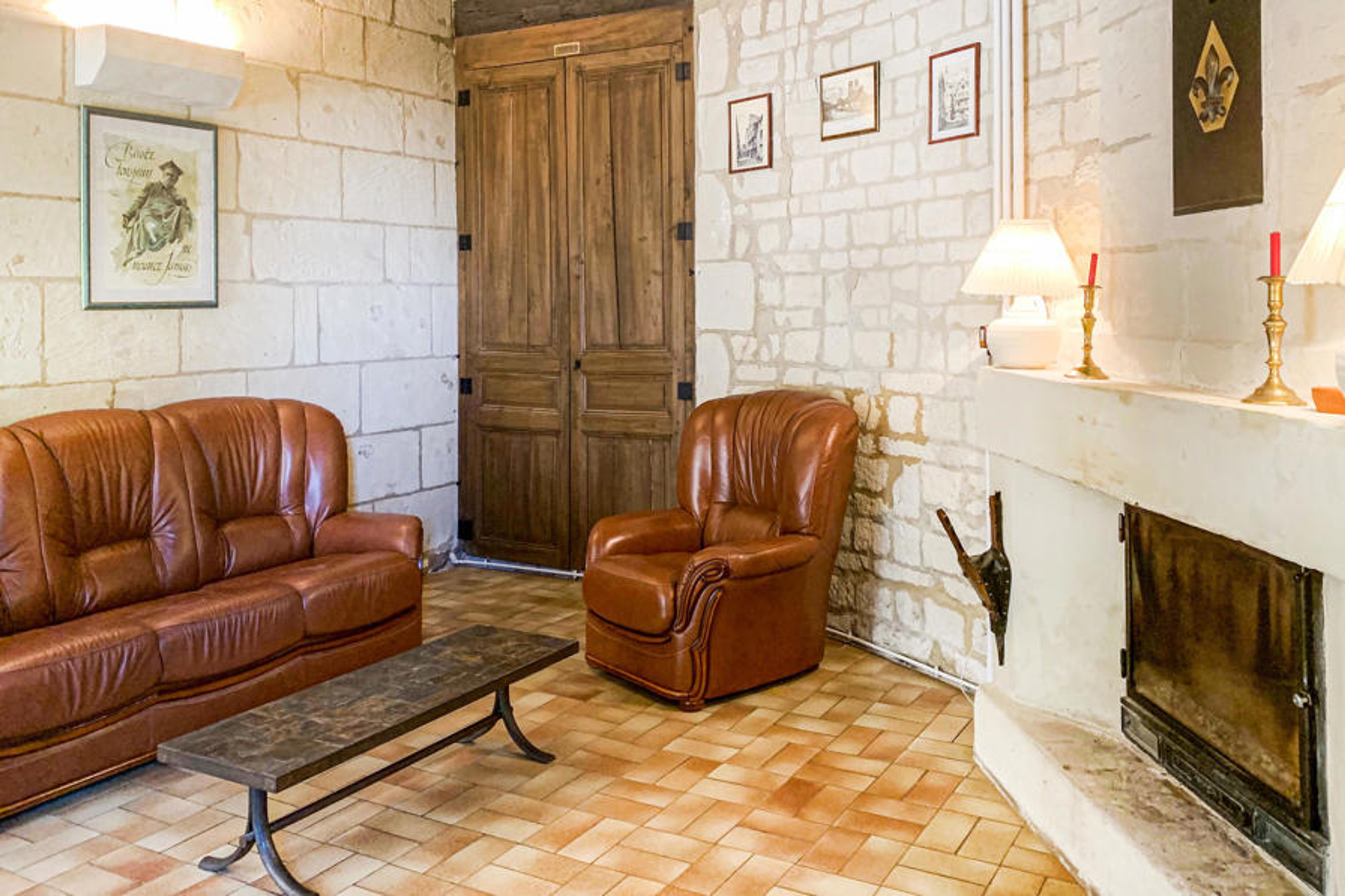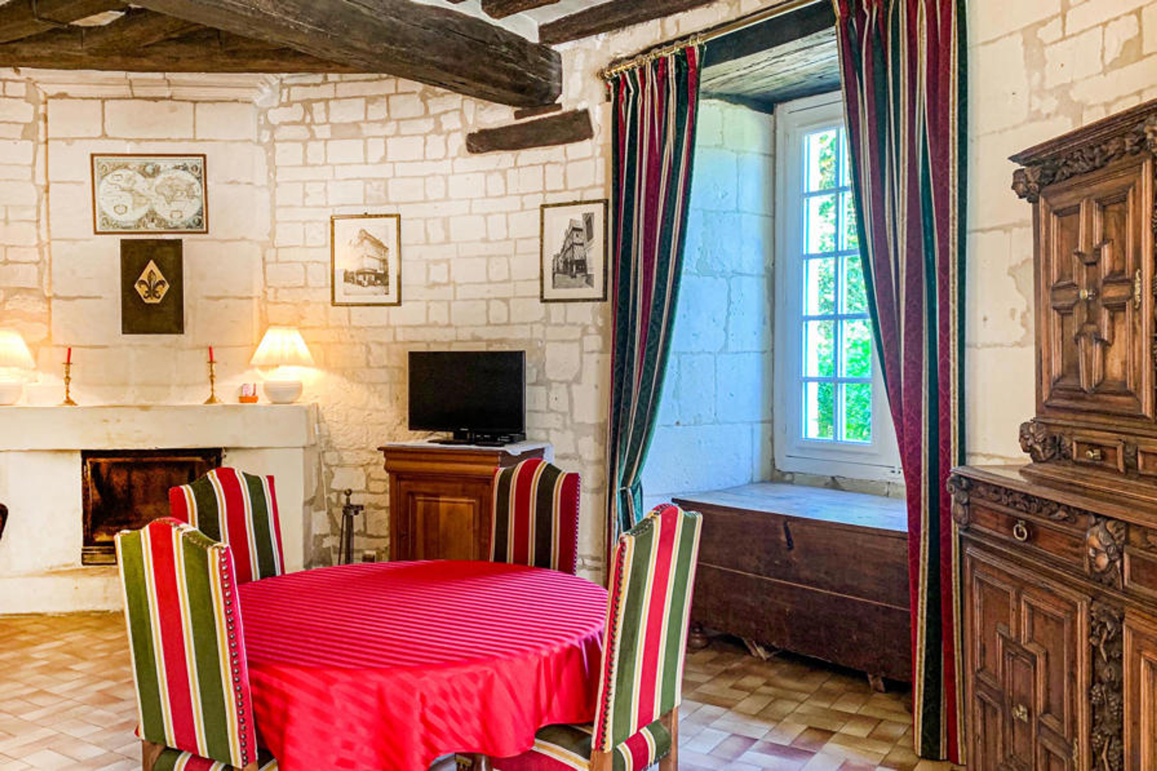 Unusual 12th century dovecote overlooking Chinon Castle and the wine yards. Furnished in a country style, with beams, high ceilings and stone walls. Near Monsoreau and Candes St. Martin, two of the most beautiful villages in France. Experience the Loire castles of Villandry, Ussé, Azay-le-Rideau, Langeais and Saumur. In the middle of the Tourraine wine district there are many famous wine farms. A beautiful cycling area with paths along the Loire. Horseback riding, boating, golf nearby. Small watercourse on the common part of the property. The cubic meter of wood for heating costs 55 euros a week.