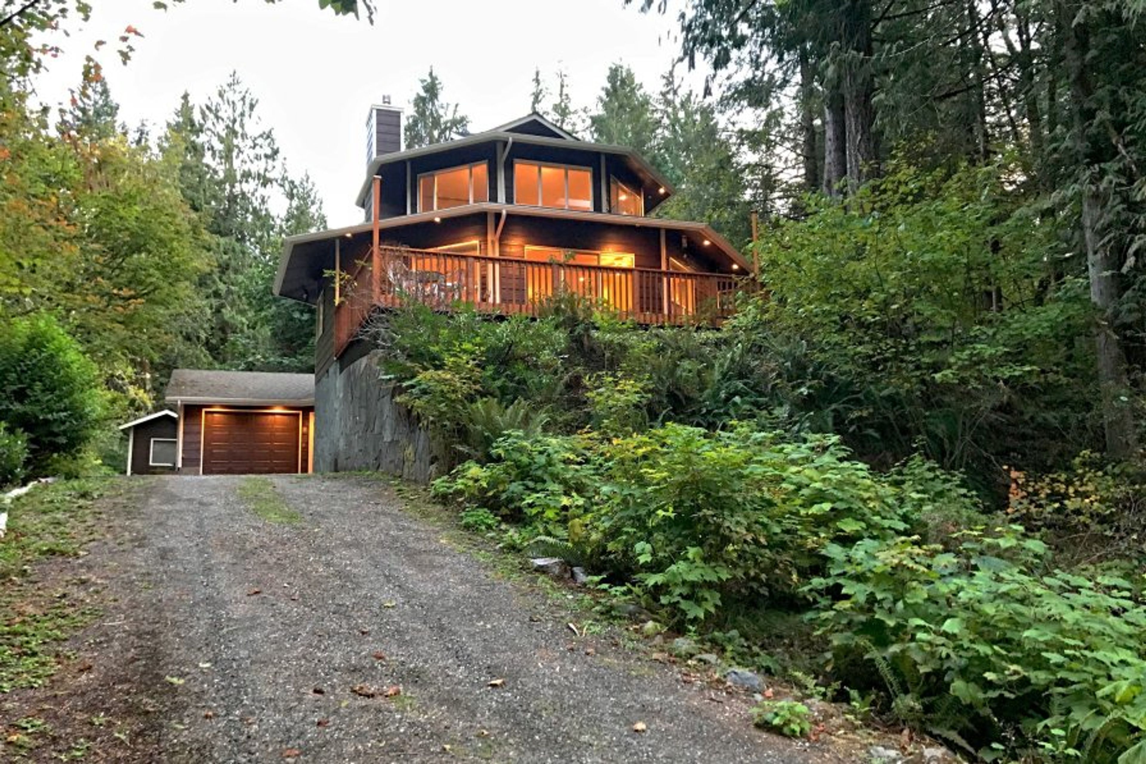 This custom octagonal 3-story, 2+ bedroom, 2-bath home perched on top of a knoll is an architectural gem, with lots of light and all the bells and whistles! The ground floor entryway features ceramic tile floors with a freestanding gas fireplace and an ad-hoc game room, complete with a ping pong table and plenty of space to store your gear—winter and summer. Ascending the stairwell brings you to the main floor, featuring the master bedroom with 1 king sized bed and a large full-length closet. Step into the generous living room/dining room area with hardwood floors, a beautiful gas fireplace to cozy up to, a large screen monitor with WIFI, a hide-a-bed, and 3 sides of windows that bring in lots of natural sunlight—perfect for family entertaining. The unique, fully equipped galley style kitchen features ceramic tile floors and countertops, a separate stove top and oven, as well as a built-in microwave oven. Also included in the kitchen is a laundry cubby with a full-size washer and dryer. Finally, the main floor also includes one large full bath. Step up to the third floor and you’ll discover a carpeted bonus room/loft with a queen-sized futon and a DVD/VHS/monitor—perfect for the kids—a large bath, and a unique pine-lined bedroom with 1 queen-sized bed. Just outside the main floor living room is a partial wrap-around deck for winding down the day while gazing at the stars, and just out back is a private 6-person outdoor hot tub—perfect for relaxing after a day of some of the best skiing and hiking anywhere! This beautiful and pet friendly family vacation property will sleep 4 to 8 persons (ENFORCED Maximum Occupancy).