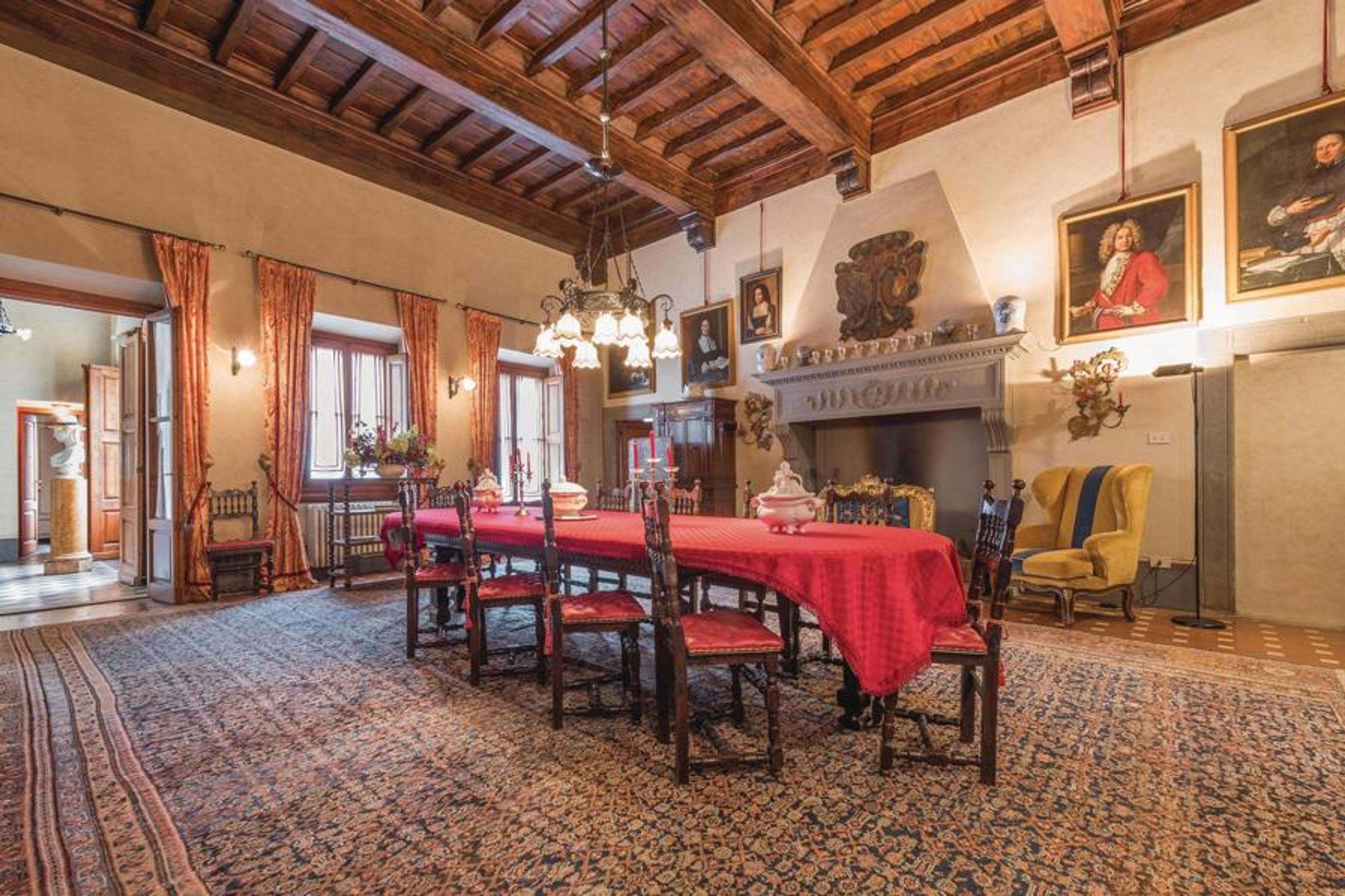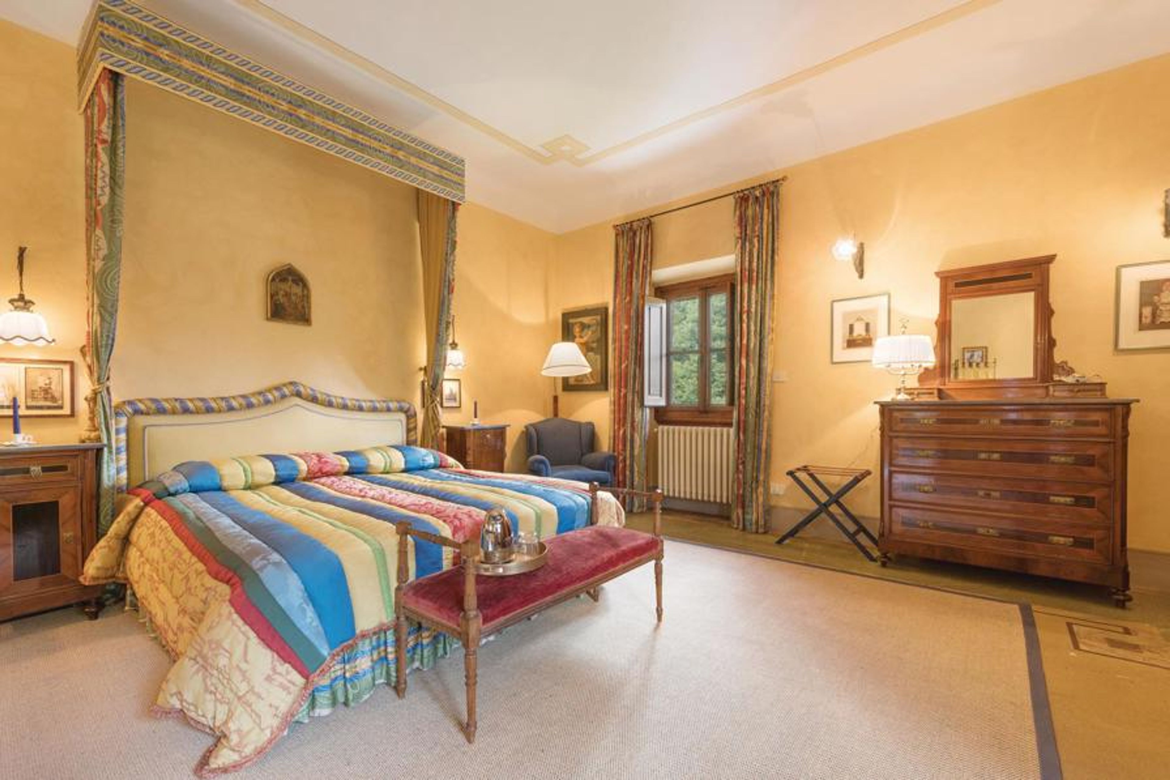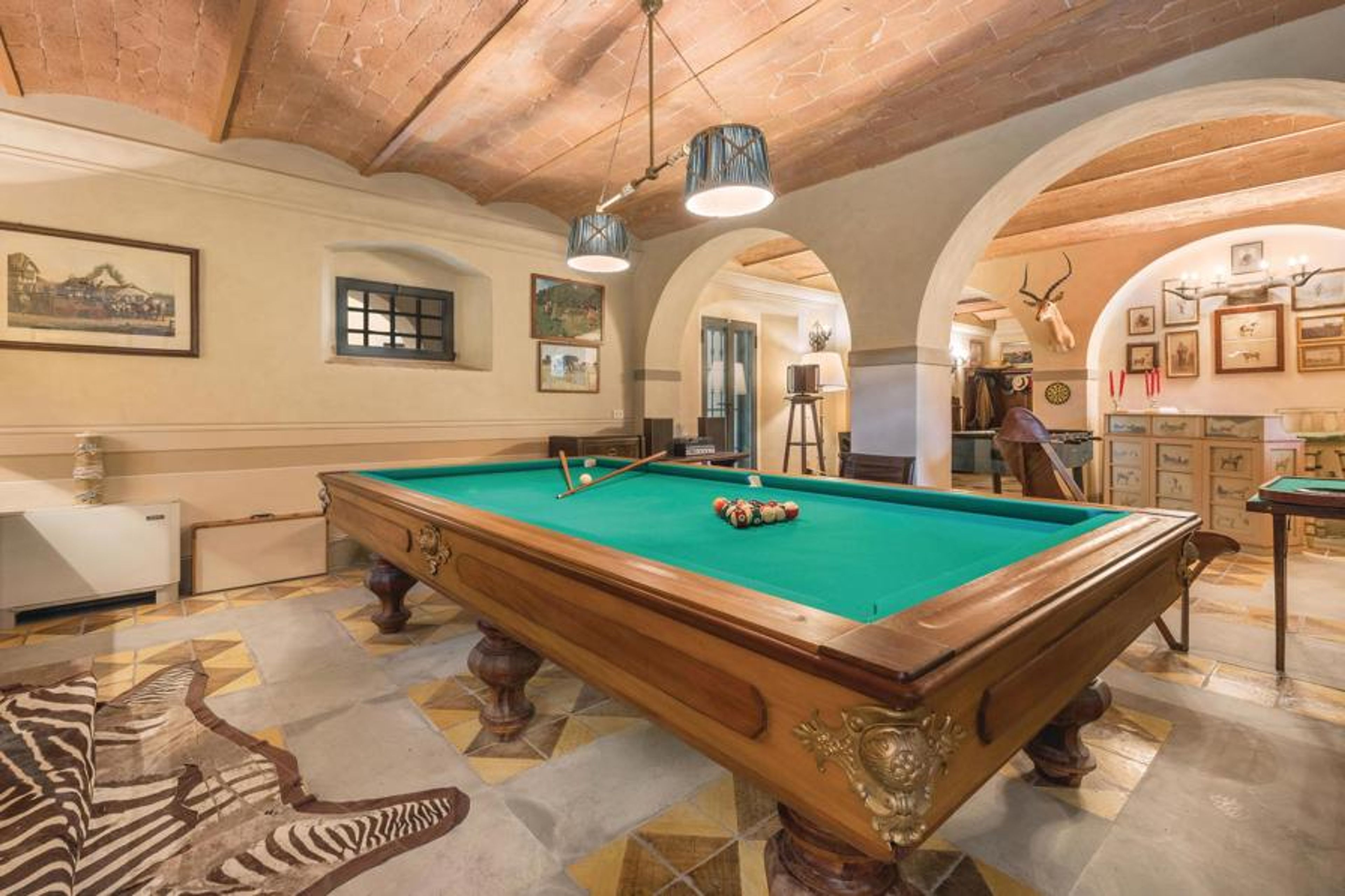 If you dream of spending your vacations in an authentic mansion with private pool surrounded by the beautiful Tuscan countryside, this is the ideal place for you! The villa, located about 7 km from the pretty village of Borgo San Lorenzo (all services and stores of all kinds), is very spacious. With its 6 bedrooms and 5 bathrooms, the accommodation is ideal for several families or groups of friends who want to spend their vacations together. From this three-story villa (with elevator) with the characteristic architectural features of its time, partially furnished with antiques and adorned with authentic decorations, you will certainly appreciate the large indoor and outdoor spaces, but also the modern comforts, the external loggia with fireplace, the game room and billiards room and of course the beautiful bean-shaped pool! Relax in the park of about 20,000 m2, sunbathe around the pool, let your children play in complete freedom and then organize a barbecue or cook a real Italian pizza! Due to the convenient location of the villa you can easily reach the main art cities of Tuscany, such as Florence, Siena, Lucca, Pisa. From the train station Borgo San Lorenzo (7 km away) train connections are also possible. Distances: Florence 20 km, highway connection Barberino di Mugello 22 km, San Gimignano 95 km, Siena 115 km, Lucca 105 km, Pisa 125 km. At the back of the villa is the domicile of the janitor, who is responsible for the arrival and departure of guests, as well as for park and pool maintenance. Inside the park there is a fenced cottage where a family lives. On the second floor there is a breakfast room with TV, from where a staircase leads to a laundry / ironing room.