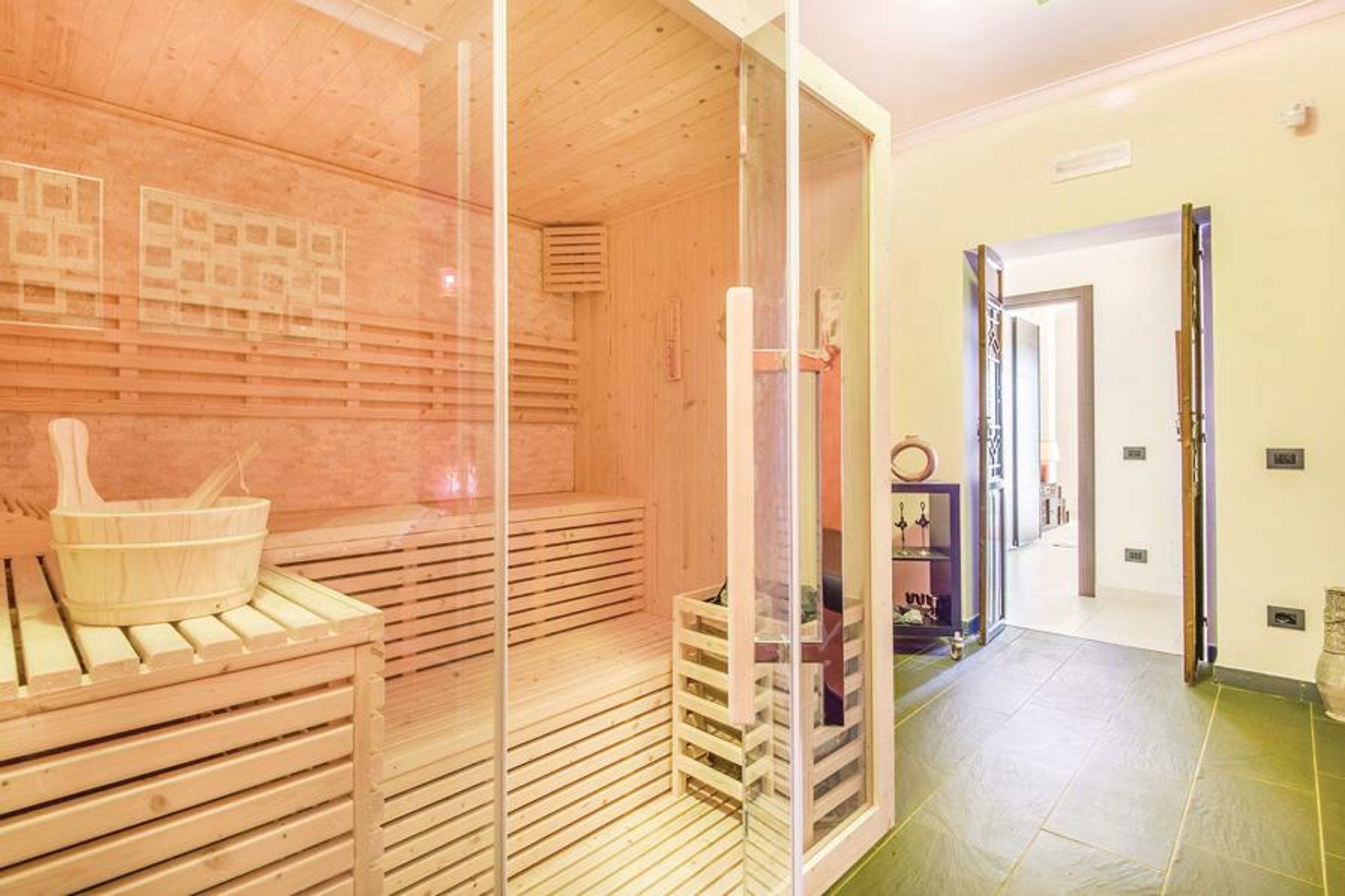 This beautiful vacation home with pool and panoramic jacuzzi is located in the charming Tuscia countryside, about 69 km from Rome. The house is the ideal solution for families or groups of friends. In addition to the pool and jacuzzi it offers a panoramic solarium, an area with barbecue and oven with veranda for outdoor meals, mini soccer field, volleyball court. Inside there is a large and bright recreation room with table tennis, table soccer, billiards and video projector, spa room with Finnish sauna, Turkish bath / shower and professional massage table (on request and by appointment can be organized massages with professional staff). All rooms have direct access to the garden, one room to a private Zen garden, another room has direct access to a private terrace. The property is completely fenced and has internal parking. Thanks to its convenient location, you can reach several tourist destinations from here: Rome, "the eternal city", is about 69 km away. To Viterbo, with its famous thermal baths and the medieval district of San Pellegrino, it is 55 km; Orvieto, with its imposing cathedral, is 71 km; Lake Bracciano, with its beaches, 48 km; Tarquinia, with its Etruscan tombs and the sea, 100 km. All these places, which are just some of the possibilities that this area has to offer, can be easily reached by the highway Orte / Viterbo / Tarquinia. Two extra beds in a double room are available upon request and payment.