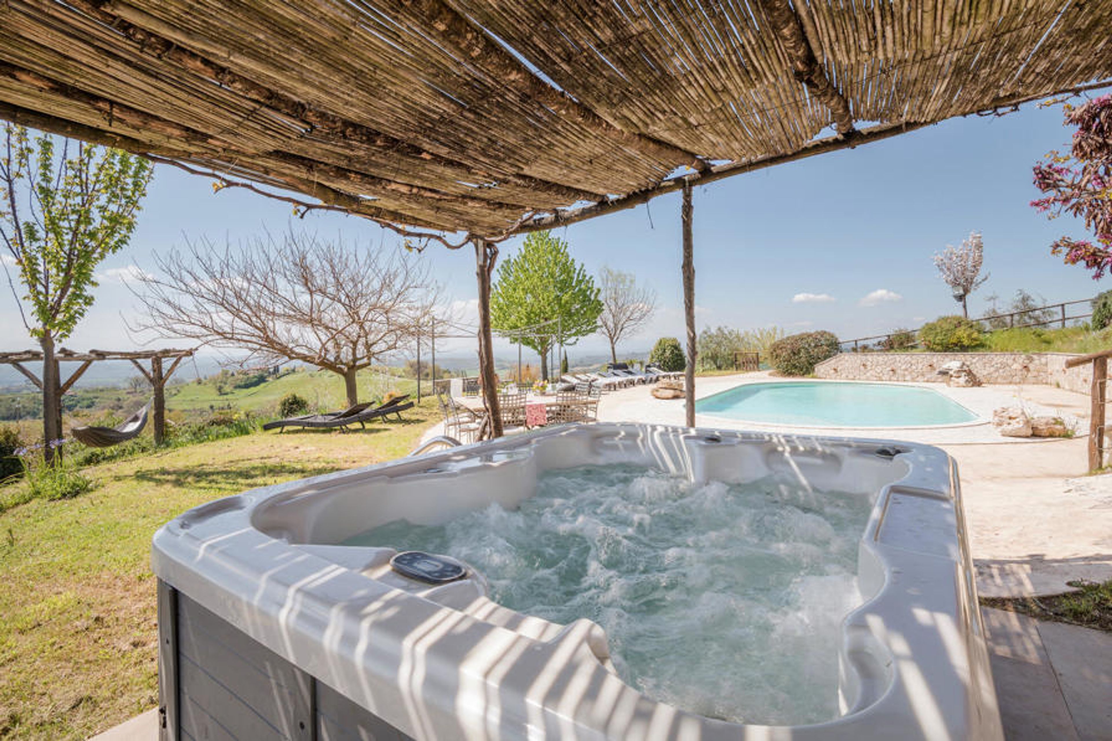 This beautiful holiday house with pool and panoramic whirlpool is located in the charming countryside of Tuscia, at about 69 km from Rome.