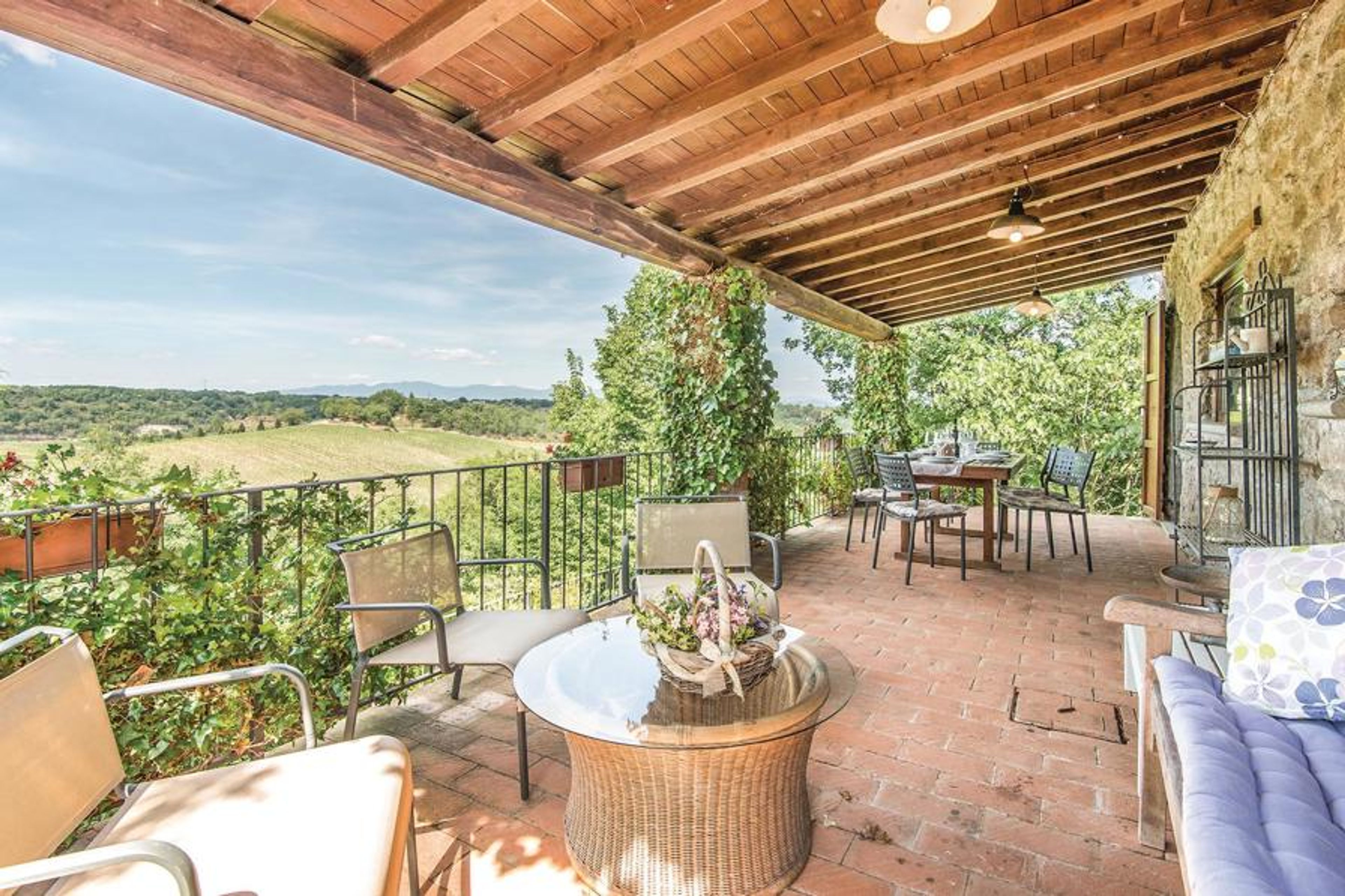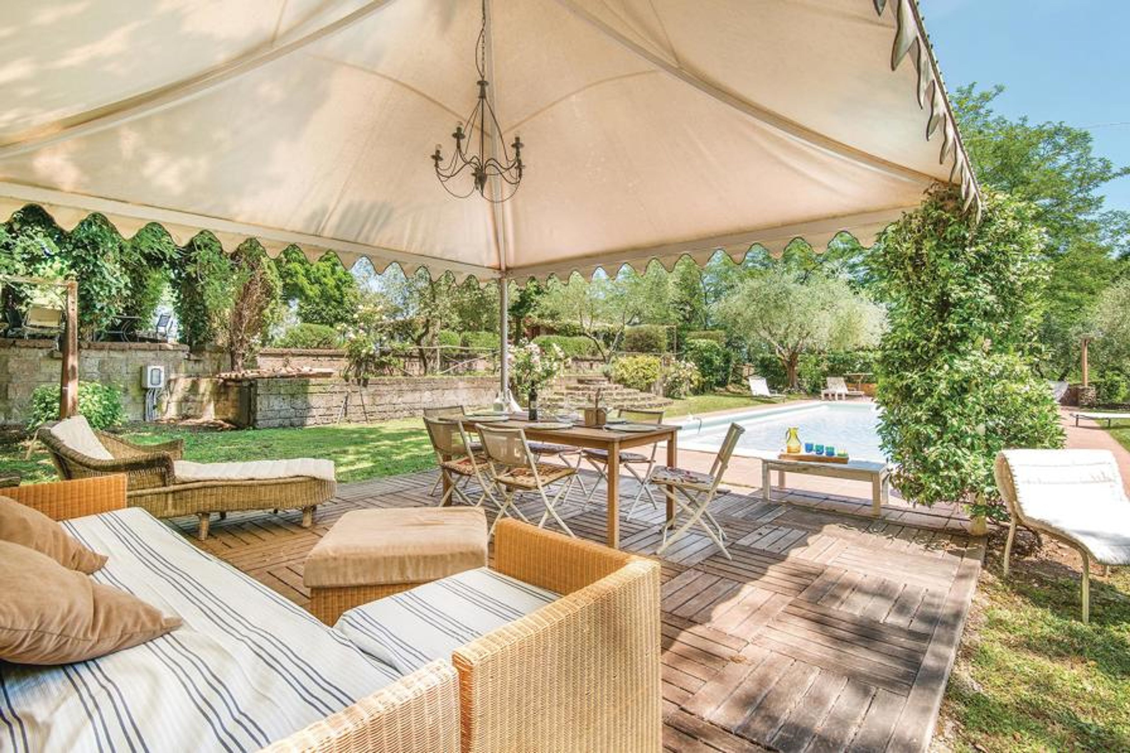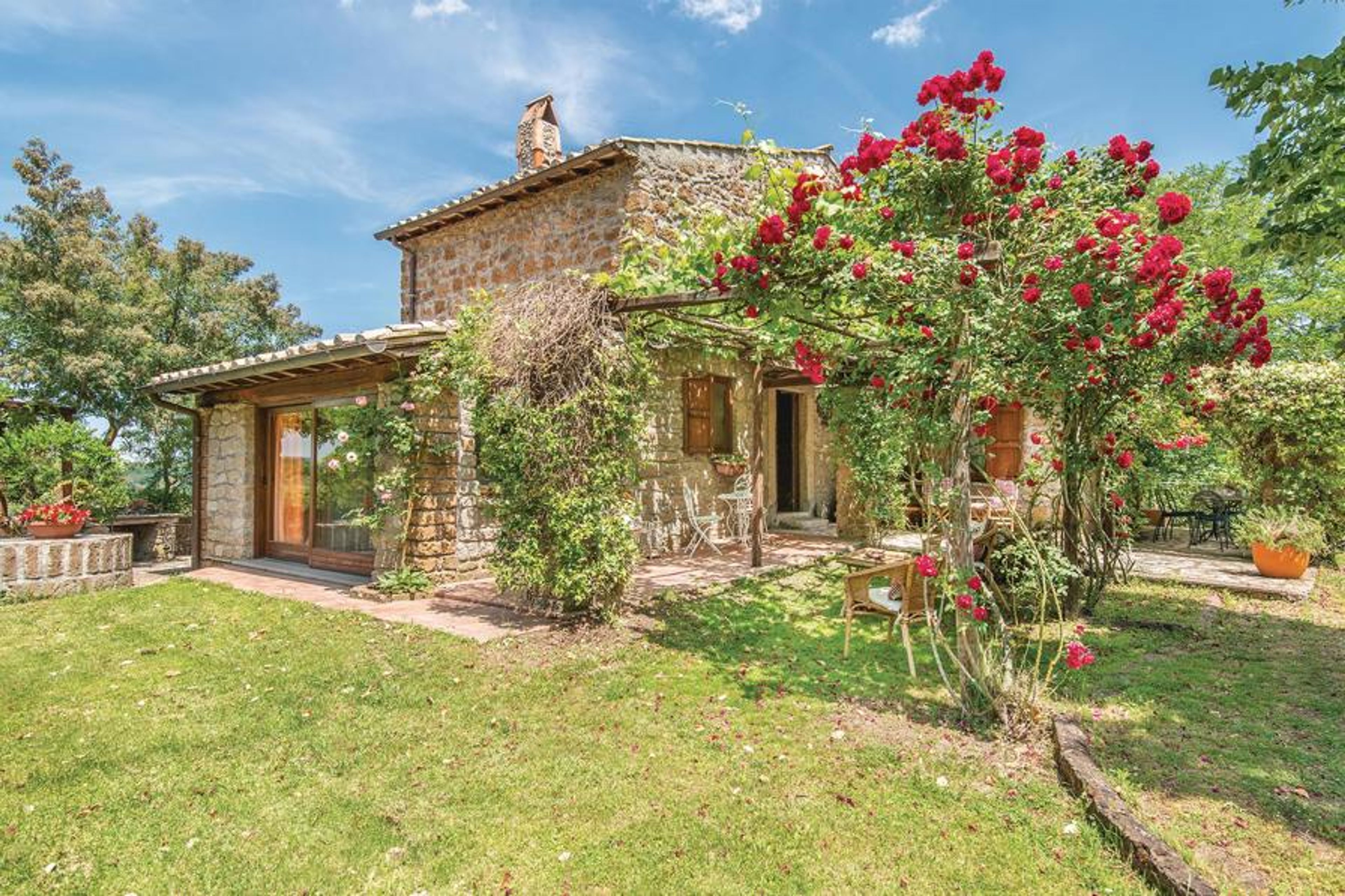 This well-kept and tastefully furnished country house was created thanks to the careful restoration of a Jesuit hermitage. The holiday home is located in the countryside 7 km from Viterbo and enjoys a dominant position with views over the valley below. The property is ideal for enjoying the tranquillity and scenic diversity of the beautiful Tuscia region. A veranda decorated with flowers according to the season invites you to dine al fresco, while the hot tub in front of the villa promises relaxing moments. In addition, the panoramic pool with gazebo and the spacious garden (3000 m²) with sunbathing lawn make this property an idyllic holiday home. Dogs are welcome, but please note that the holiday home is not fenced in. The last kilometre of the access road is a gravel road that is unsuitable for sports cars or buses. Distances: Vitorchiano 3 km, Viterbo with the "Terme dei Papi 7 km, Tuscania 22 km and the Etruscan towns of Tarquinia and Cerveteri 48 km. The lakes of Bolsena, Vico and Bracciano are within a radius of 22 km.