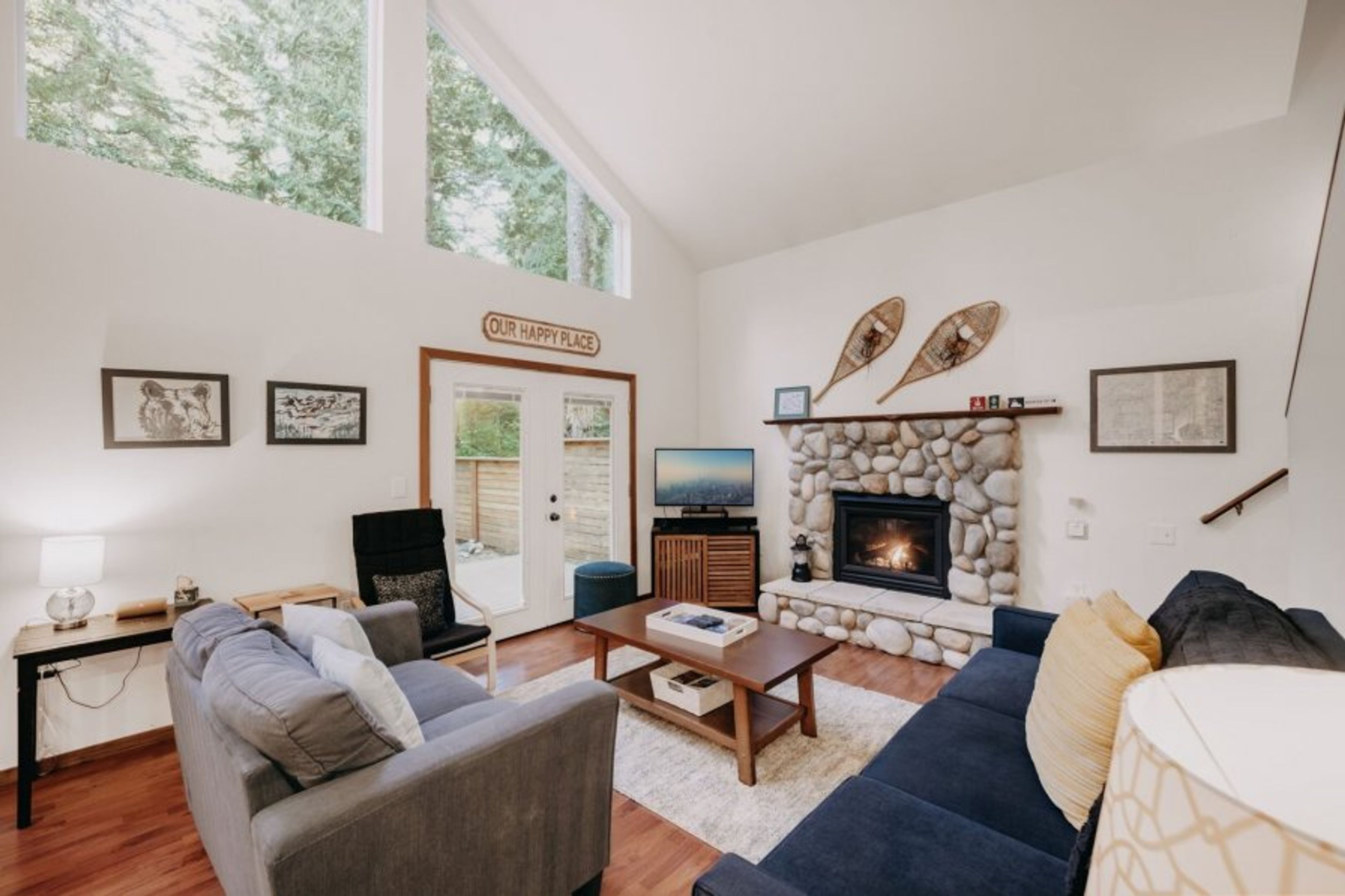 This 2-story, 3+ bedroom, 1 3/4-bath cabin has everything that you need, including air-conditioning. Entering through the side entrance into the mudroom, you’ll discover a stack washer and dryer and plenty of gear storage space. Proceeding a bit further, you’ll be very pleased with the well laid out full bath. Adjacent to that, there is one bedroom with 1-full sized bed, a dresser, and a padded bench. Just beyond the bedroom is a fully equipped kitchen with modern appliances, including a dishwasher, and a breakfast bar/prep station with two bar stools. Just beyond that is a dining area equipped with a table and seating for six, and an adjoining living area with comfy furnishings, a flat screen monitor, and a gas river rock fireplace to cozy up to. Ascending the staircase to the second floor reveals a small loft with 1-twin sized bed, a second bedroom with 1-full sized bed, a small closet and a chest of drawers, and a third bedroom with 1-twin-over-full- sized bunkbed (perfect for the kiddos!) and a chest-of-drawers. The two upper bedrooms are flanked by a ¾-bath. Just outside, you’ll discover a large wrapround platform deck (perfect for entertaining!) including a gas grill and an outdoor hot tub…all flanked by a partial privacy fence that provides an aura of seclusion. This WIFI equipped* and monitored family vacation property will sleep up to 8-persons (ENFORCED Maximum Occupancy!).
