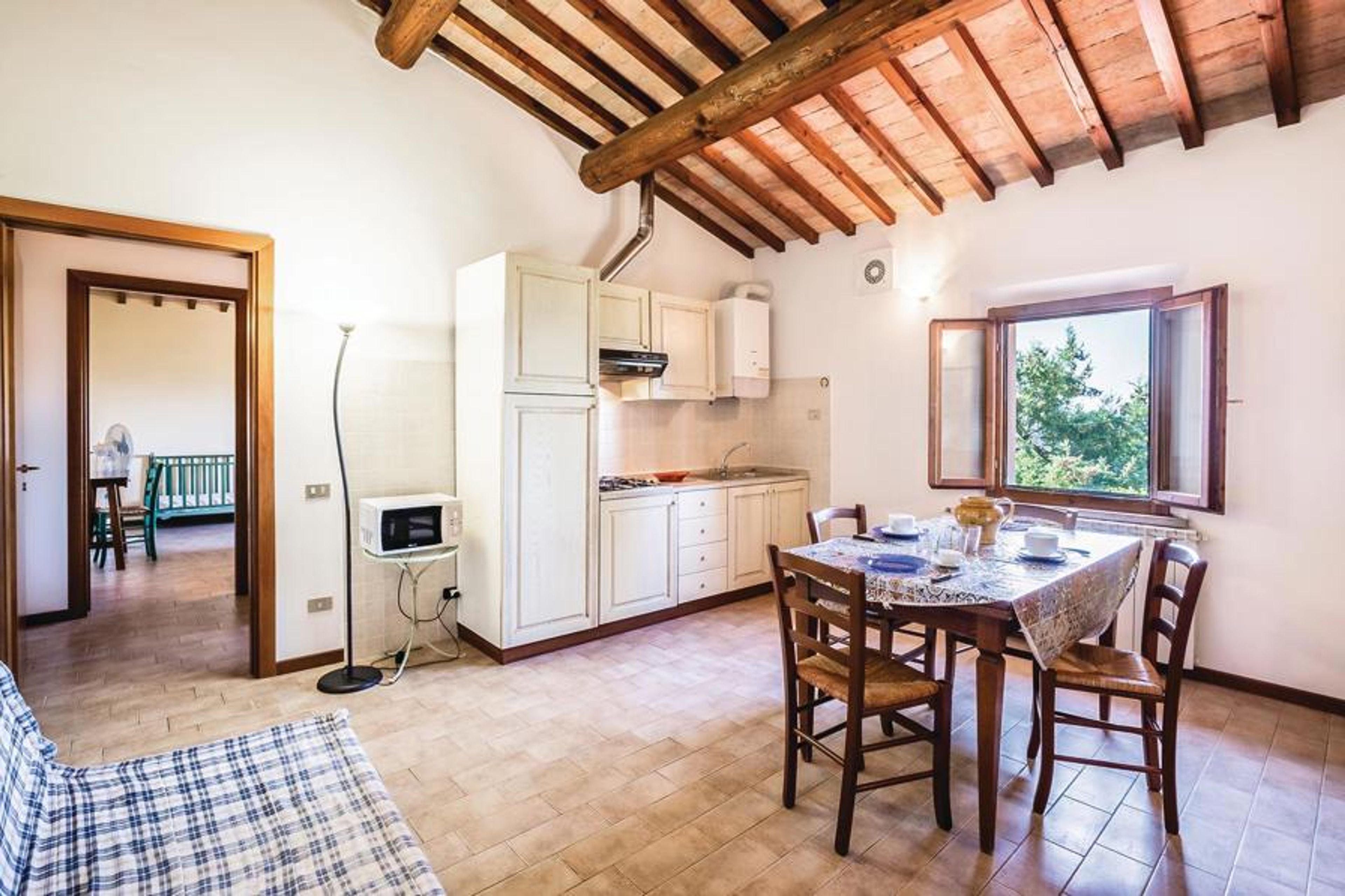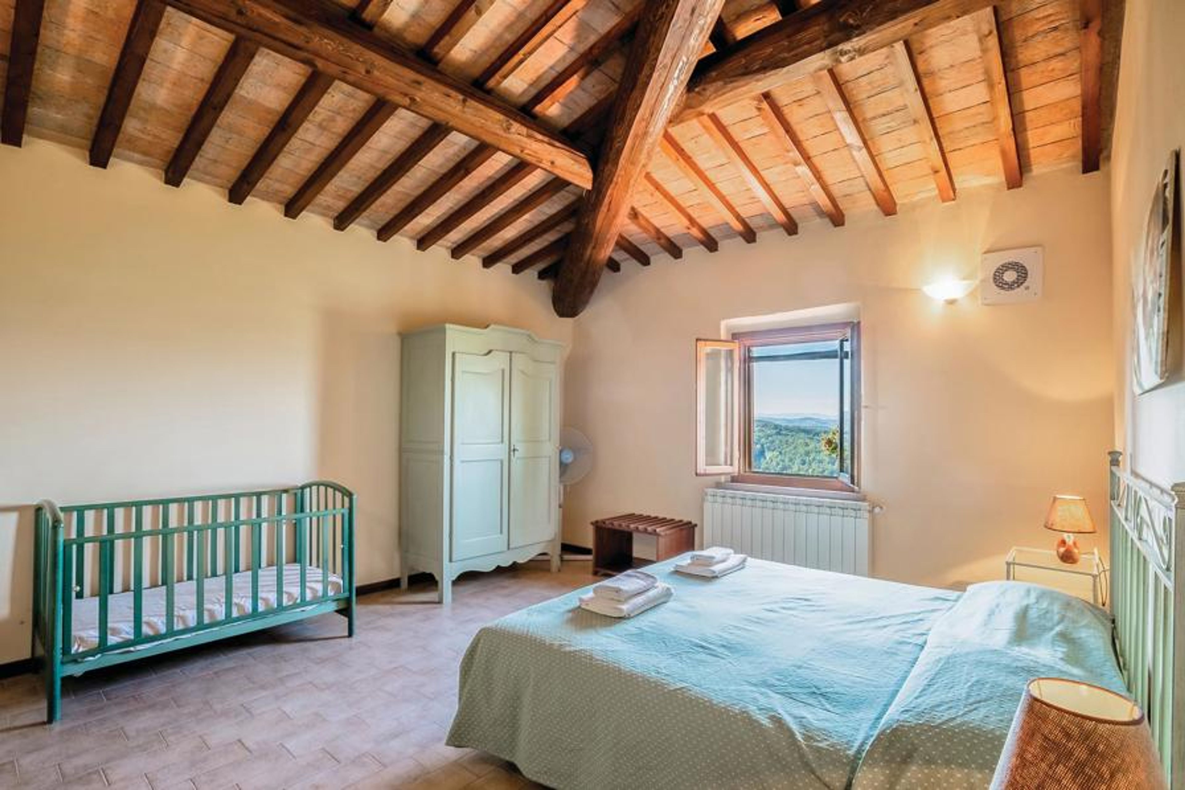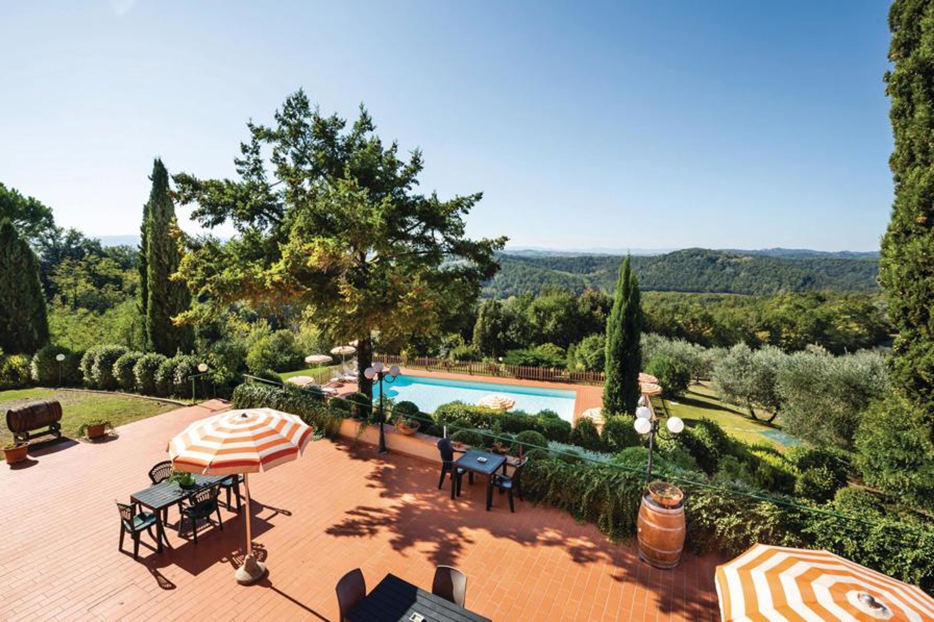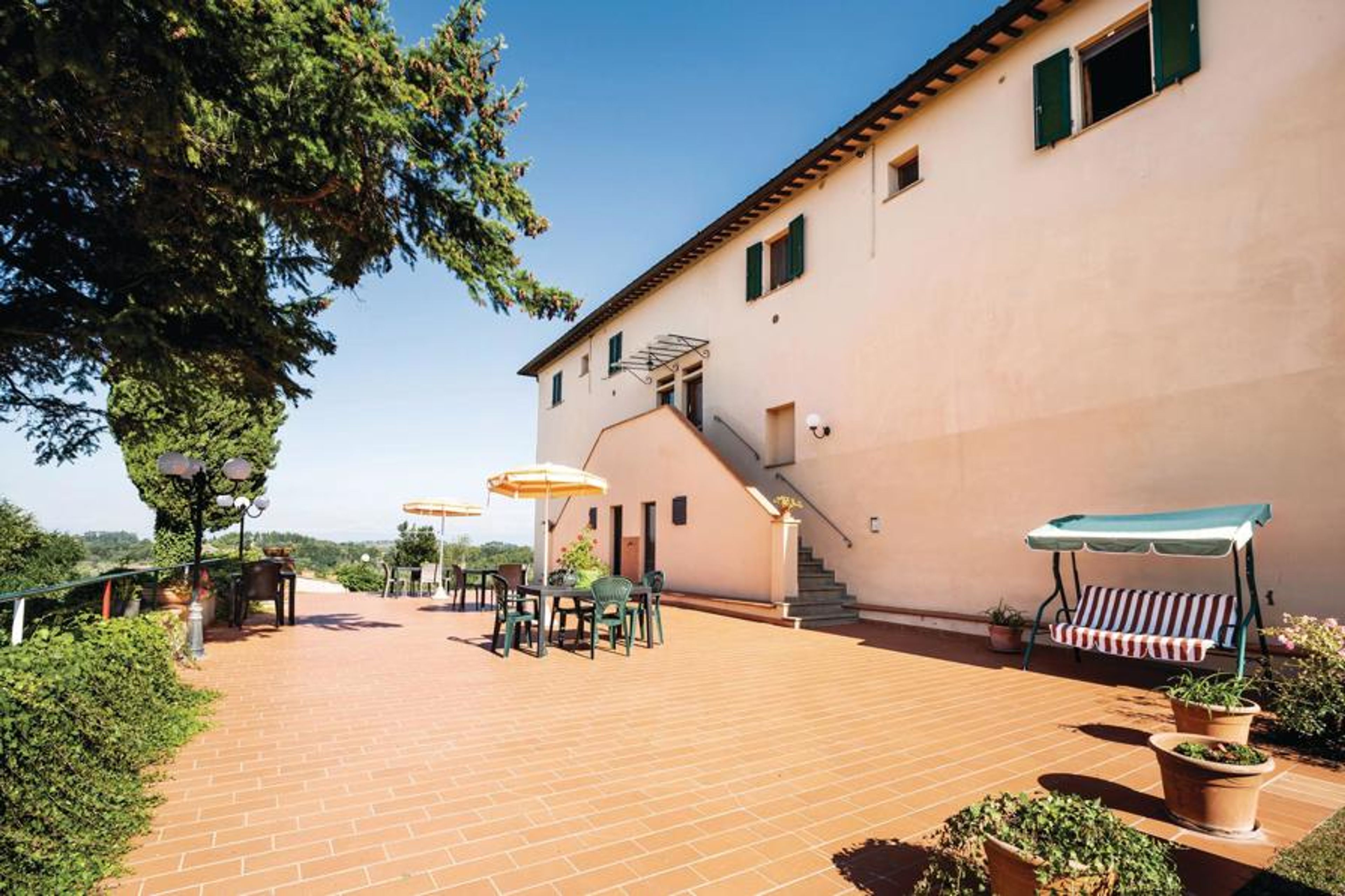 Holiday apartments in a farmhouse in a panoramic hilly position, not far from Castelnuovo d'Elsa, a small and pretty medieval borgo in the green hills between Florence and Siena. The property consists of an old farmhouse, completely restored and divided into 6 spacious and comfortable flats, located next to an ancient and still active wine cellar. The dominant position of the house offers a marvellous view over vineyards and olive groves, from which the products of the farm come. For communal use: large, fenced and equipped garden, beautiful panoramic pool. Favourable, central location close to the main tourist destinations in Tuscany: Siena 40 km, Florence 25 km, Pisa 30 km. The nearest golf course is 15 km away, the nearest riding stable 12 km. The natural environment here is very varied: To the north the hills of Chianti, to the south the Crete, bare or destined for grain cultivation, to the west "La Montagnola", mostly wooded.