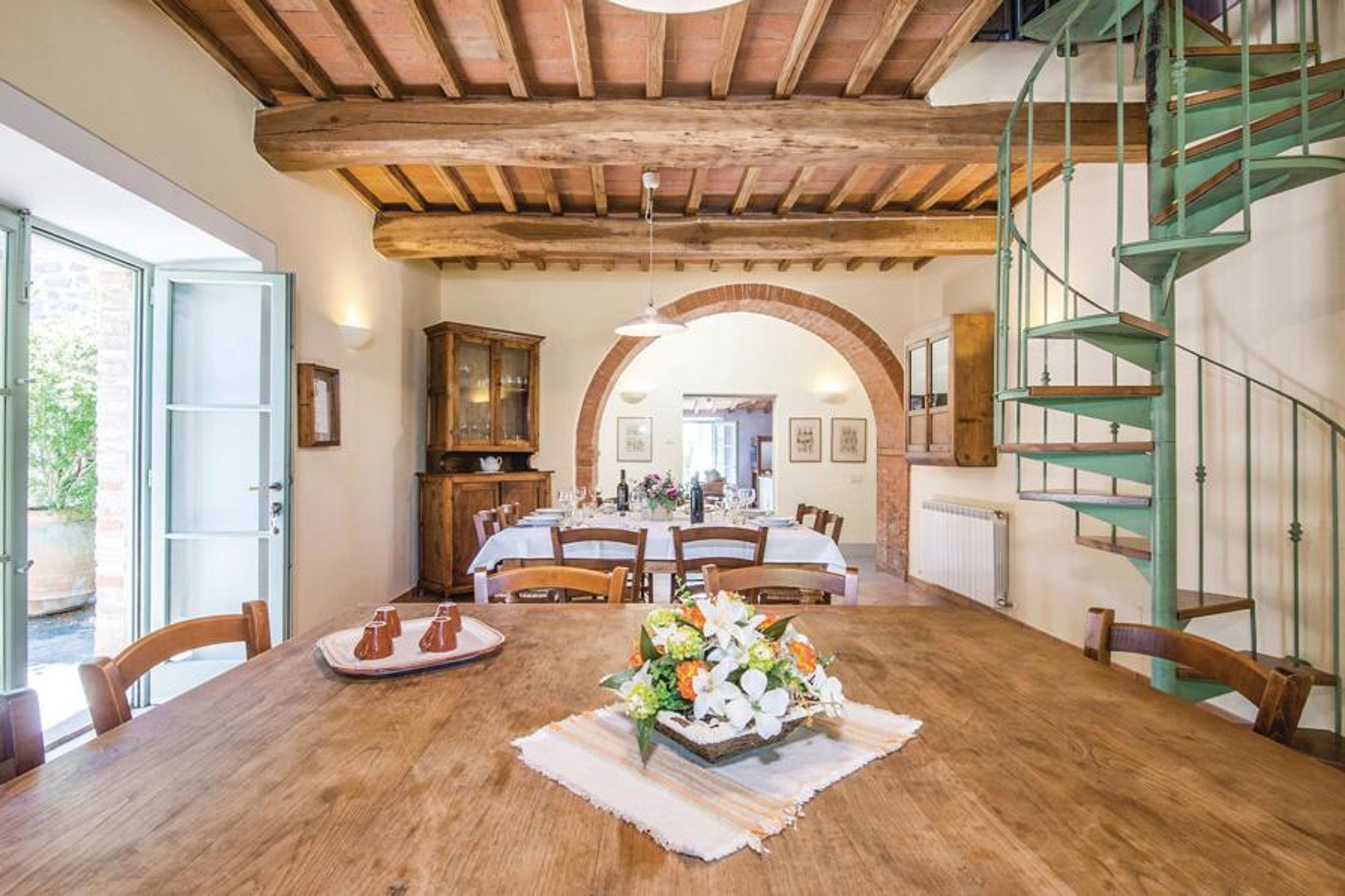 Authentic farmhouse for holidays dating back to 1600, 5 km from Sarteano and 10 km from Chianciano Terme. Originally a monastery, it now consists of three residential units with a private pool. The estate is situated at 600 metres above sea level and is surrounded by the beautiful landscape of the Val d'Orcia, overlooking the typical Crete Senesi as far as Monte Amiata: the view is marvellous. The two units are surrounded by a large green area and offer privacy and tranquillity, the swimming pool overlooking the Val d'Orcia completes this fabulous offer. It is an ideal destination for those who enjoy walking or cycling. The first building is spread over two levels: on the ground floor there is a large living area consisting of a living room with fireplace, a large dining room and a kitchen. On the first floor there are two bedrooms - one double and one twin - and a bathroom. The second building consists of a living room with fireplace, a small kitchen, two double bedrooms, a twin bedroom and a shared bathroom. There is also an annexe accessible via the courtyard with a twin bedroom and bathroom. Art lovers can explore an area rich in history and monuments from the Etruscans to the Renaissance, such as Chiusi, Pienza, Montepulciano and Montalcino, Siena (65 km) and Florence (130 km). For a relaxing day you can enjoy the thermal waters of Chianciano Terme or San Casciano dei Bagni. Round off your eventful days with a dish of the local traditional cuisine - the motto here is: mangiare bene e sano, in German: eat well and healthy - accompanied by wines such as Brunello or Nobile di Montepulciano. For all shopping enthusiasts, there is a famous outlet centre 35 km away.