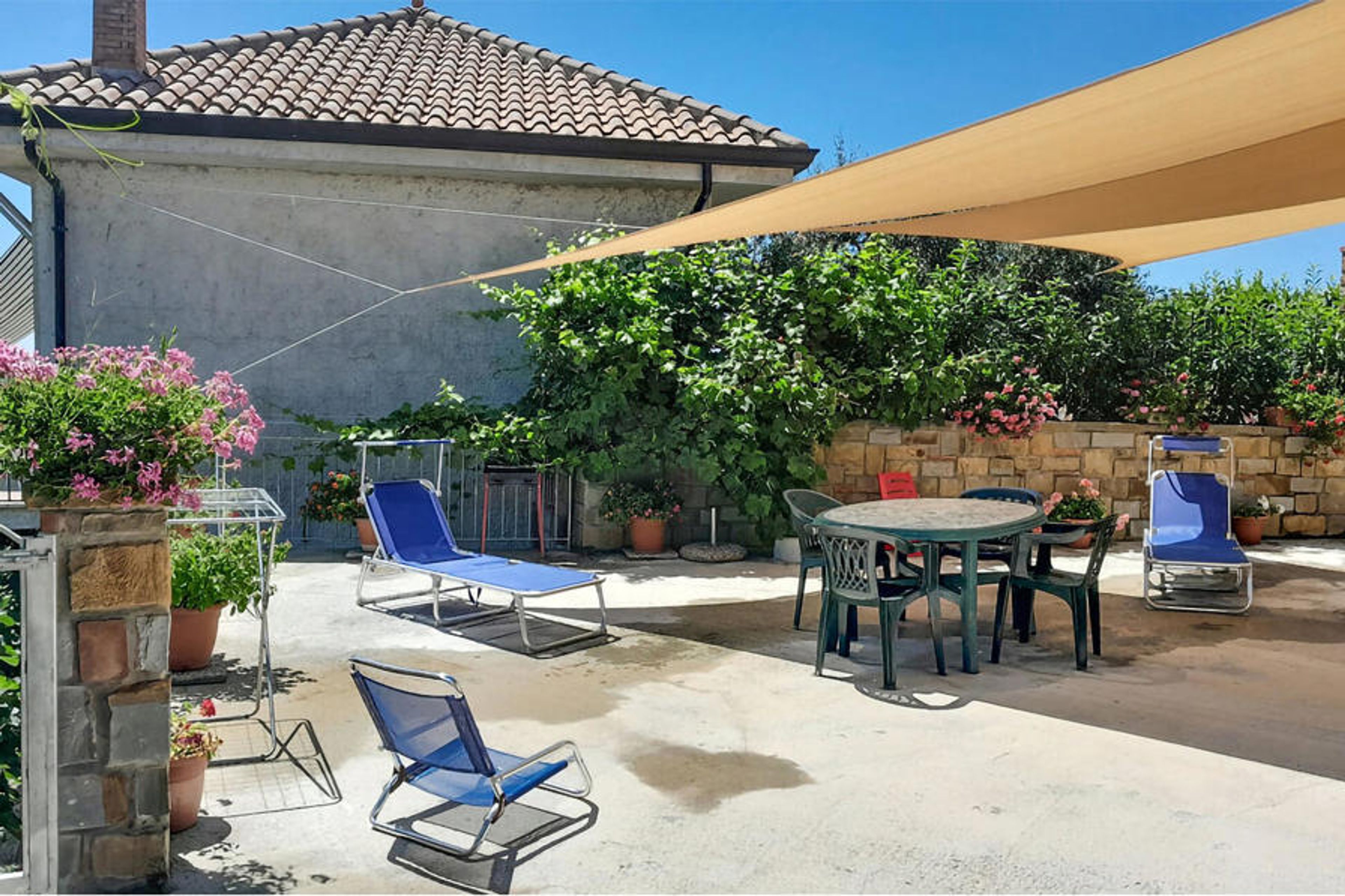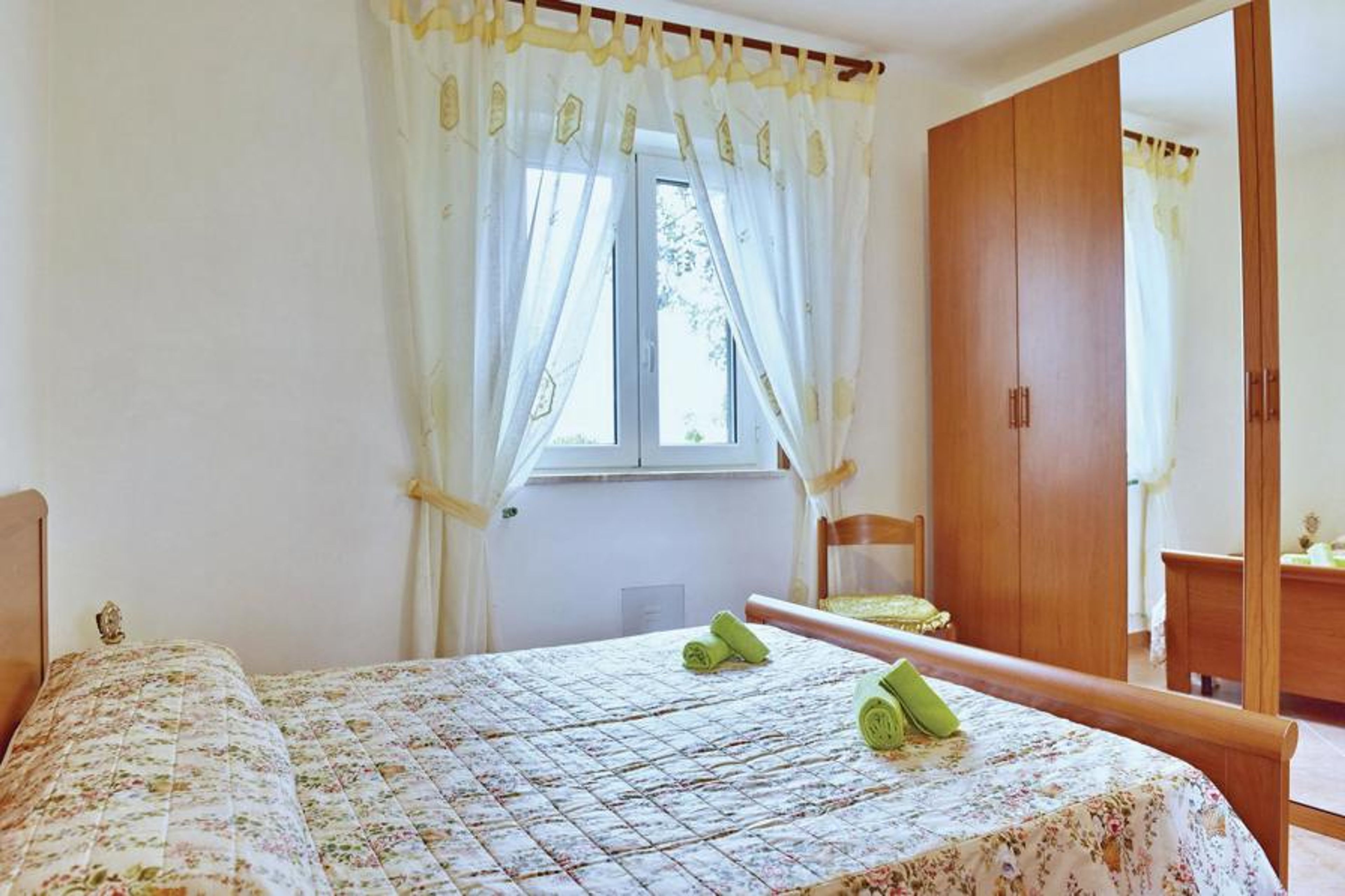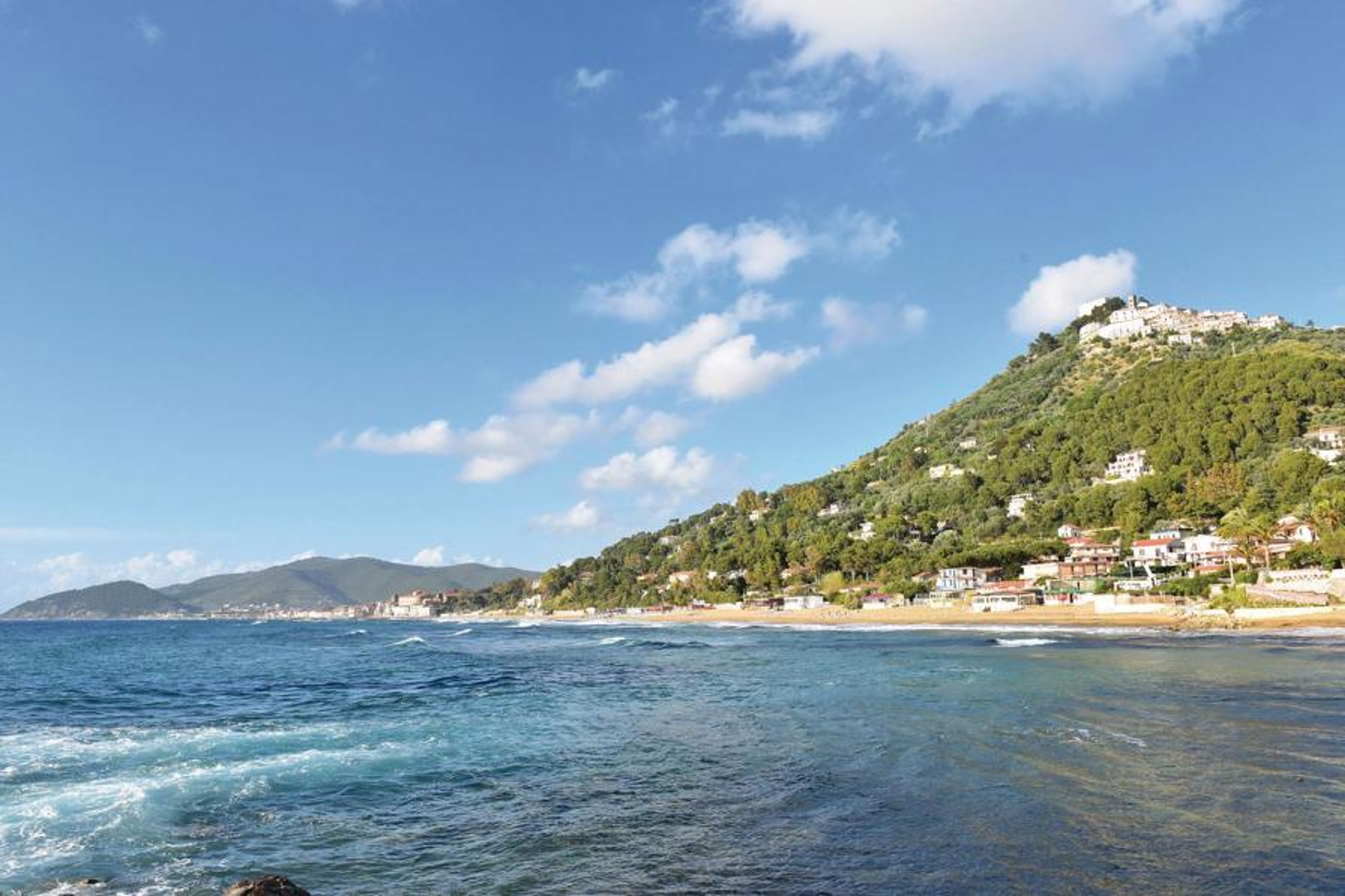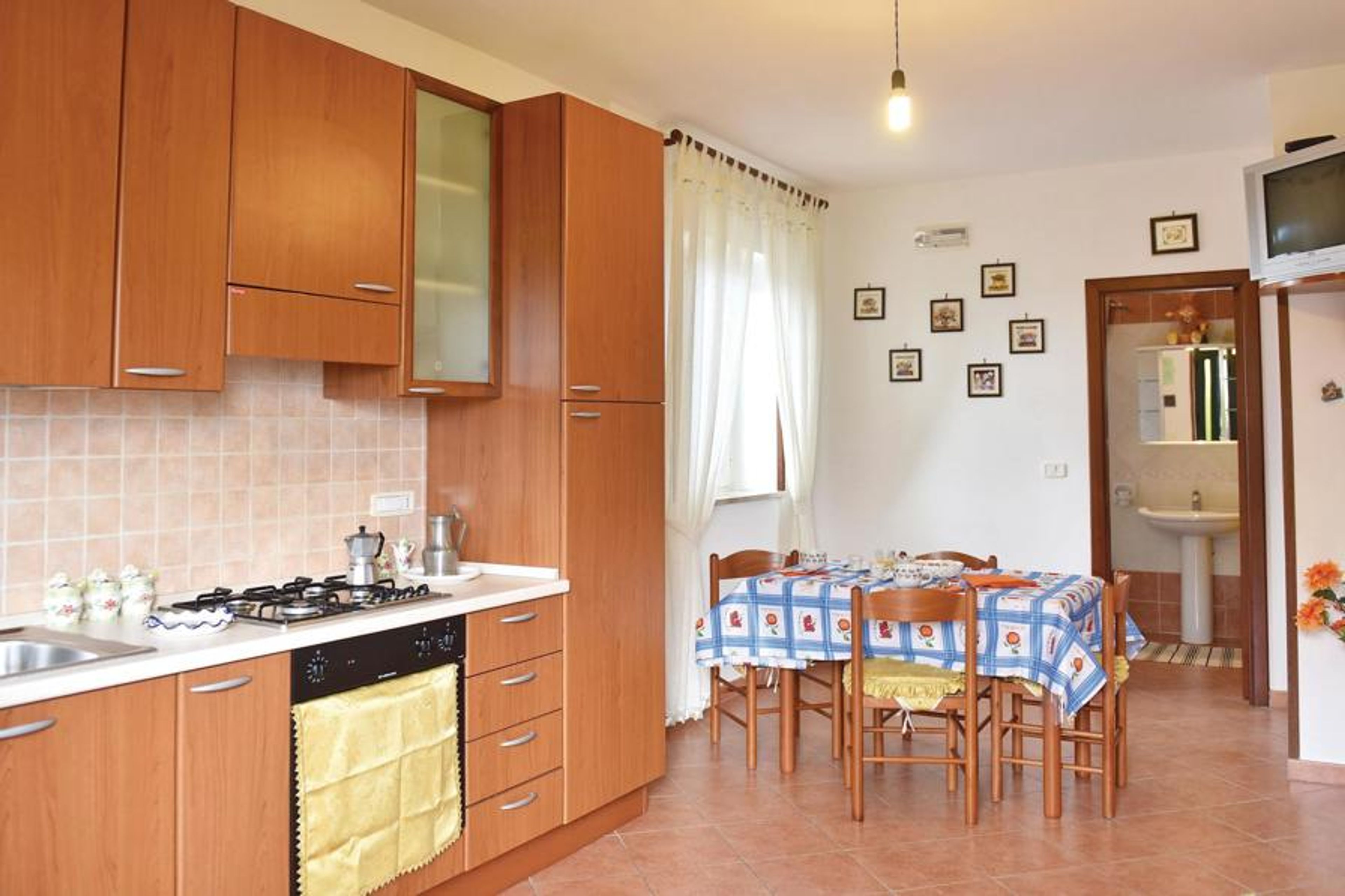 Attractively furnished vacation apartment on the first floor of a small two-family house in the hinterland of the popular seaside resort of Santa Maria di Castellabate. The apartment is ideal for a small family with one or two children and has an equipped outdoor seating area for your vacation meals. The pretty seaside town of Santa Maria di Castellabate offers wide free and equipped sandy beaches, a beautiful promenade right in the town, nice coffee bars and excellent restaurants where you can taste the varied specialties and the excellent wines of this region. Don't miss a visit to the ancient hamlet called Castellabate (UNESCO World Heritage Site), located about 280 meters above sea level, which dominates the entire bay of Santa Maria di Castellabate. This medieval mountain village was mentioned for the 1st mail in 1123, still today, as in the past, it is a labyrinth of ancient little houses, romantic alleys, stairways, small squares with breathtaking panoramas and hidden trattorias or small bars. The "piazzetta", or village square, is the meeting place of both the inhabitants of the village and some vacationers; here, too, you can enjoy a wonderful view of the surrounding hills, whereas the wide view of the sea from the Belvedere di San Costabile completely captivates the onlookers, especially during sunset. The Cilento is located in the Campania region, in southern Italy, between Paestum in the north, Sapri in the south and the Vallo di Diano in the east, with about 100 km of coastline, mountains and 200 small, mostly medieval villages. For those who love culture, we recommend a visit to the majestic temples of Paestum, in the north of Cilento. The wide staircase with its "scaloni" and the imposing 16th century city gate, which lead to the medieval old town of the small village of Agropoli, where you can enjoy an overwhelming view of the entire coast from the fortifications of the old town center, are also worth seeing. In the same building we also offer the apartment IKC387 and nearby the apartment IKC170 and the cottage IKC259.