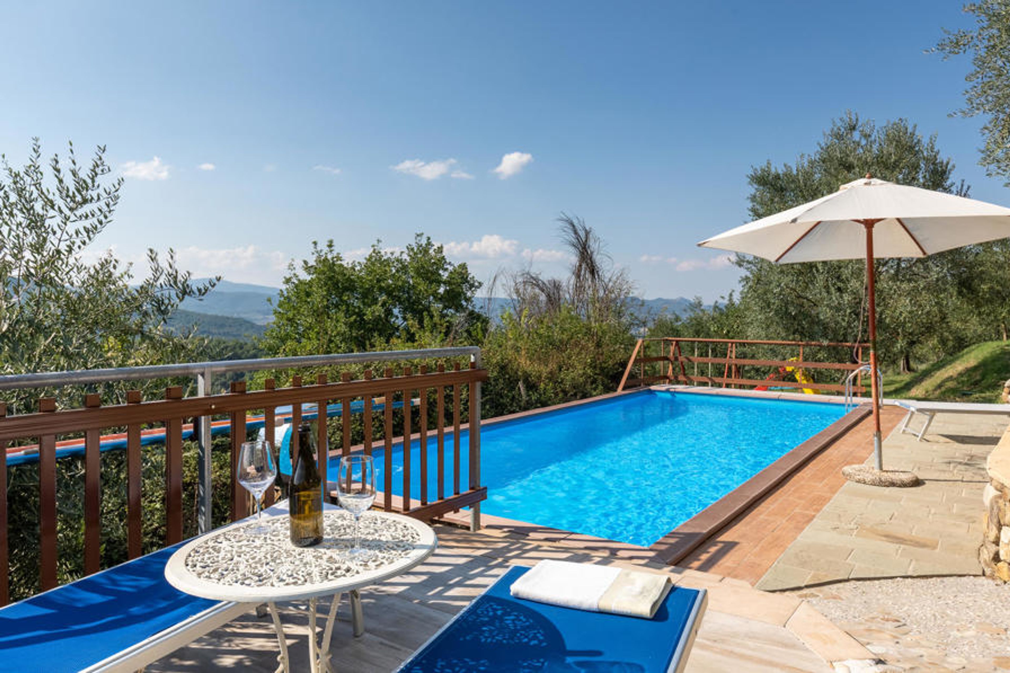 Beautiful vacation home near the small hamlet of Calzolaro, 5 km from Trestina. Here you will occupy a pleasant country house with garden and pool in a quiet panoramic position. This vacation home is located in the hills above the Tiber Valley, where Umbria and Tuscany border. It is comfortably furnished in the rustic style of the area. From the central living room you enter the covered, equipped terrace overlooking the valley; a barbecue invites you to barbecue. Large natural plot with pool and sun terrace, play area for children with swing and slide, table soccer and table tennis. The location is at the same time convenient for excursions to the beautiful Tuscan and Umbrian towns in the area: 15 km Città di Castello with thermal baths, 30 km the Etruscan city of Cortona. Within an hour's drive easily reachable: Arezzo, Gubbio, Perugia, Assisi and Lake Trasimeno. Groceries in the hamlet below Calzolaro (2 km); 8 km the medieval town of Umbertide with stores of all kinds, restaurants, bars and colorful weekly market. From Trestina train connection directly to Perugia.