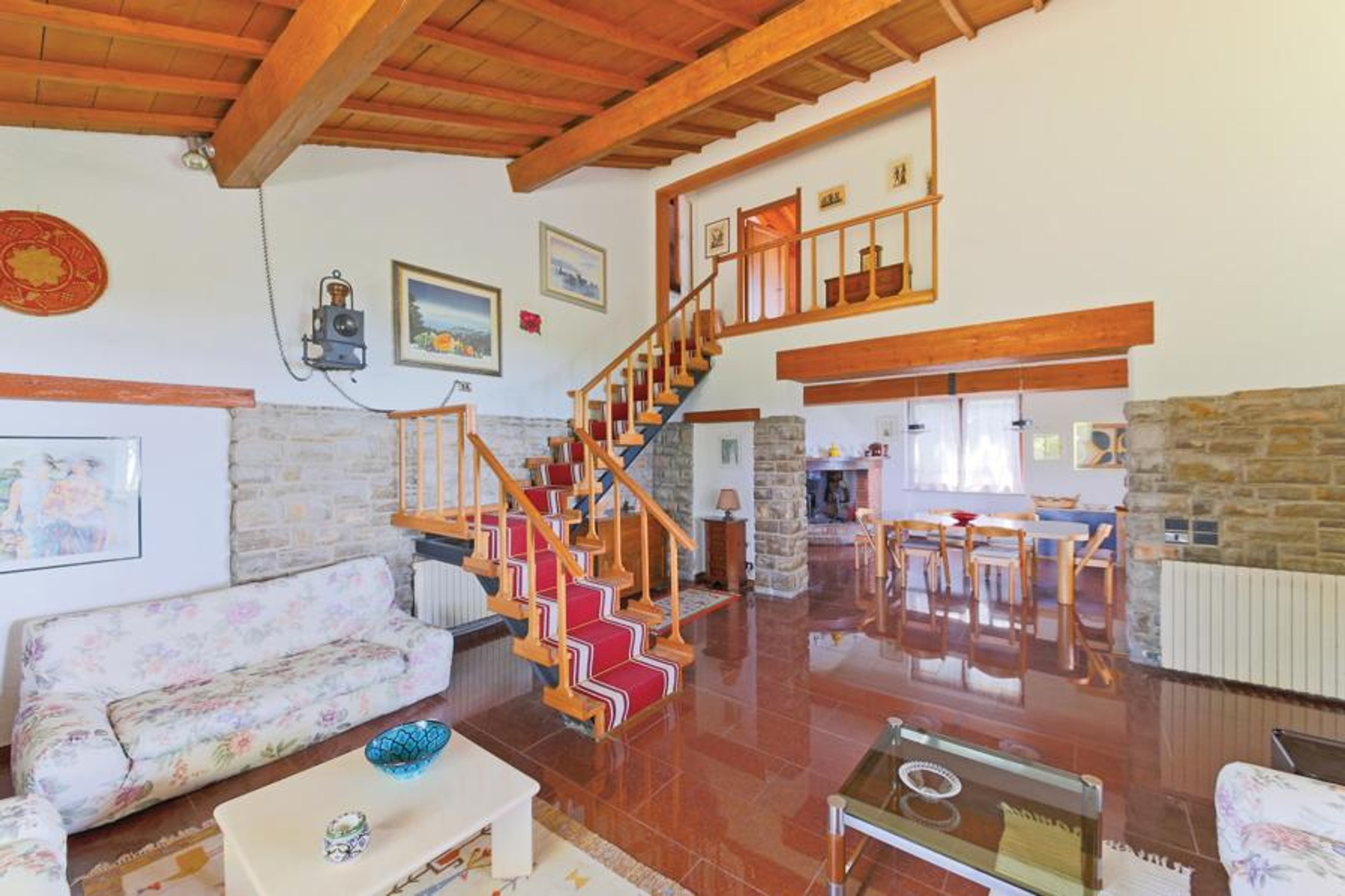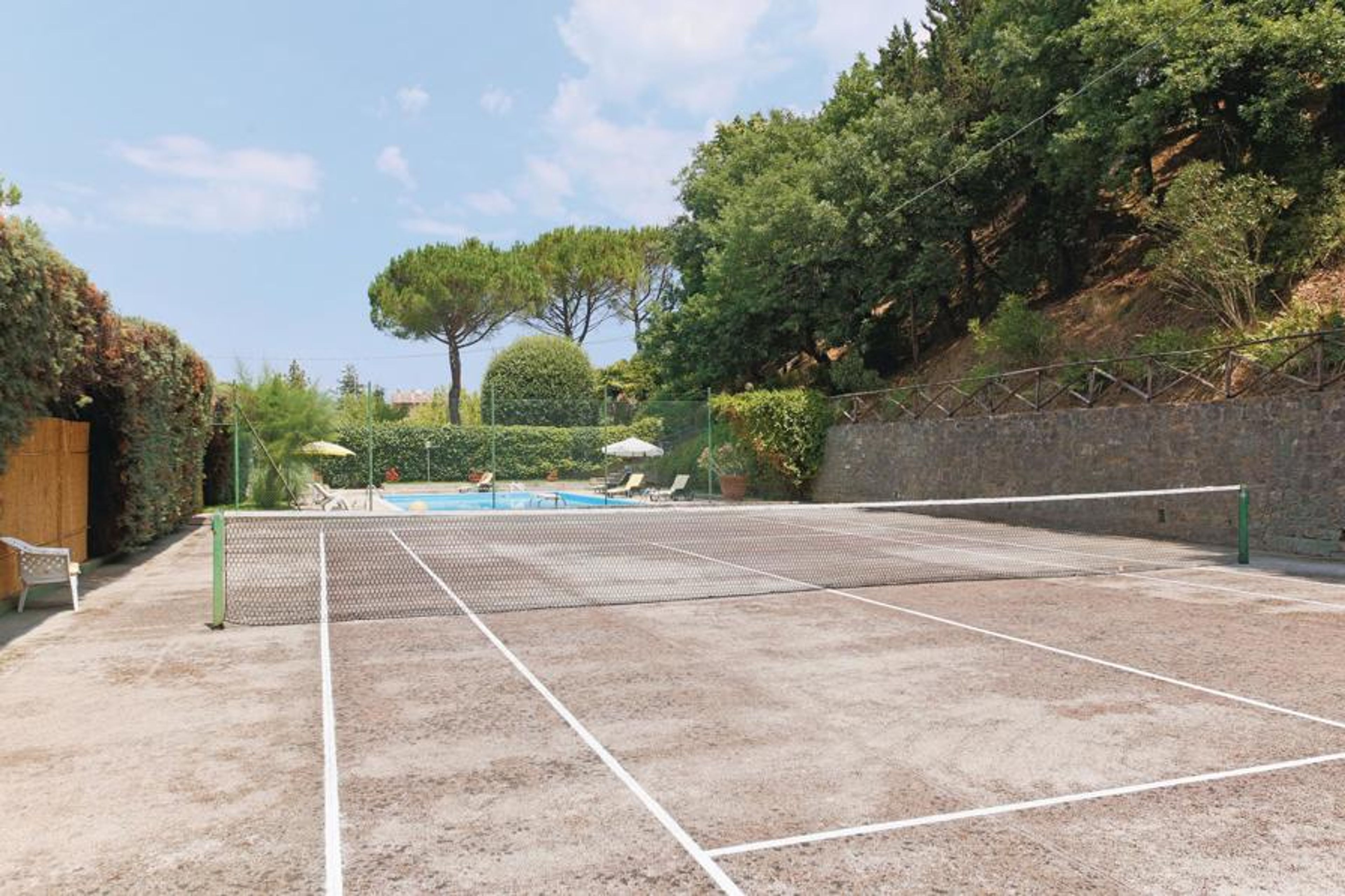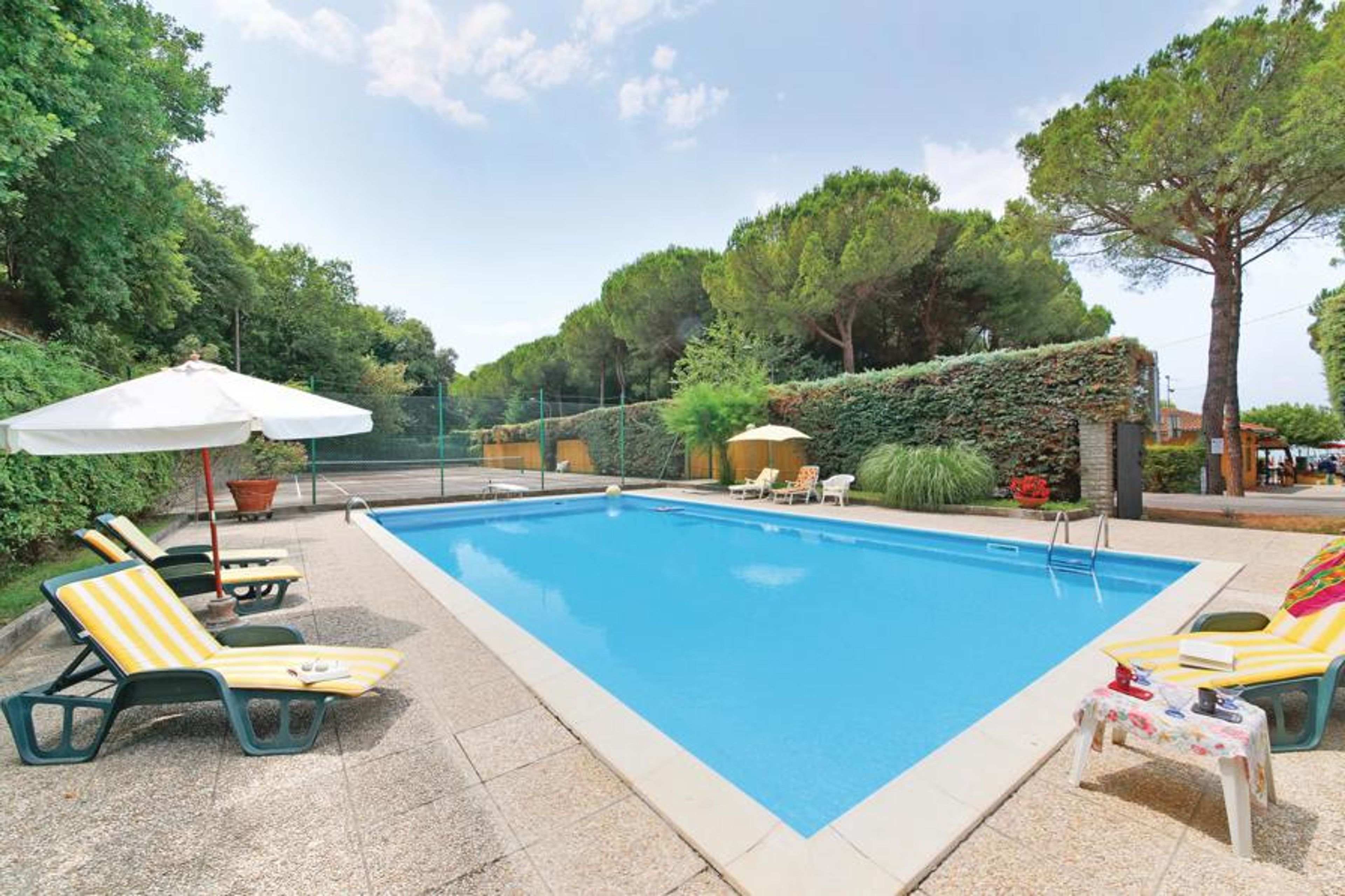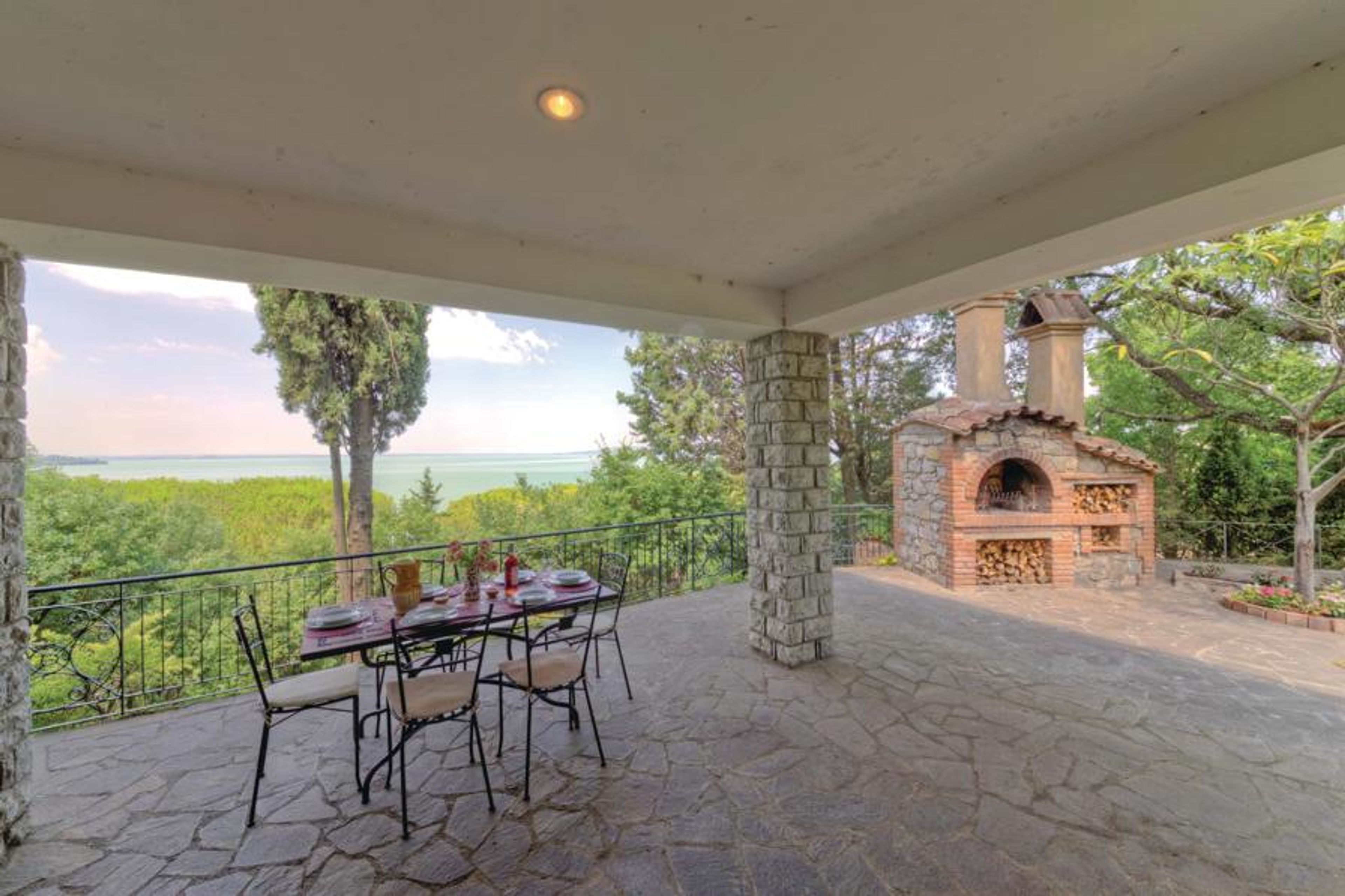This attractive vacation home is located in the small village of San Feliciano on the beautiful Lake Trasimeno, only about 300 meters from the lakeshore, and it has its own pool and tennis court. On the first floor is the spacious living area with fireplace and terraces and on the 1st floor the bedrooms with balconies: from everywhere you can enjoy a wonderful view of Lake Trasimeno. Your vacation home is situated on a hillside property with a small oak forest, where you will find shady places even in high summer. Various stairs lead through the wood down to the pool and the common tennis court. In addition to the beautiful lake, where you will find equipped beaches everywhere, it is worth visiting the fascinating small art cities of Perugia, Arezzo and Siena, all with a variety of sights, art treasures and museums, and where it is also worth a stroll through the small characteristic streets and across the piazza. Near the house there is a campsite with a music bar. A road runs nearby.
