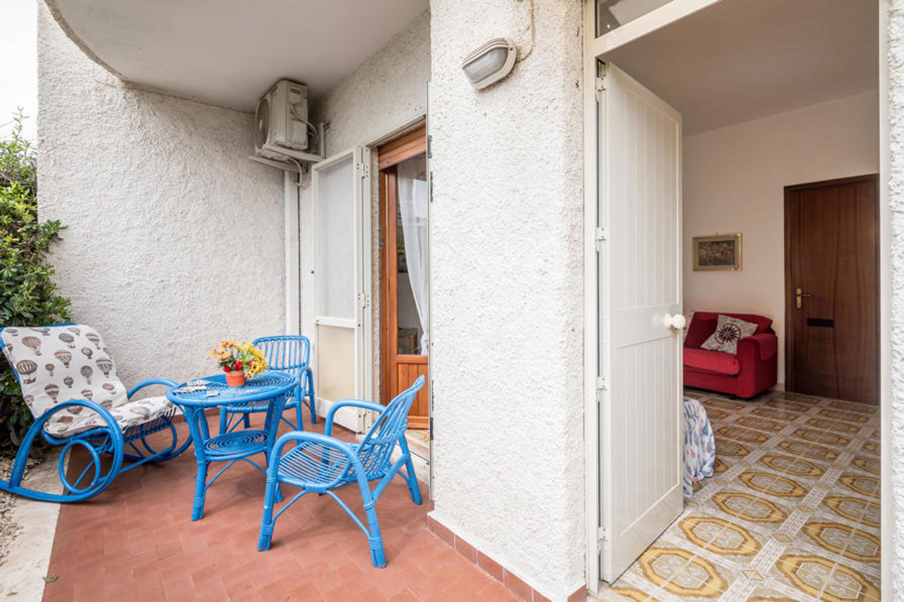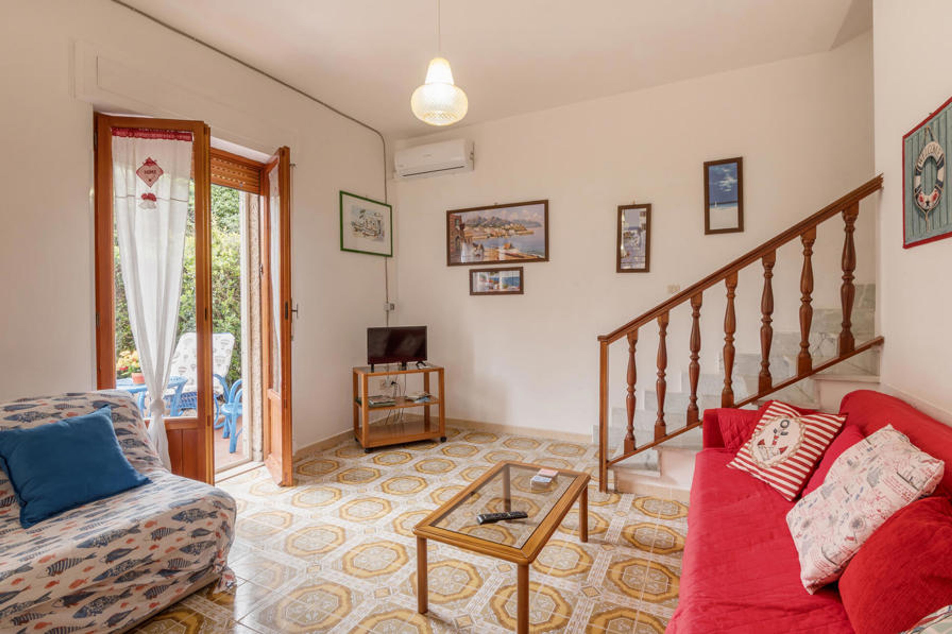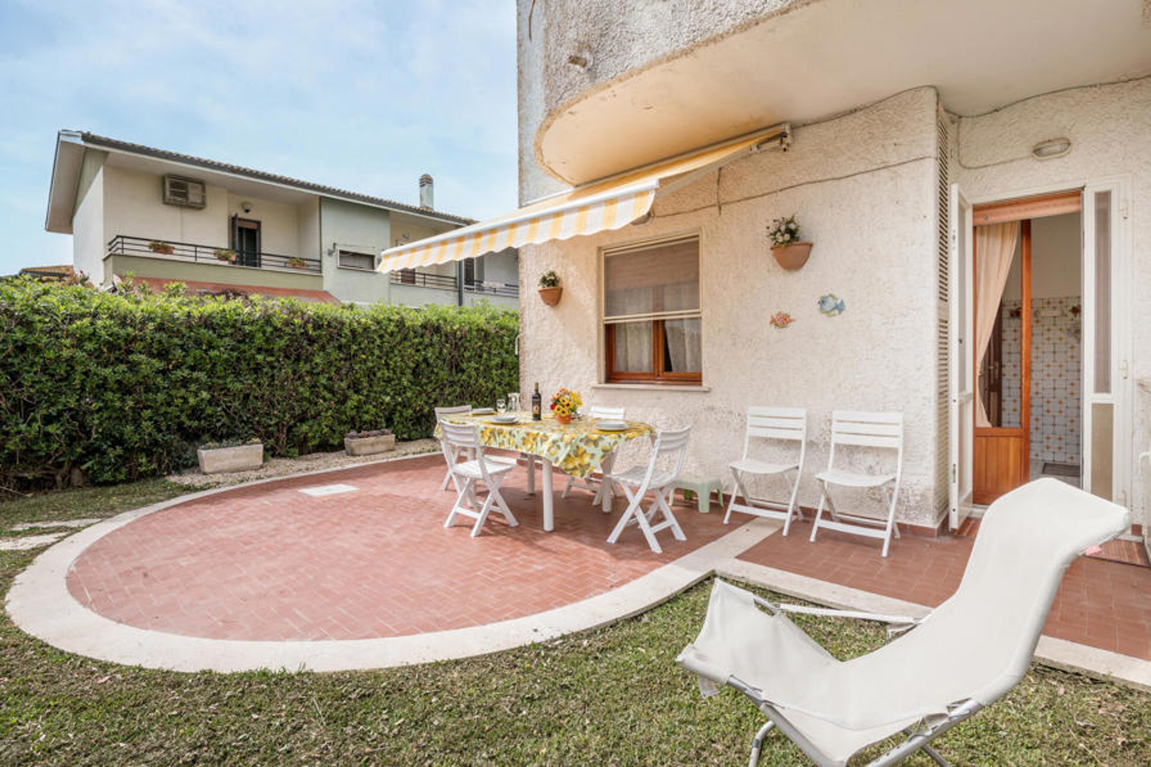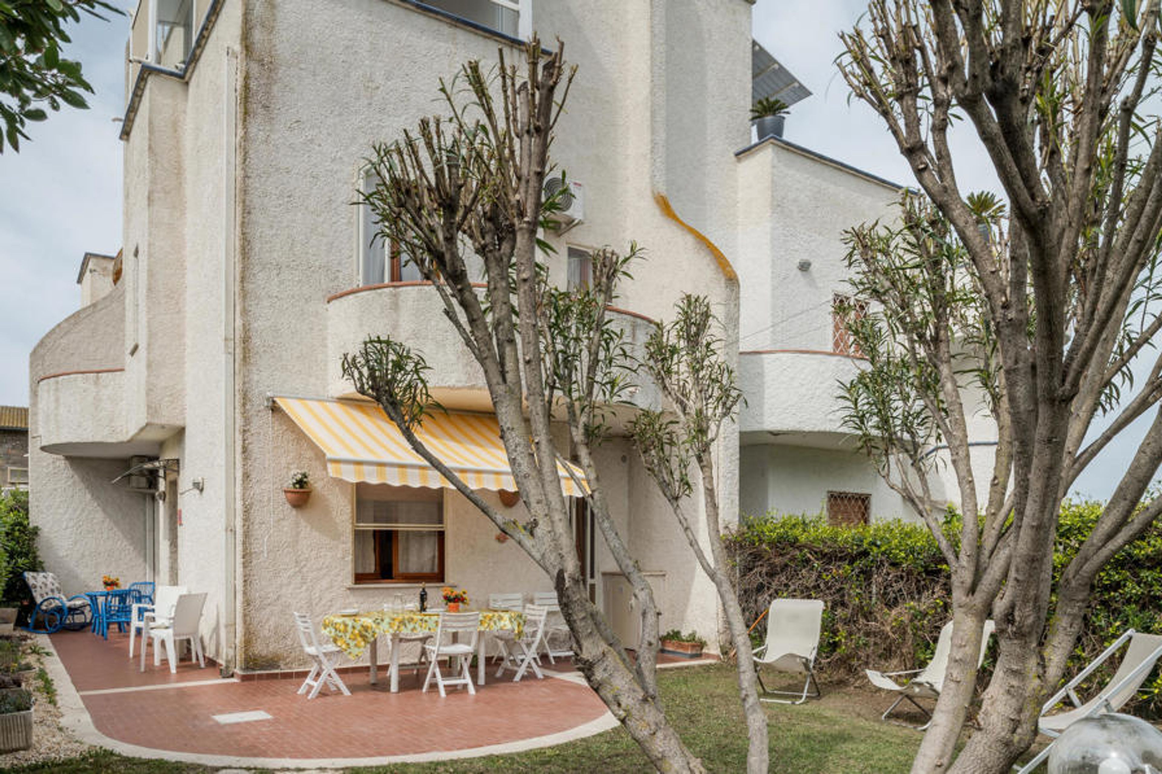 Large part of a semi-detached house with private garden, just 50 metres from the beach of Lido di Tarquinia. In the garden there is a comfortable shaded veranda for outdoor dining, a barbecue and sun loungers, ideal for relaxing after a beautiful day at the beach. The sandy beach is just a few steps away and offers the possibility to rent parasols (for a fee). Part of the beach is also equipped for the disabled and 300 metres away there is also a section of beach dedicated to our 4-legged friends. Behind the house there is a pine forest and a large public car park. Tarquinia and its Etruscan museum is 7.6 km away. It is the centre of southern Etruria, an outstanding symbol of Etruscan art, with a fascinating medieval old town and important archaeological sites, which have been declared a UNESCO World Heritage Site. For a day trip to Rome: trains depart from the railway station 3 km away and arrive in the capital in 45 minutes. The location is strategically ideal for visiting the Tuscia region in the northern part of what is now Lazio. Civitavecchia and its harbour are 21 km away, Viterbo with its thermal baths Terme dei Papi is 51 km away. The accommodation is arranged on two levels: Ground floor with large living room with sofa bed (1 person) and dining area, kitchen with direct access to the garden, WC. First floor: double bedroom with access to the balcony with sea view, double bedroom with balcony and view of the pine forest, bedroom with bunk bed with balcony and view of the pine forest, bathroom with shower. All rooms have mosquito nets.