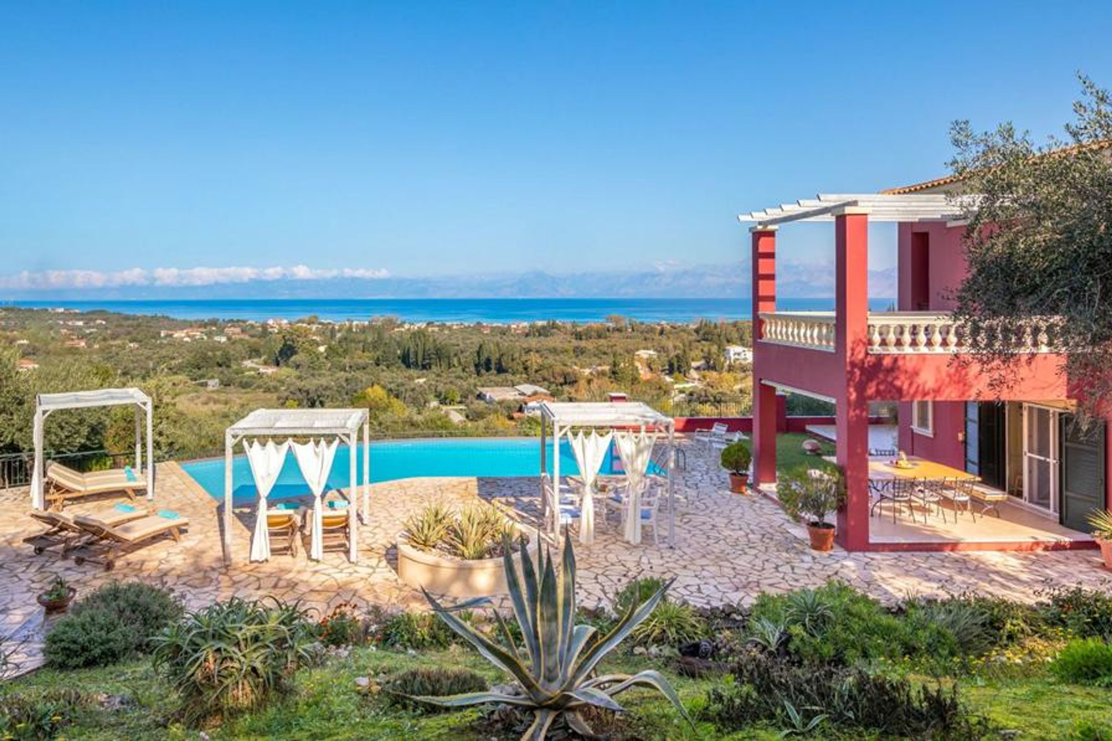 Enjoying breathtaking views over the Ionian sea and in a quiet and intimate location, the property is particularly suitable for large groups. Equipped with a plethora of child-friendly facilities such as toys and a table tennis table, as well as impressive outside grounds, the villa is perfect for families. The bright red-coloured villa is surrounded by lush Mediterranean gardens, ideal for spending long days out splashing about in the beautiful pool, soaking up the sun in the spacious terrace and enjoying gourmet meals in the lovely barbecue area.