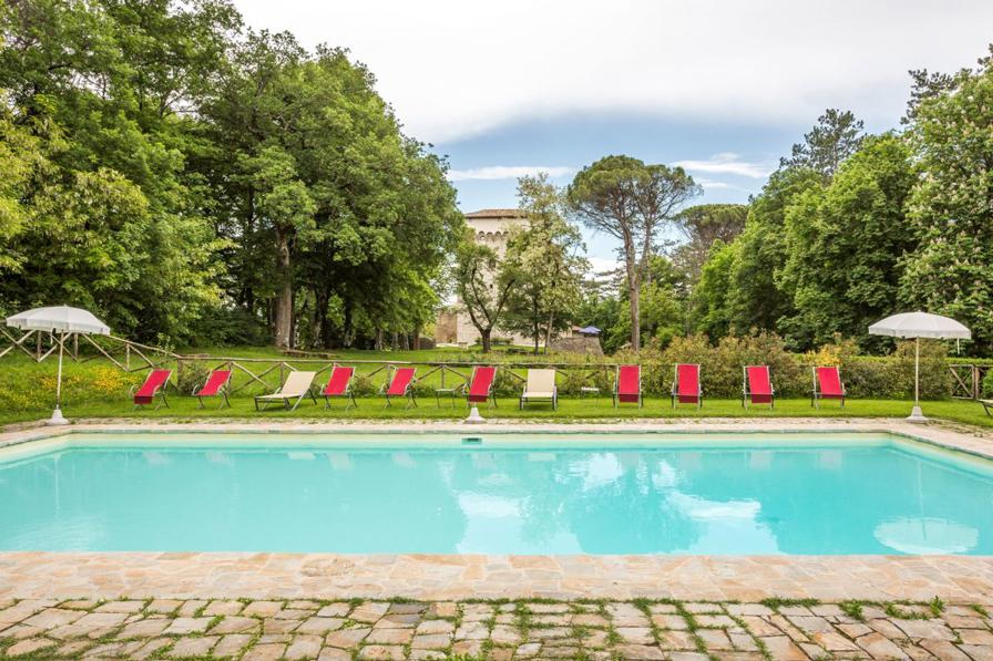 Set within a 1400-acre estate, the castle is surrounded by a lovely park with ancient trees, wide lawns, and a scenic pool that overlooks the rolling Umbrian hills. The estate is crisscrossed with marked walking paths, allowing guests to explore the peaceful countryside at their leisure. In the right season, guests can also participate in truffle hunting, guided by local experts.