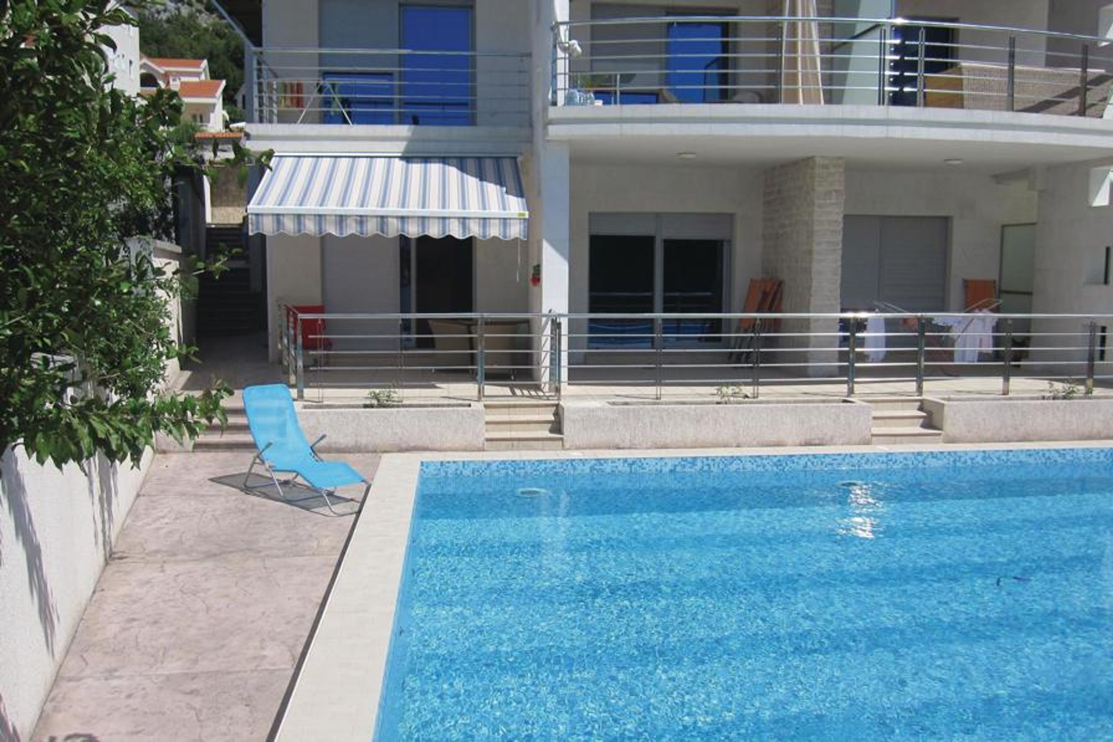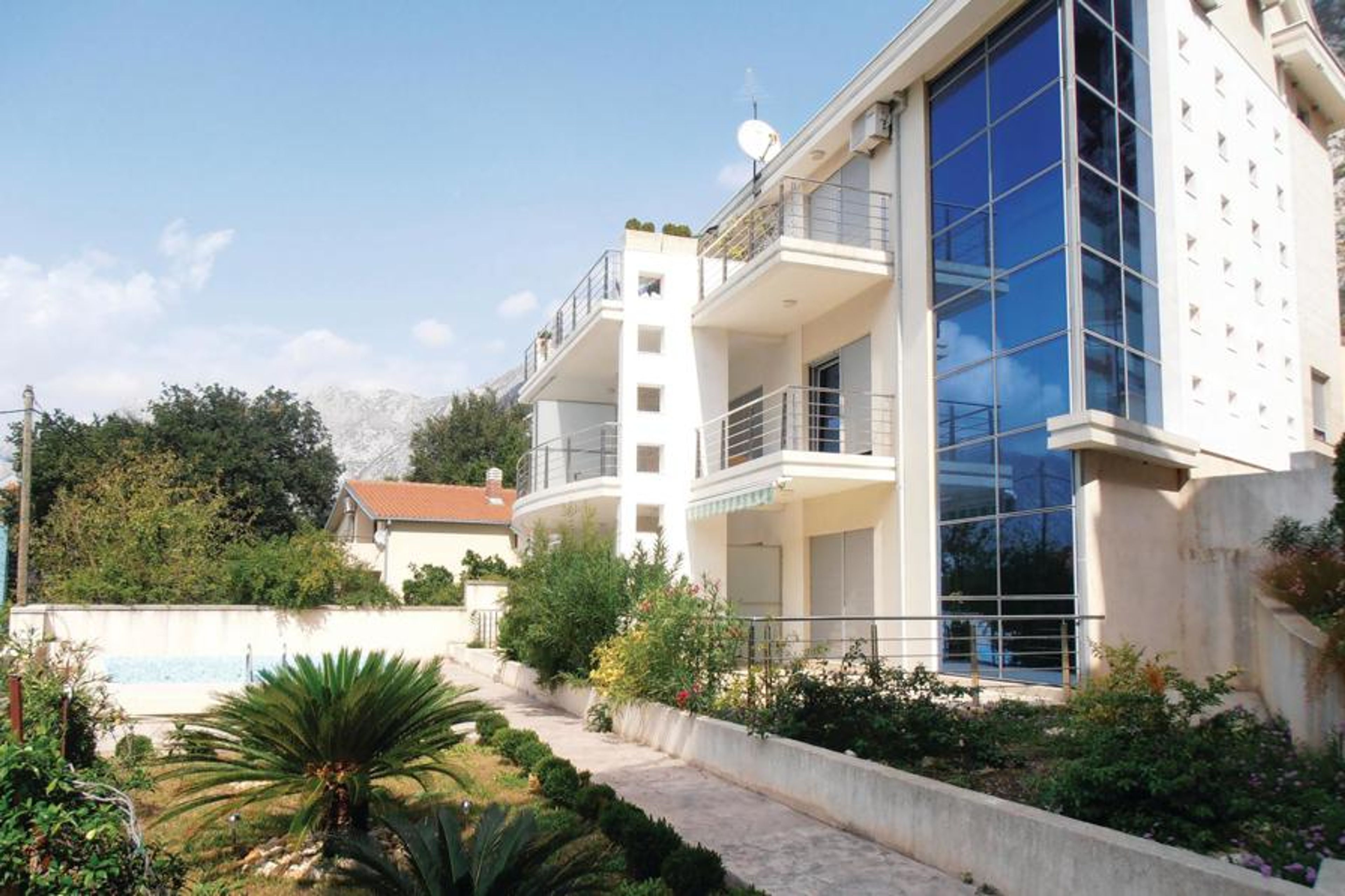 This small vacation apartment is located in a multi-apartment house and has one bedroom, one bathroom and a living room with kitchen. The apartment is located with its terrace right next to the shared swimming pool. The exceptionally beautiful landscape and the wonderful climate are certainly interesting attractions. The nearest concrete beaches are nearby and a road that takes you easily to interesting destinations runs nearby.