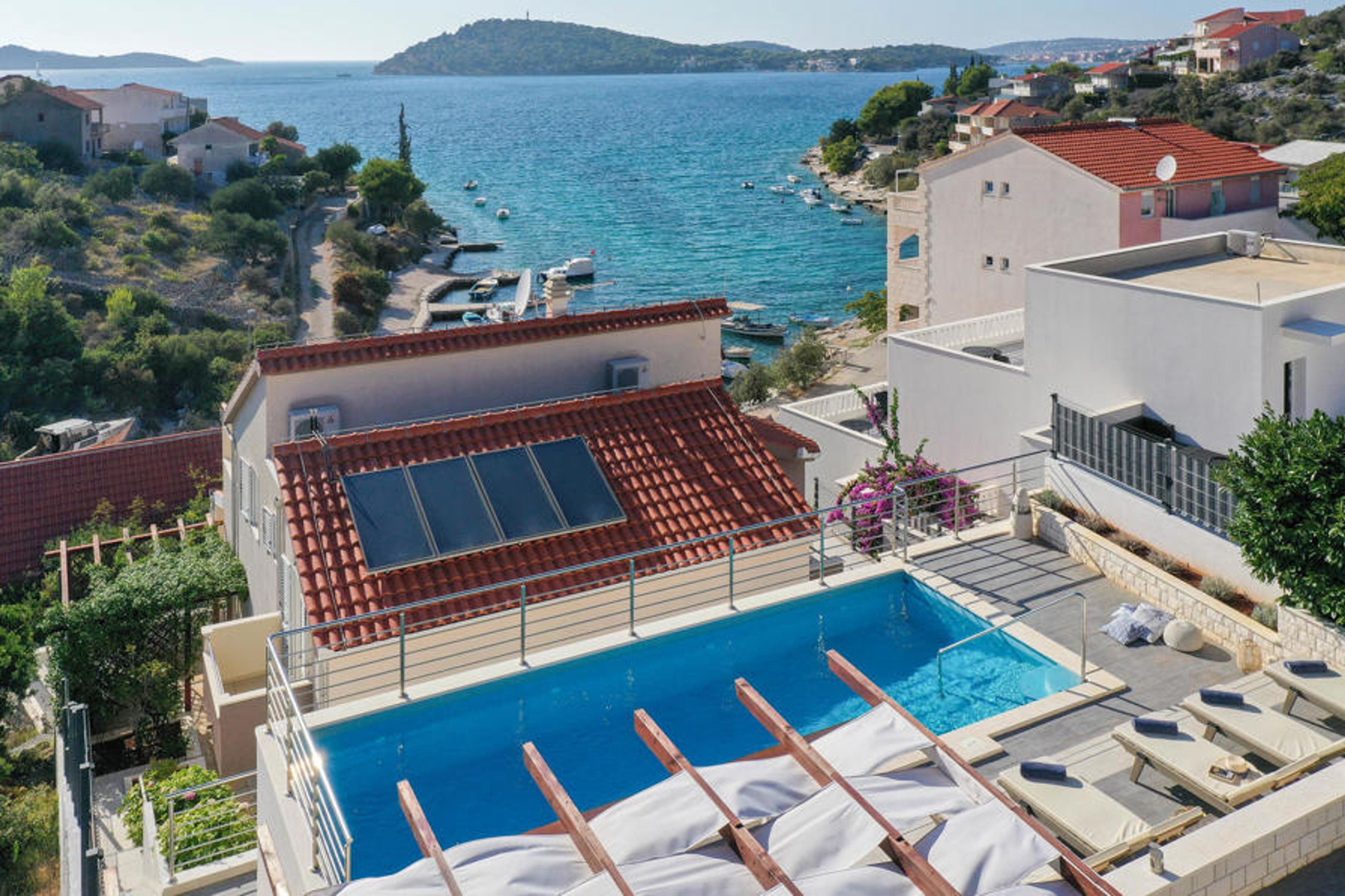 This beautiful holiday home with swimming pool is located right by the sea. Spend your holiday in this tastefully furnished accommodation. Relax in the designated relaxation room and enjoy the view from the covered terrace. To complete the comfort, each bedroom has a TV, air conditioning and Wi-Fi. The pool is at the rear of the house on this beautifully landscaped plot, where you are sure to experience relaxing moments. The beach is located below the house. The sunny bay of Rogoznica is the perfect place for water sports.