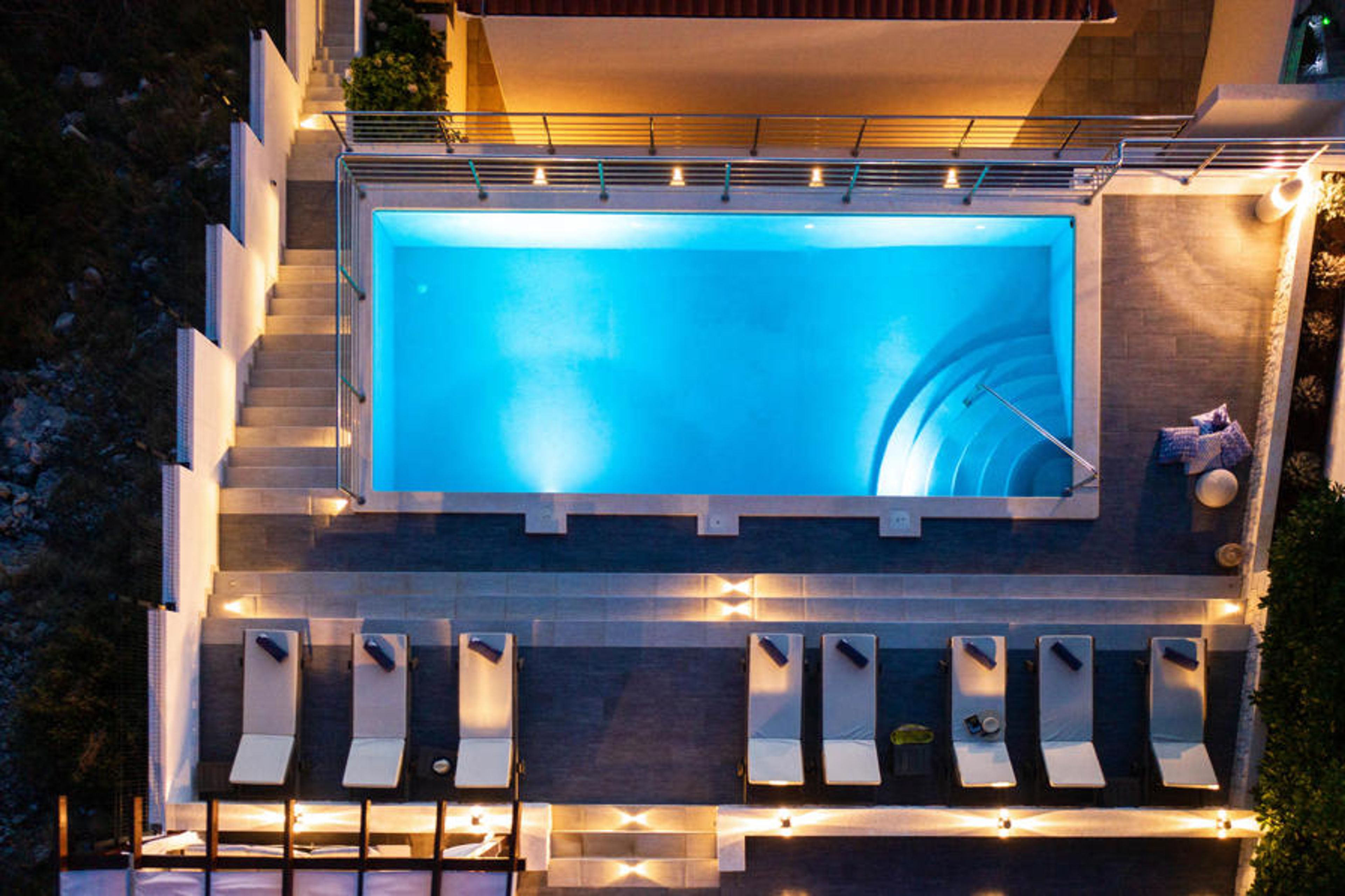 This beautiful holiday home with swimming-pool is located right beside the sea. It consists of two completely equipped apartments, connected by outdoor staircase.