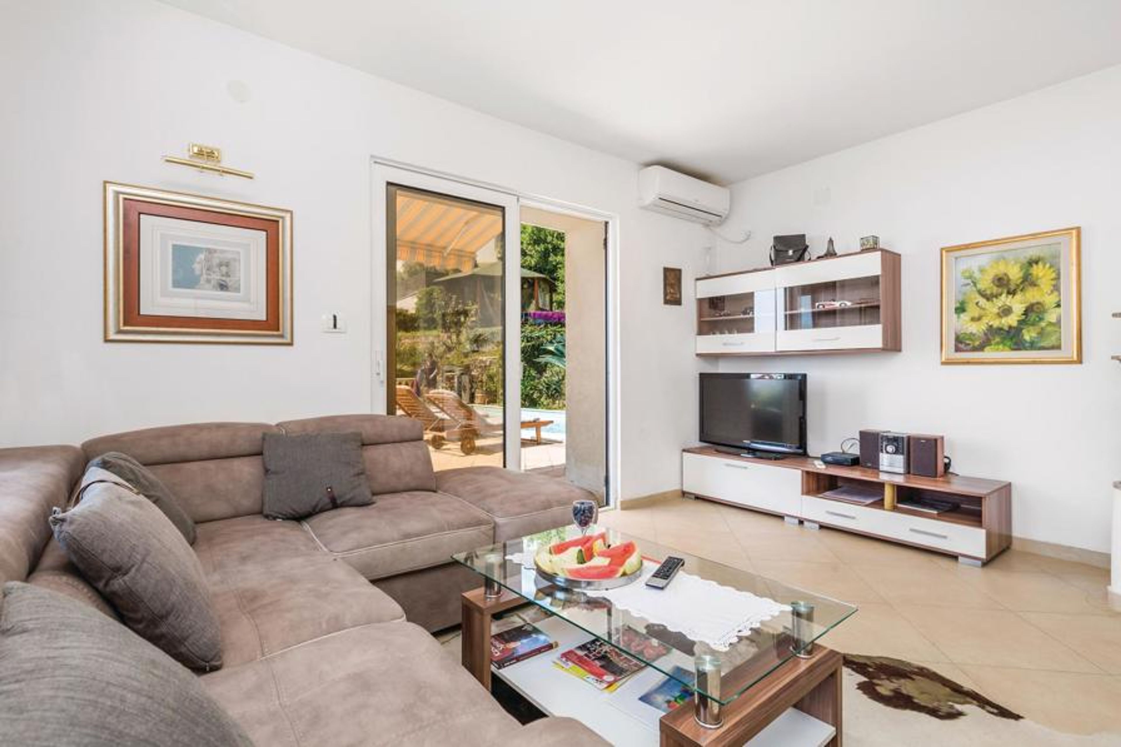 Experience a perfect vacation above the Kvarner Bay, near the Ucka Nature Park, where the small village of Bregi is located. The cottage is tastefully and comfortably furnished. The ground floor and the first floor are connected by an external staircase. The minimum ceiling height in one part of the house is 90 cm, but this does not affect the comfort at all, because the house is very spacious. Relax in the sauna, refresh yourself in the pool and enjoy the view of the blue of the sea and the green of the idyllic forests from the terrace. Spend social hours in the gazebo with a grill or in the rustic tavern with a fireplace, a fully equipped kitchen and a pool table. Experience the scent of lavender and the green play of colors of the olive groves. The property is beautifully landscaped and fenced, which allows your children to play carefree. By car you can quickly reach the seafront and bathing beaches, where you can refresh yourself in the crystal clear sea. Visit cultural events, concerts and excellent restaurants in Opatija. Take romantic walks in the fairytale forests of the Ucka National Park or other trips to the surrounding islands, the Risnjak and Plitvice Lakes National Parks, as well as the towns in Istria.