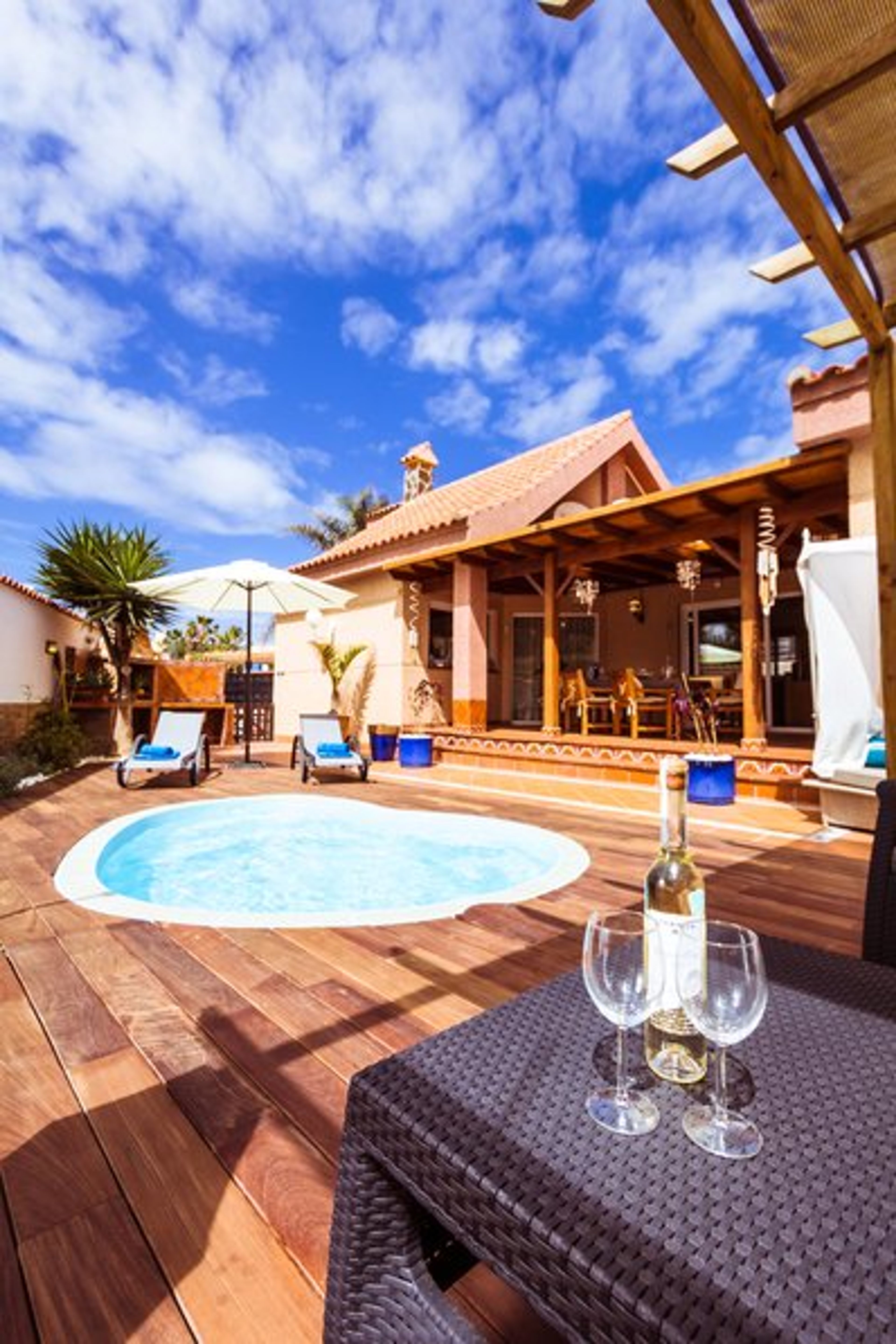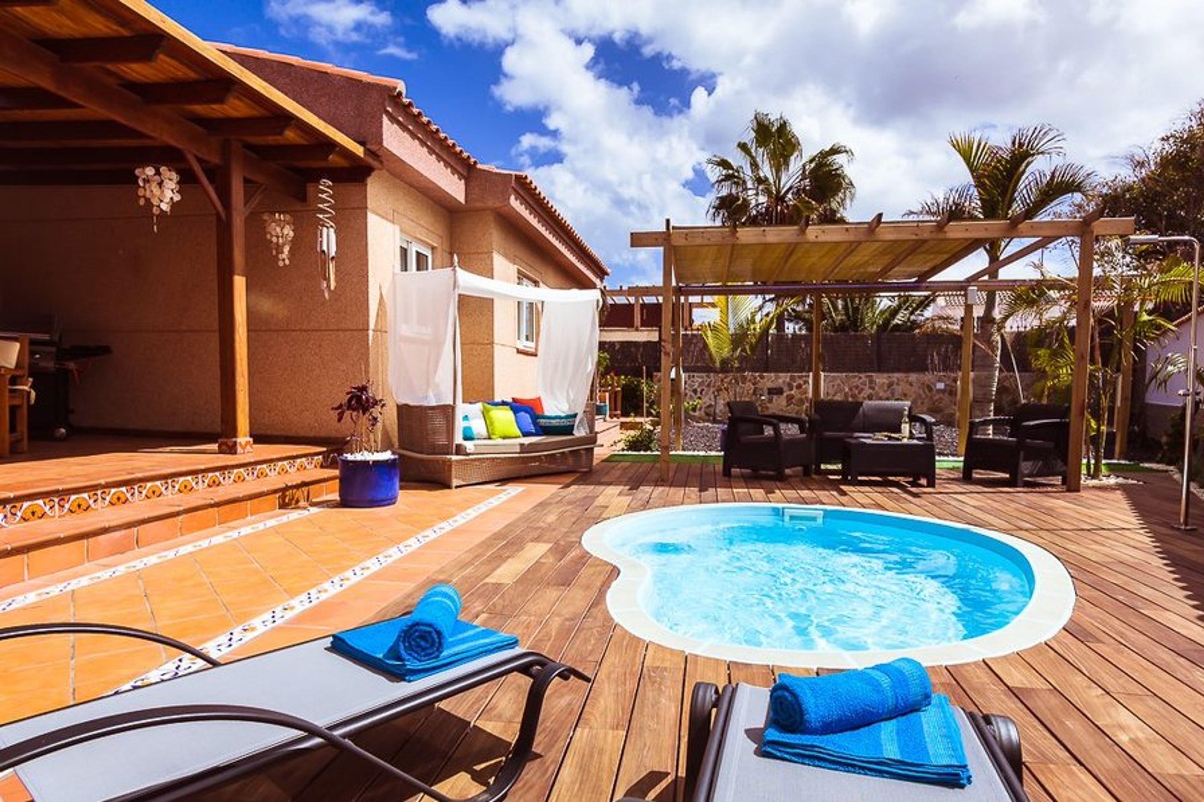 Excelent Spacious Villa, located in centrum of town Corralejo Beach Fuerteventura Canary islands and ideal families,close to shops, restaurants, beaches with private pool, gardens, barbecue,SPEDWiffi